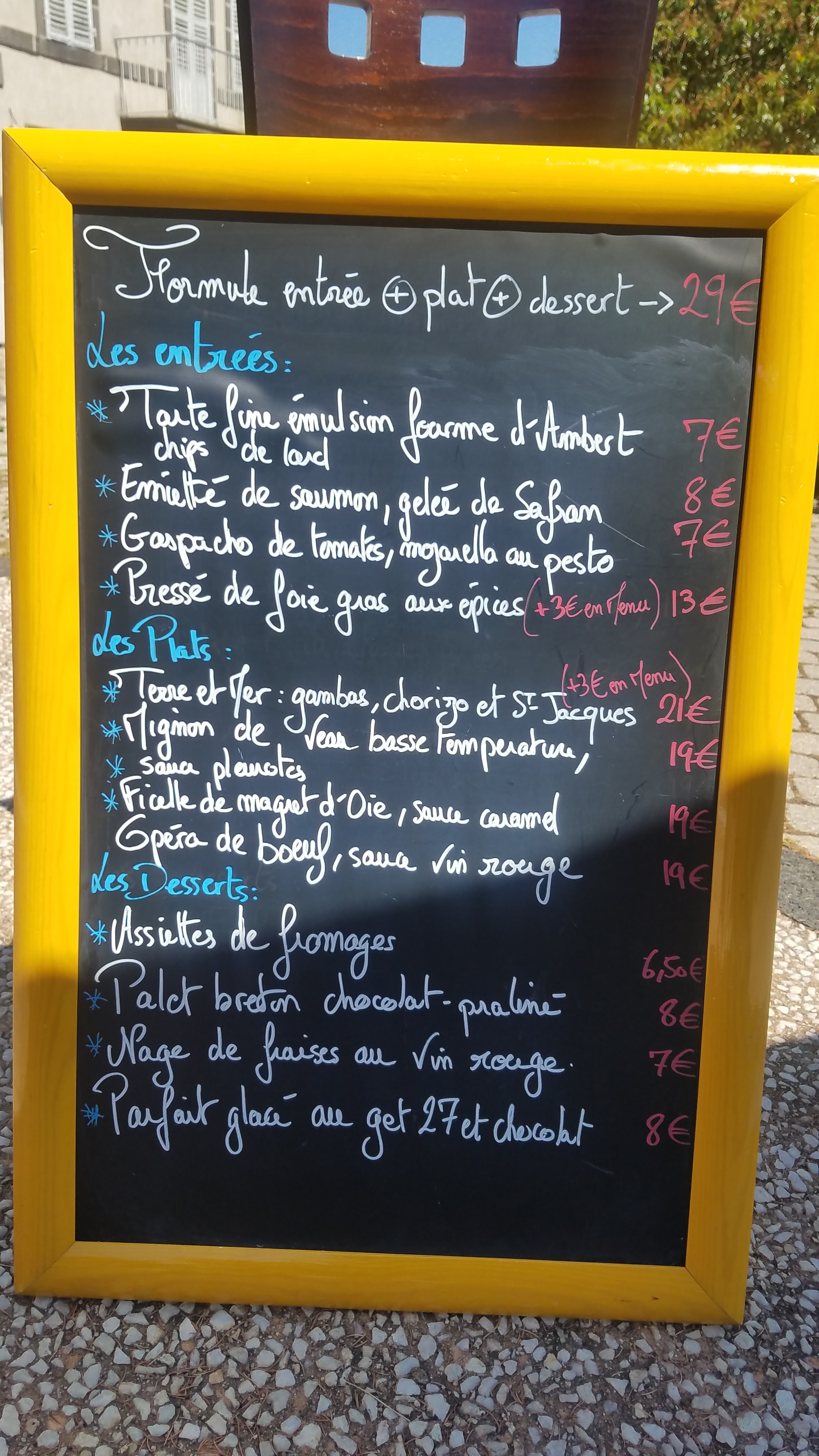 Bonjour menu à 29 euro sans les vins plat bien présenté pas pour gros mangeur des supplément à 3euros dans le menu déjà à 29 euro vin rose mont Ventoux a25 euro Je trouve la cuisine bonne mais les prix trop chère