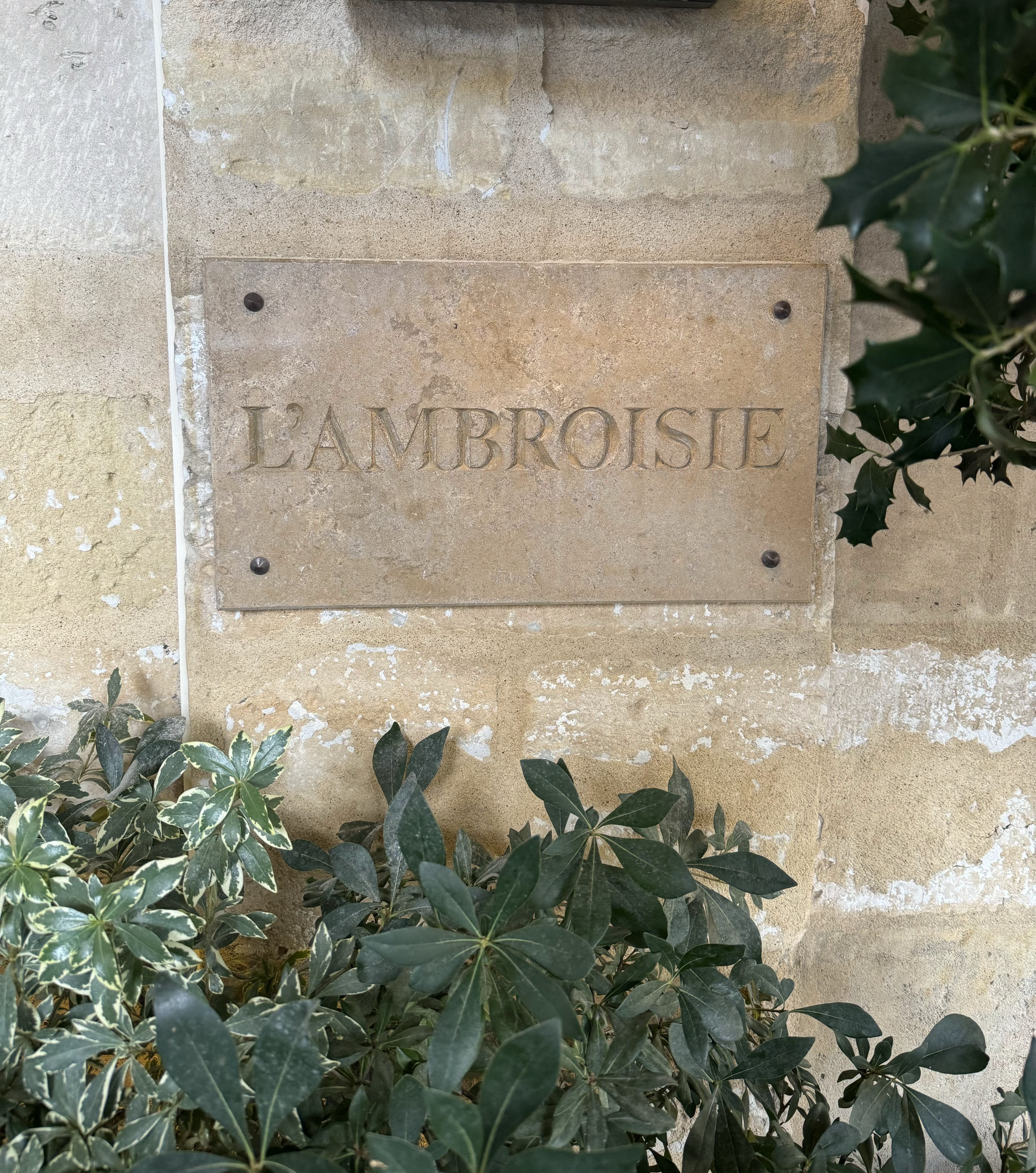 L’Ambroisie est un restaurant français traditionnel qui conserve trois étoiles Michelin depuis plus de trente ans. c'est l'un des trois étoiles les plus traditionnels au monde. Le nom « L'Ambroisie » vient de la mythologie grecque et signifie à la fois « nourriture des dieux ». Pas de menu dégustation, à la carte uniquement et le menu est uniquement en français. La philosophie culinaire est traditionnelle à la carte avec trois à quatre plats de nourriture luxueuse servis en portions généreuses. La nourriture est classique mais créative et délicieuse. La tarte au chocolat était folle. Il était au menu depuis 36 années consécutives.
