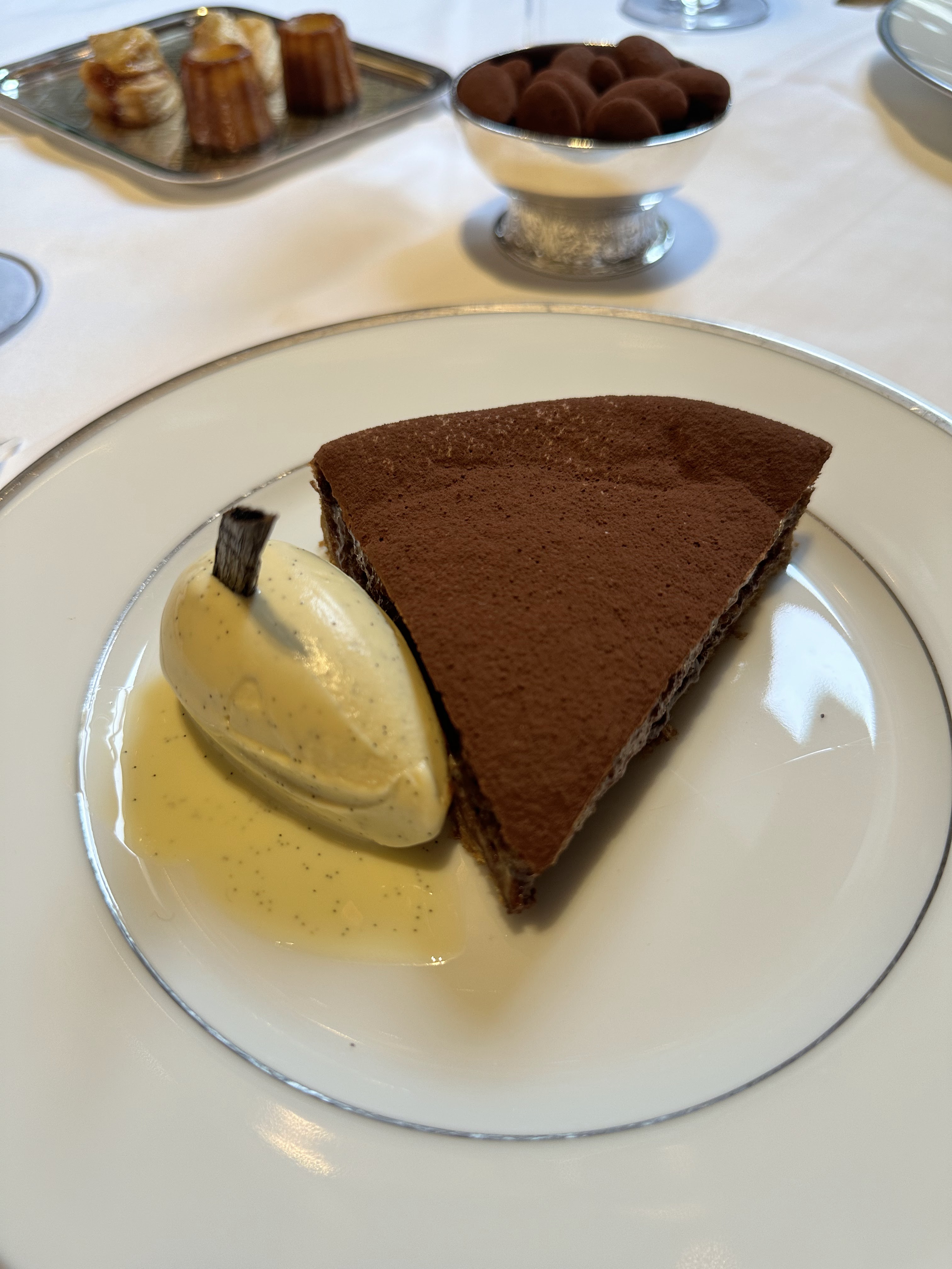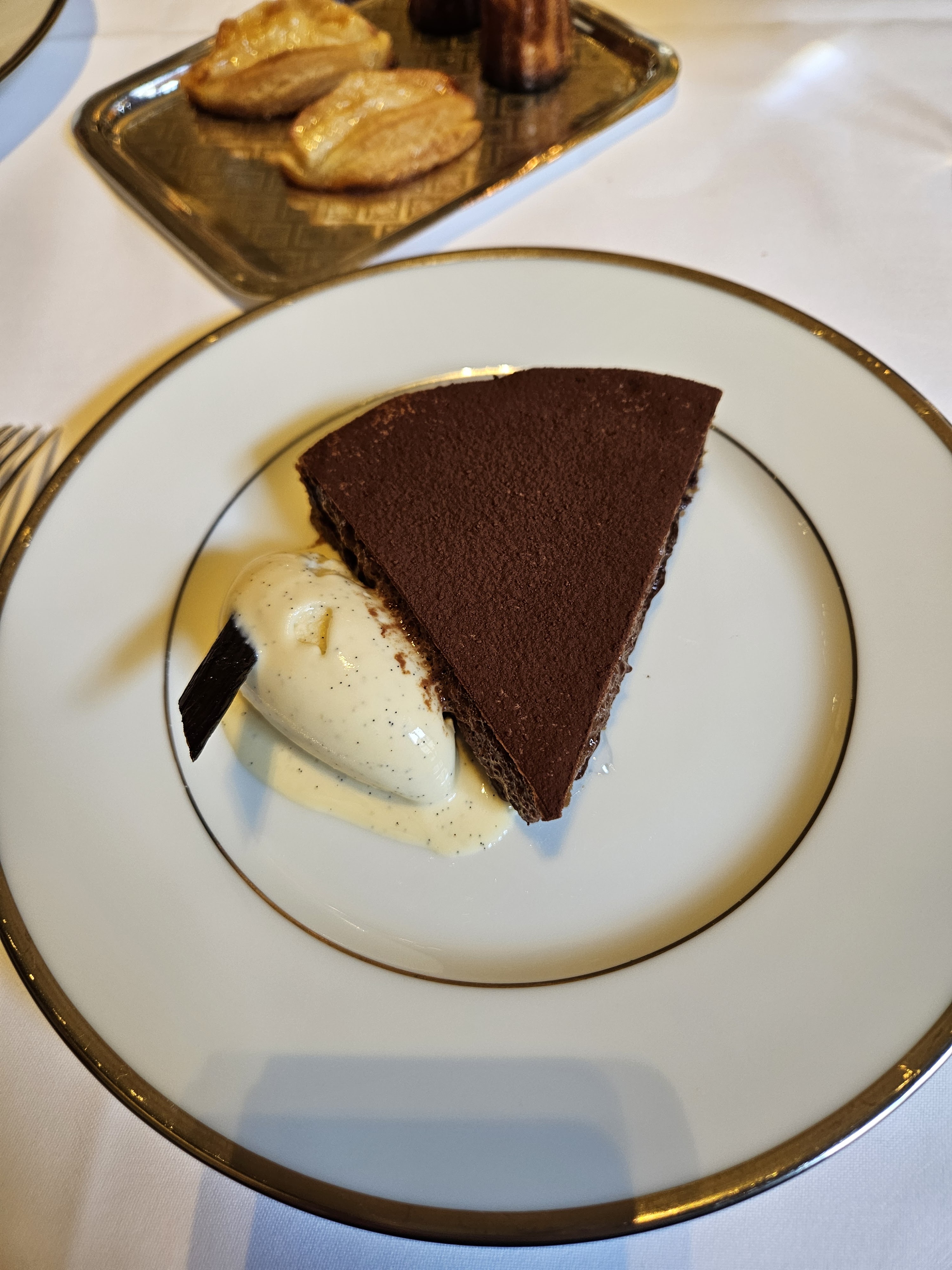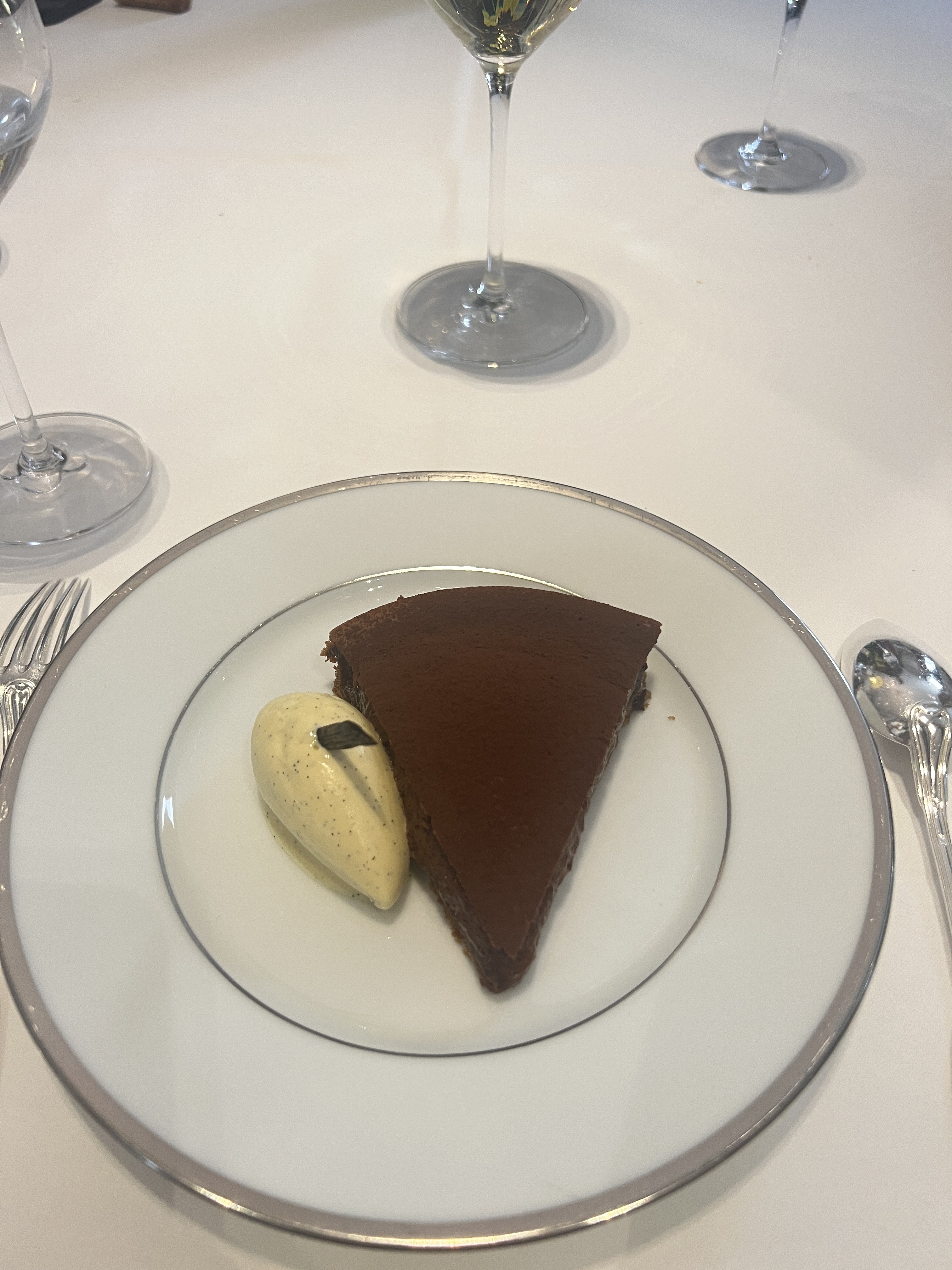 Un moment exceptionnel avec des produits de la plus haute qualité et sublimés. Le classique des mets est parfaitement assumé pour notre plus grand bonheur. La tarte chocolat avec la glace vanille est un sommet de simplicité, pour autant, les saveurs et les textures sont au sommet. Mention spéciale au service, notamment au chef de rang qui nous a accompagnés dans nos choix et coucounés tout le long du repas, sans ostentation et avec humour. C'est le service à la fois le plus classe et le plus proche que nous avons rencontré dans nos ballades gastronomiques des 3 astériques du Michelin. Dîner du 6 septembre 2018.