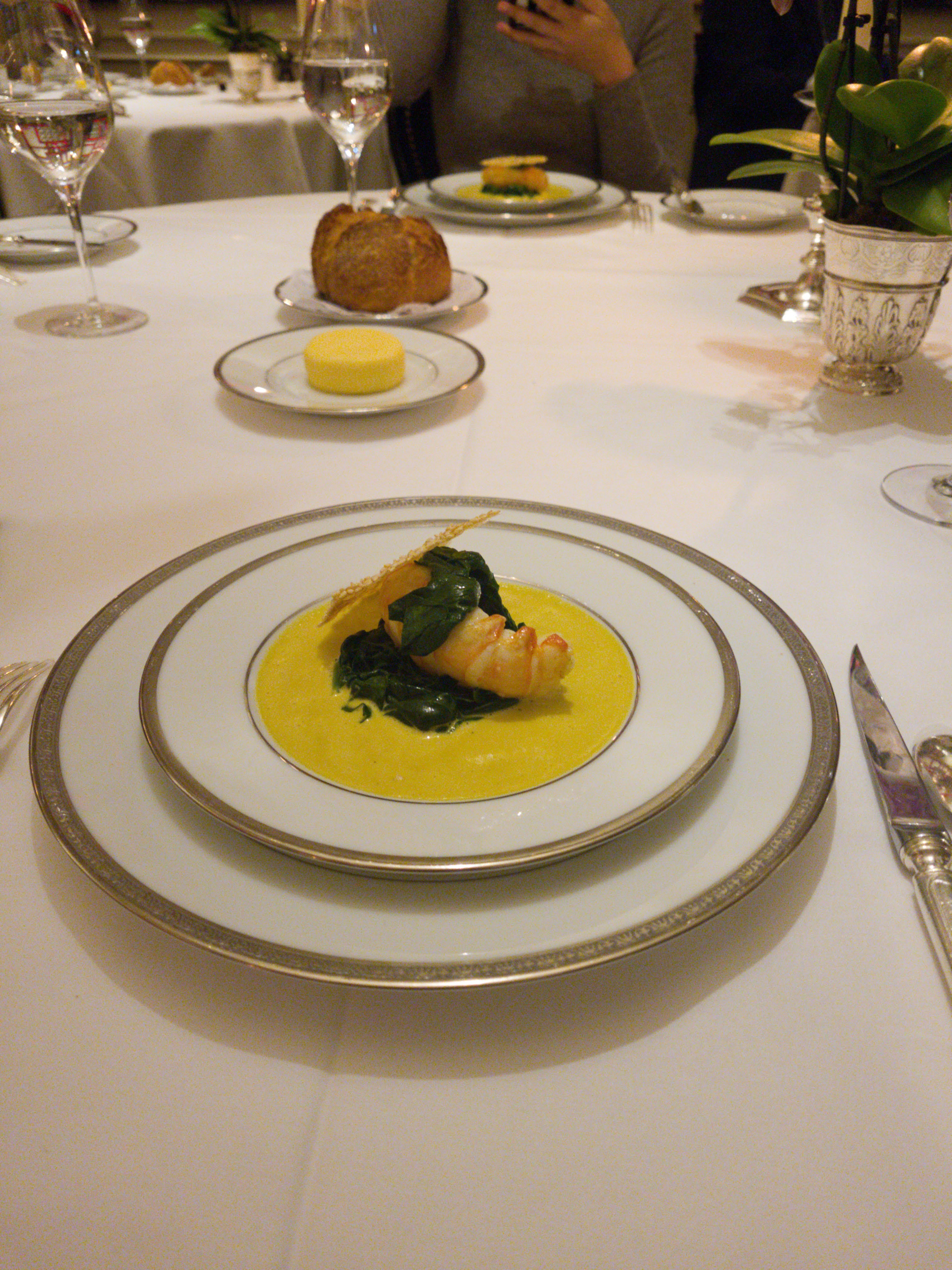 Que cherche t'on dans un grand restaurant ? A être très bien reçu et à très bien manger. Ce fût le cas hier à l'Ambroisie : tous les serveurs parisiens devraient aller faire un stage de courtoisie à l'Ambroisie ( service exceptionnel), quant aux plats ils n'ont pas l'inventivité d'un Passart à l'Arpège ou le génie d'un Pierre Gagnaire mais franchement, dans un genre plus classique, c'est absolument délicieux. Nous y reviendrons pour la carte d'été.