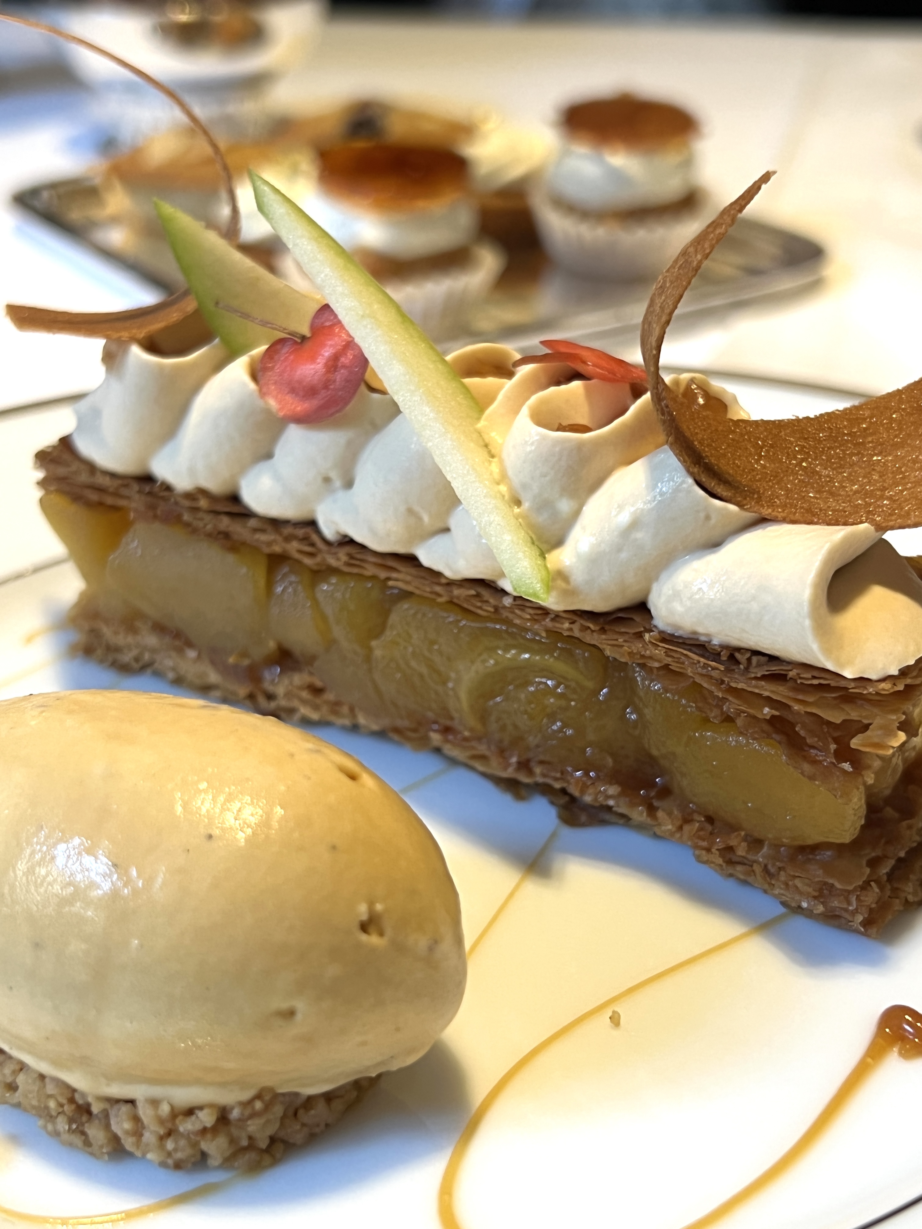 Le service était de premier ordre. Là quand vous en aviez besoin, amical et pas autoritaire. La nourriture était phénoménale, comme on peut s'y attendre d'un restaurant 3 étoiles Michelin. Les desserts étaient merveilleux - pleins de saveurs et pas trop sucrés. J'ai quitté le restaurant plein et heureux. Il convient de noter en particulier que les pommes de terre accompagnant le veau pour deux étaient extraordinaires. C’étaient les pommes de terre délicieuses les plus crémeuses que j’ai jamais mangées de ma vie. Ce n'est pas tous les jours qu'un plat d'accompagnement se démarque et cela témoigne simplement de leur savoir-faire que les accompagnements puissent tenir tête à des plats aussi puissants. Un grand fan - je reviendrai la prochaine fois que je serai à Paris.