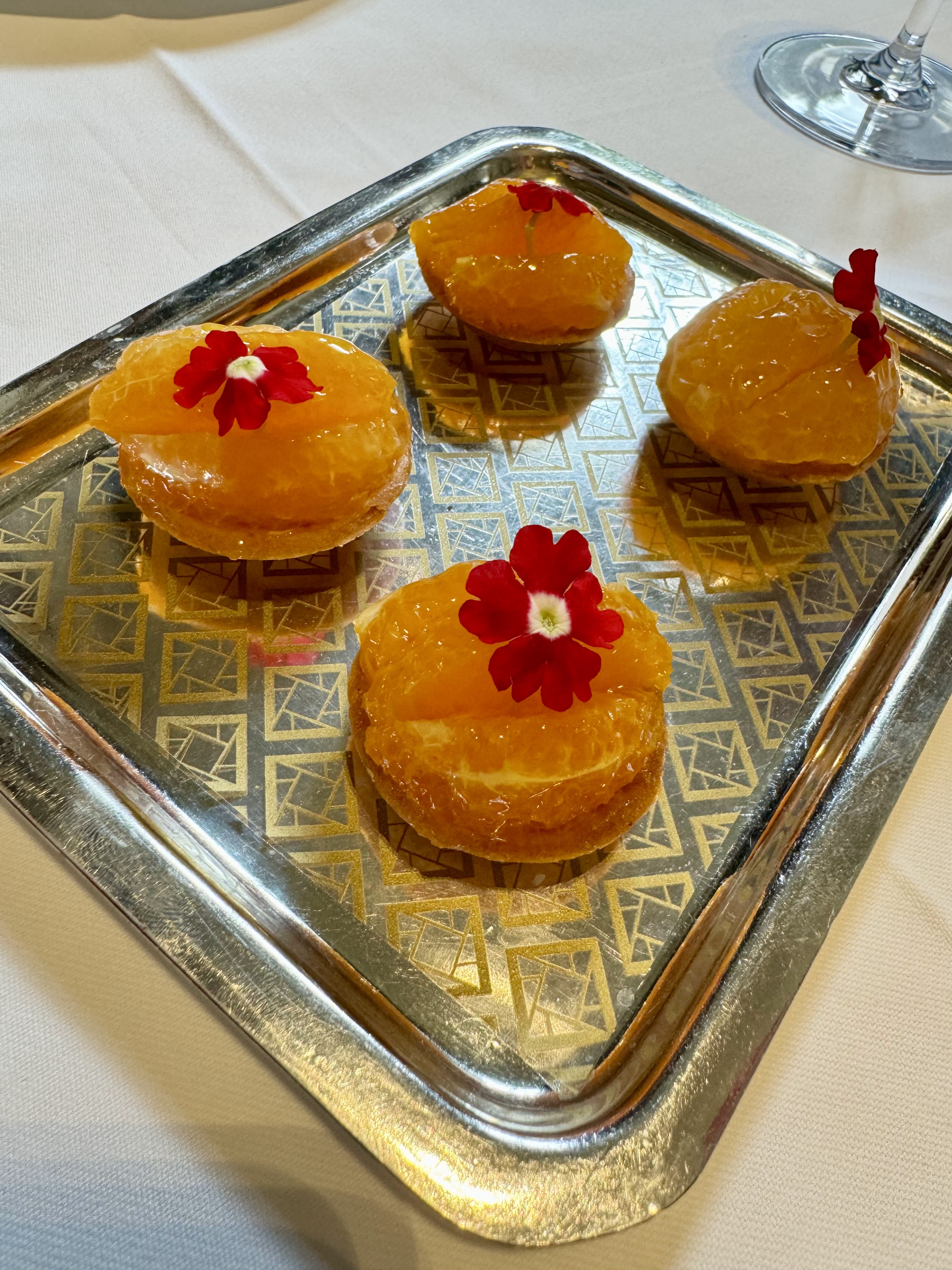 Nous avons été très déçus par le rapport qualité/prix absolument pas au niveau d’un trois étoiles Michelin. Les plats sont tout juste bons, sans finesse, sans aucune surprise ni créativité. Les saveurs sont monotones voire absentes, la sauce curry accompagnant les langoustines est beaucoup trop forte et trop épicée. Le saint Pierre et la volaille, figurants sur la carte étaient indisponibles ! Nous étions 4 personnes et avec 4 coupes de champagne rosé et une bouteille de vin à 180 euros, sans fromage, la note finale s’est élevée à presque 1900 euros ! Très très loin derrière les 3 étoilés que nous avons antérieurement fréquentés.