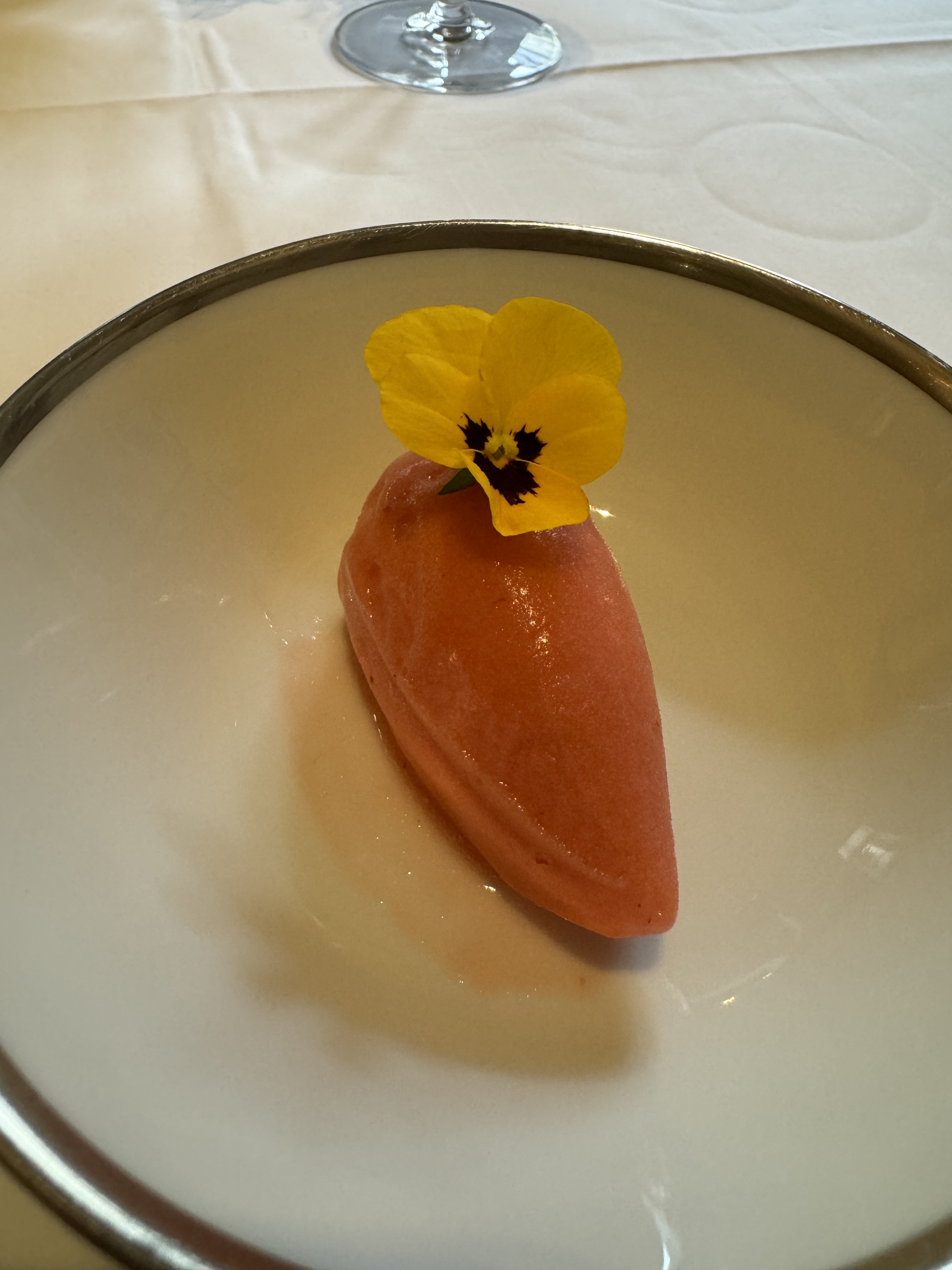 Une maison iconique! J'ai demandé à ce qu'il choisisse les accords vin-plat en toute liberté, et ils étaient fantastiques. Il faut vraiment venir ici pour une fabuleuse expérience culinaire française. Le duo Moret et Pacaud ainsi que leurs équipe vous séduira parfaitement