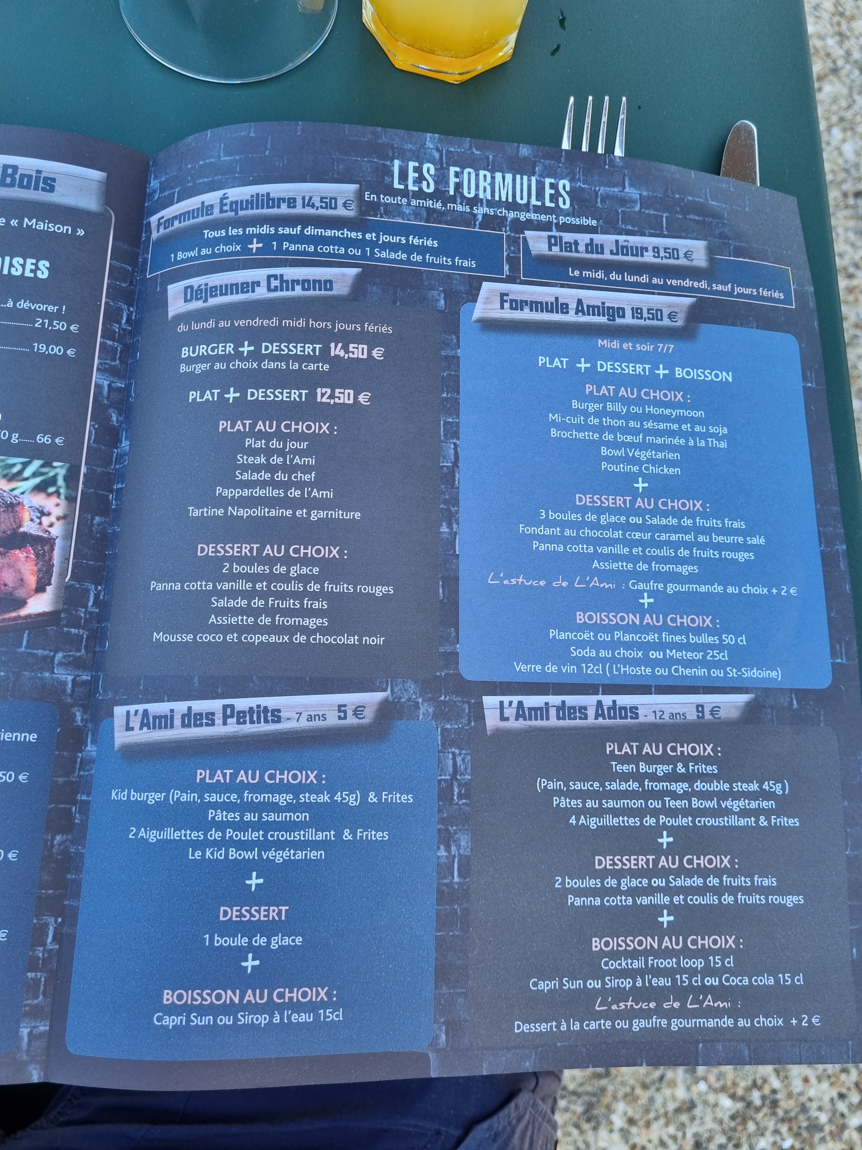 Excellent moment à deux ! Ma compagne et moi avons découvert L'Ami via internet & la carte nous a clairement donné envie d'y aller. L'accueil est chaleureux et vous entrerez dans un cadre à la déco moderne, chic & familiale. En ce qui concerne le service : il est top ! Pas de pression & la bonne humeur est de mise. Pour le repas en lui même nous avons là aussi passé un très bon moment. La cuisson au feu de bois est maîtrisée à 100% & est un véritable point fort de ce lieu. Donc si vous voulez passer un petit moment en famille, d'évasion seul ou un dîner à deux, n'hésitez pas à faire connaître ce lieu & à vous même vous y rendre. À bientôt. Florian & Cloë