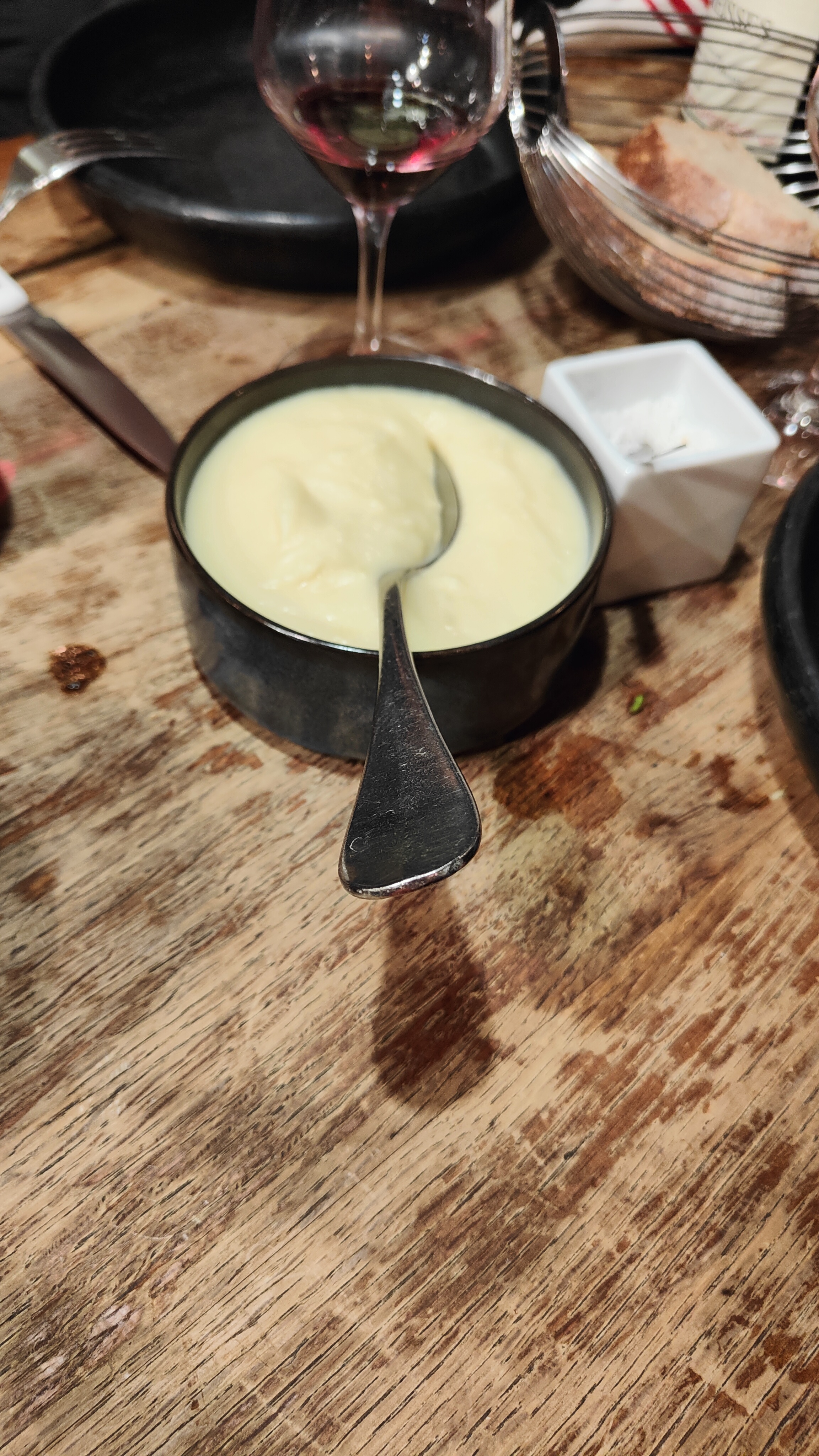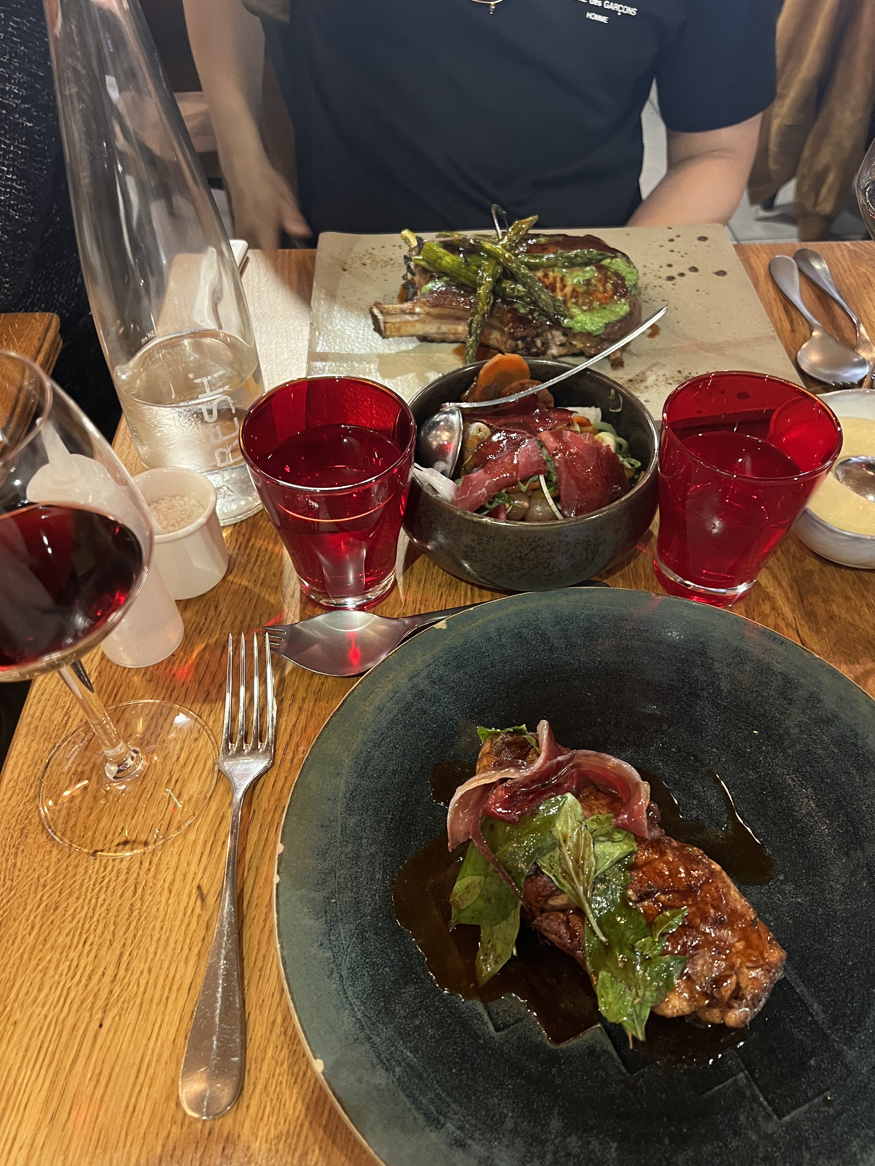 Nourriture et service excellents, mais très cher. J'ai commandé l'épaule de bœuf pour 2, comme recommandé par notre serveur (~95€) - et c'était parfait ; grande saveur, tendresse et exécution globale. Mais pour le prix, je m'attendais à quelque chose de plus que ce qui était essentiellement un très bon rôti. J'économiserais ton argent et j'irais ailleurs !