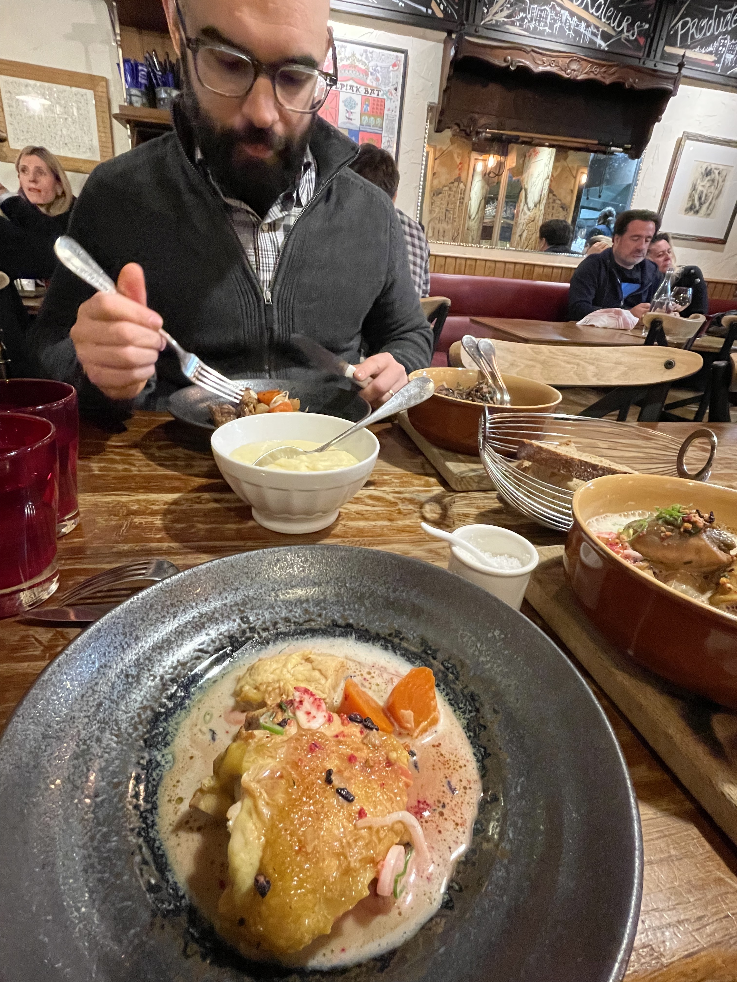 Meilleur repas de notre semaine à Paris. Pas trop touristique, la nourriture était phénoménale, le service était excellent. Le rôti de porc, le ragoût de bœuf et le dessert au riz au lait étaient tout simplement fantastiques.