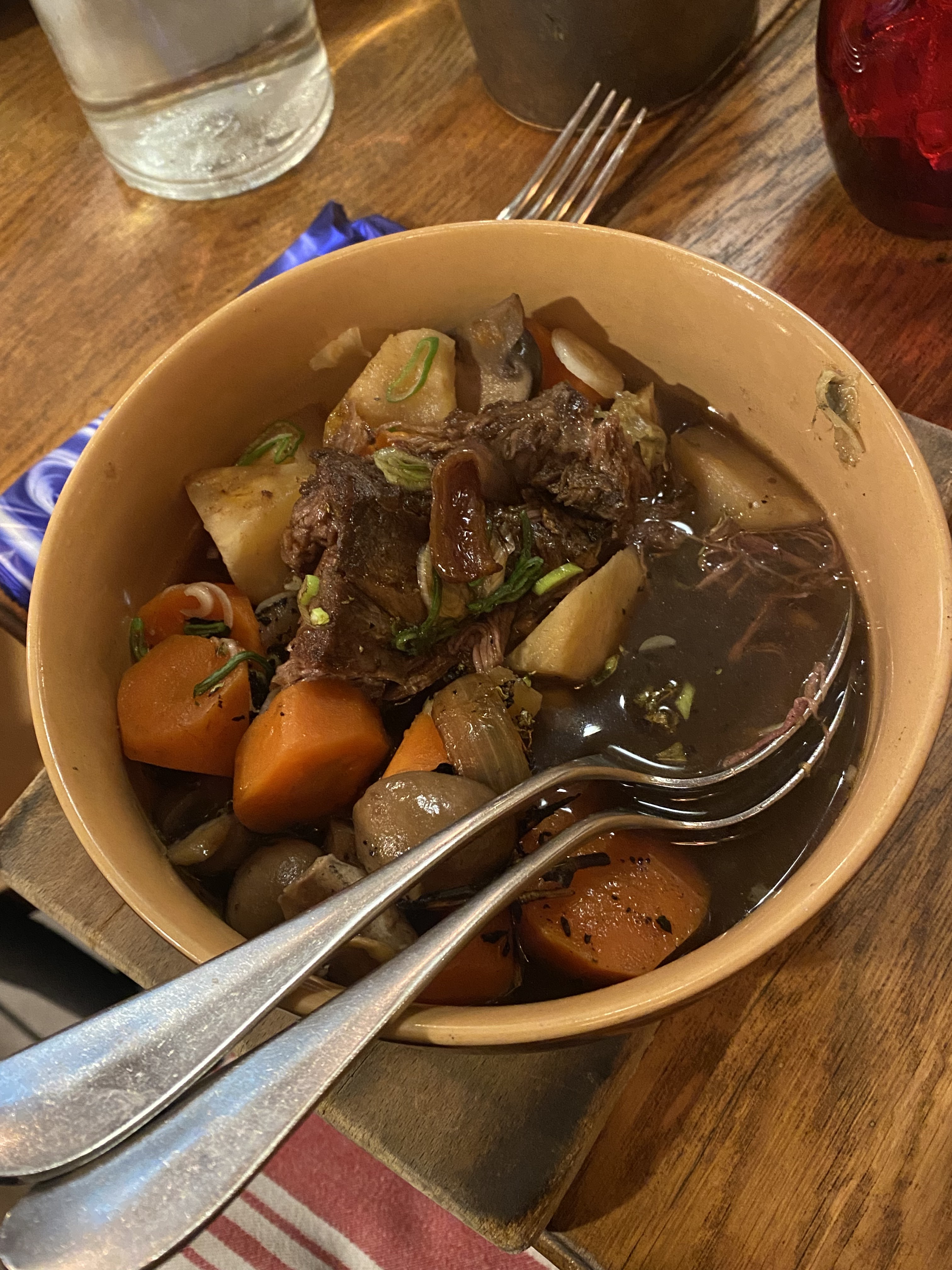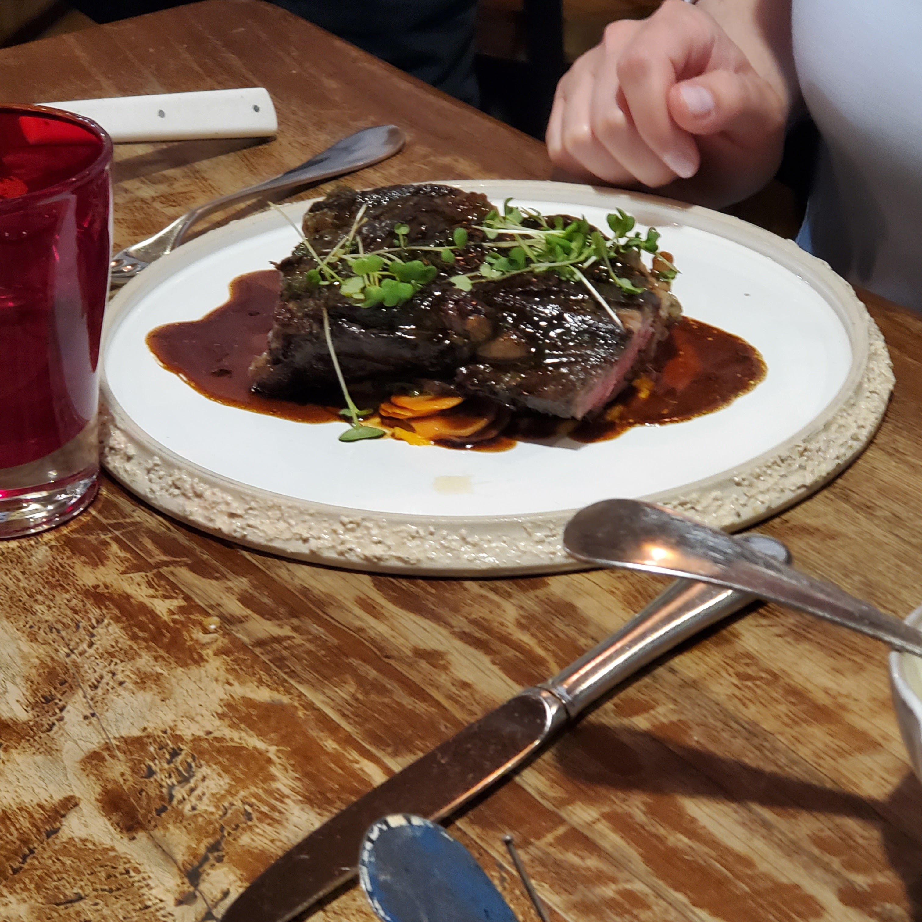 Au départ, c'était un peu insatisfaisant. Peut-être que les chefs se mettaient dans le rythme pour le déjeuner, mais après avoir partagé mes sentiments avec le serveur, les choses se sont vraiment améliorées. Service fantastique! Les joues de bœuf cuites pendant 8 heures étaient hyper tendres et délicieuses ! La cerise sur le gâteau ? Le riz au lait ! C'était décadent.