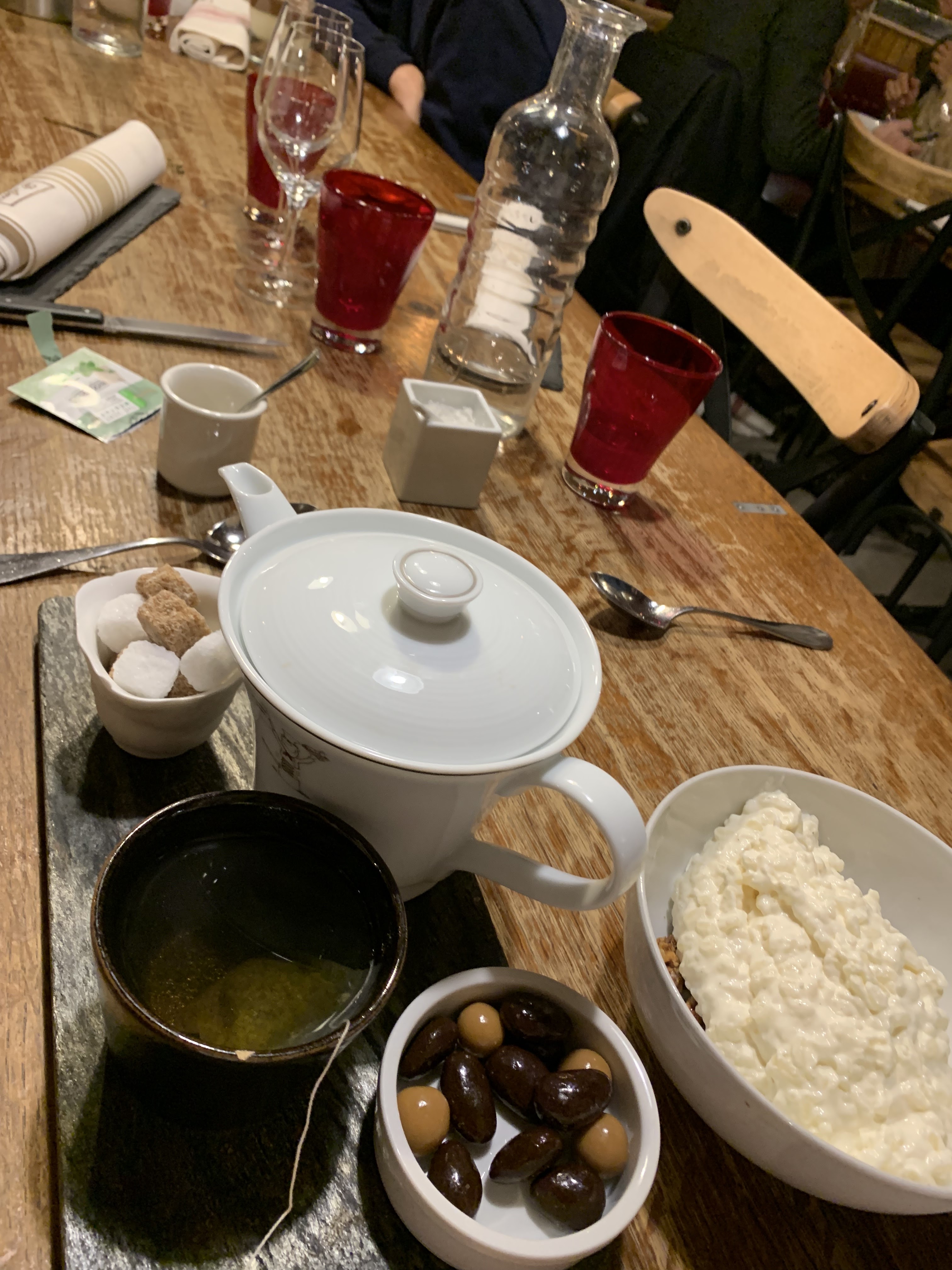Déjeuner exceptionnel composé de pâté de porc, de carpaccio de bœuf, de joues de porc et de ragoût de bœuf. Terminé avec le meilleur riz au lait de tous les temps. J'ai hâte de revenir.