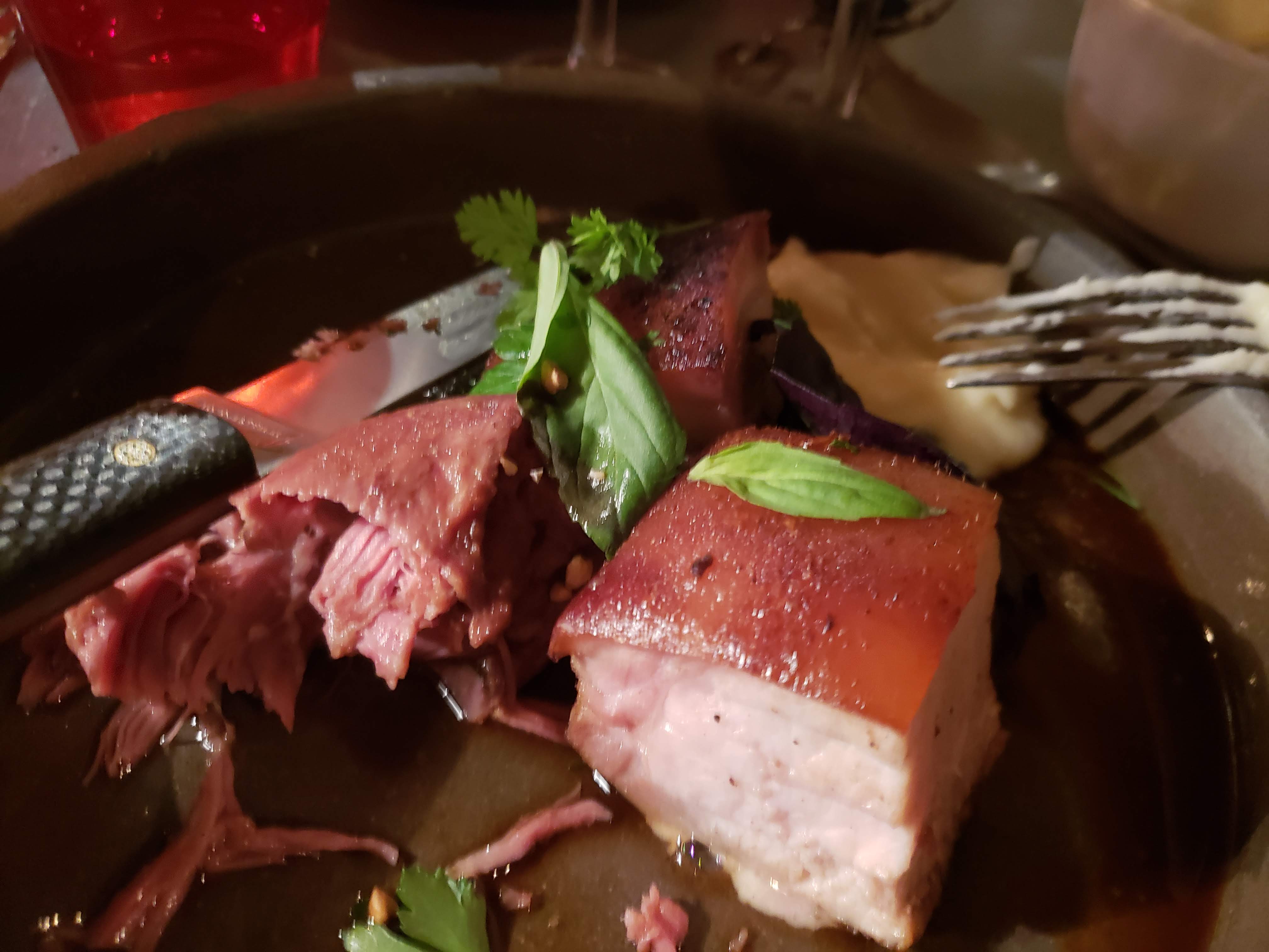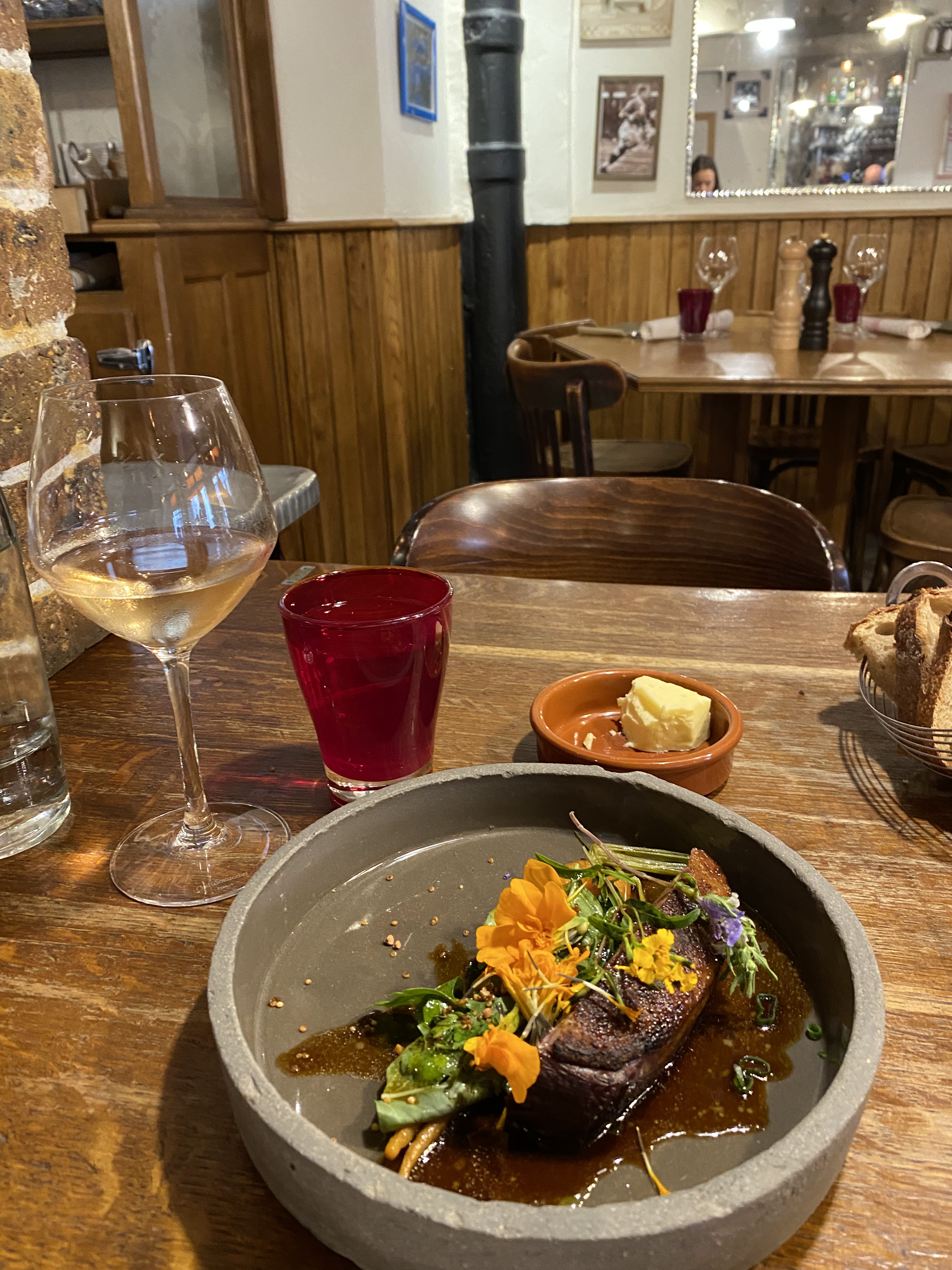 Nous y sommes allés mardi soir et avons décidé d'essayer le menu en 6 étapes. J'ai vraiment apprécié la soupe et les cailles. Les pâtes-risotto étaient cependant planes et les pinces à rasoir étaient également sans saveur et un peu moelleuses. Ma portion de joues de veau était trop salée. Bien qu'ils soient célèbres pour le pudding relevé, je ne peux pas dire que c'est mon type de dessert, mais mon petit ami l'a vraiment apprécié. J'ai aimé que l'atmosphère soit vraiment décontractée, mais j'ai trouvé cela désagréable lorsque le serveur a placé ma fourchette usagée de l'assiette sur la table. Il aurait dû m'en apporter un nouveau. Dans l'ensemble, je dirais que c'était une expérience agréable mais chère.