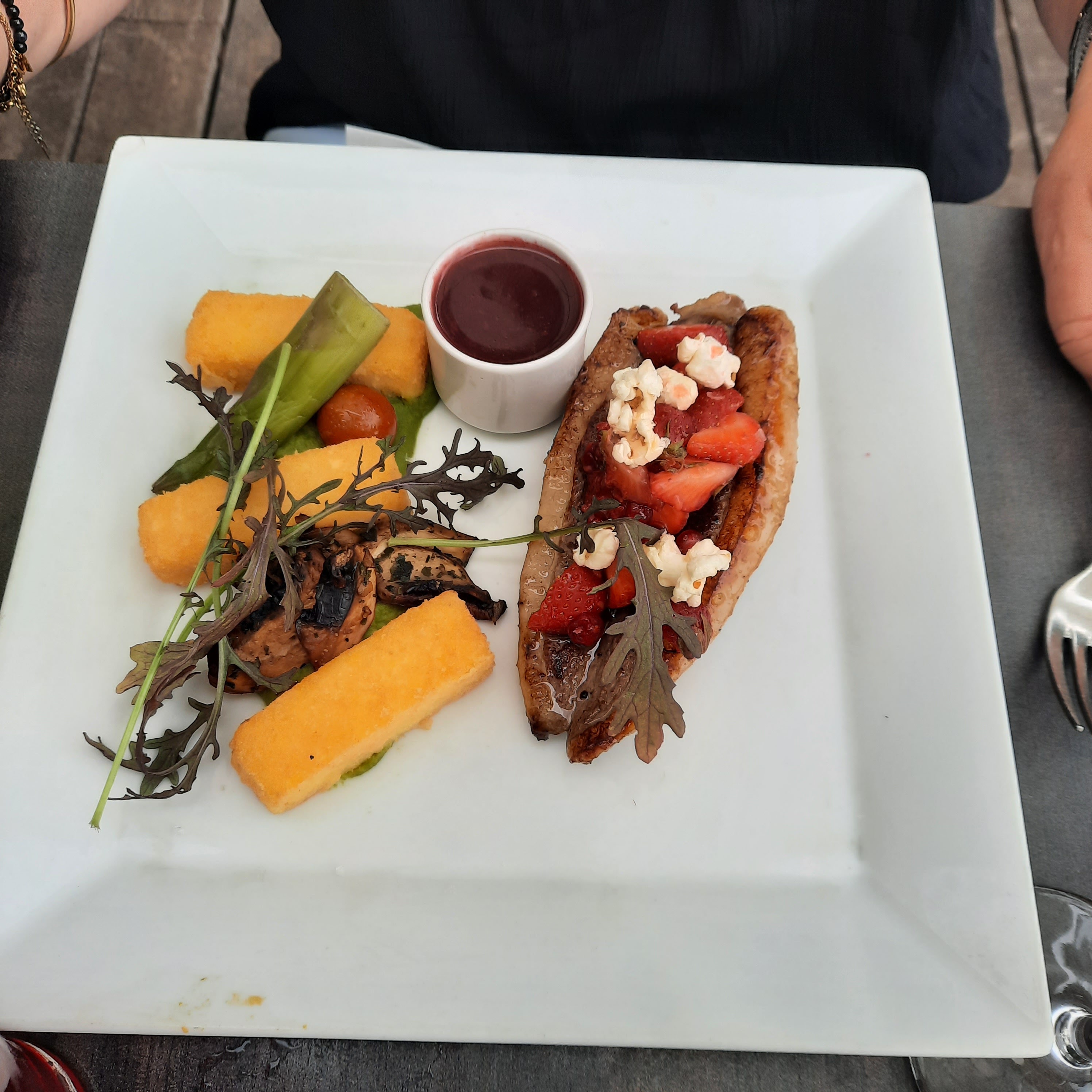 Ma compagne et moi même avons dîné dans ce charmant restaurant. Nous avons testé leur menu à 29€90 ; belle assiette de foie gras, un bon risotto aux Saint Jacques et un café gourmand. Merci pour Vos Excellents Mojitos 😘😘😘 L'ensemble du personnel est prévenant un grand merci à notre Serveuse.😘😘😘 Établissement à recommander @ Bientôt.