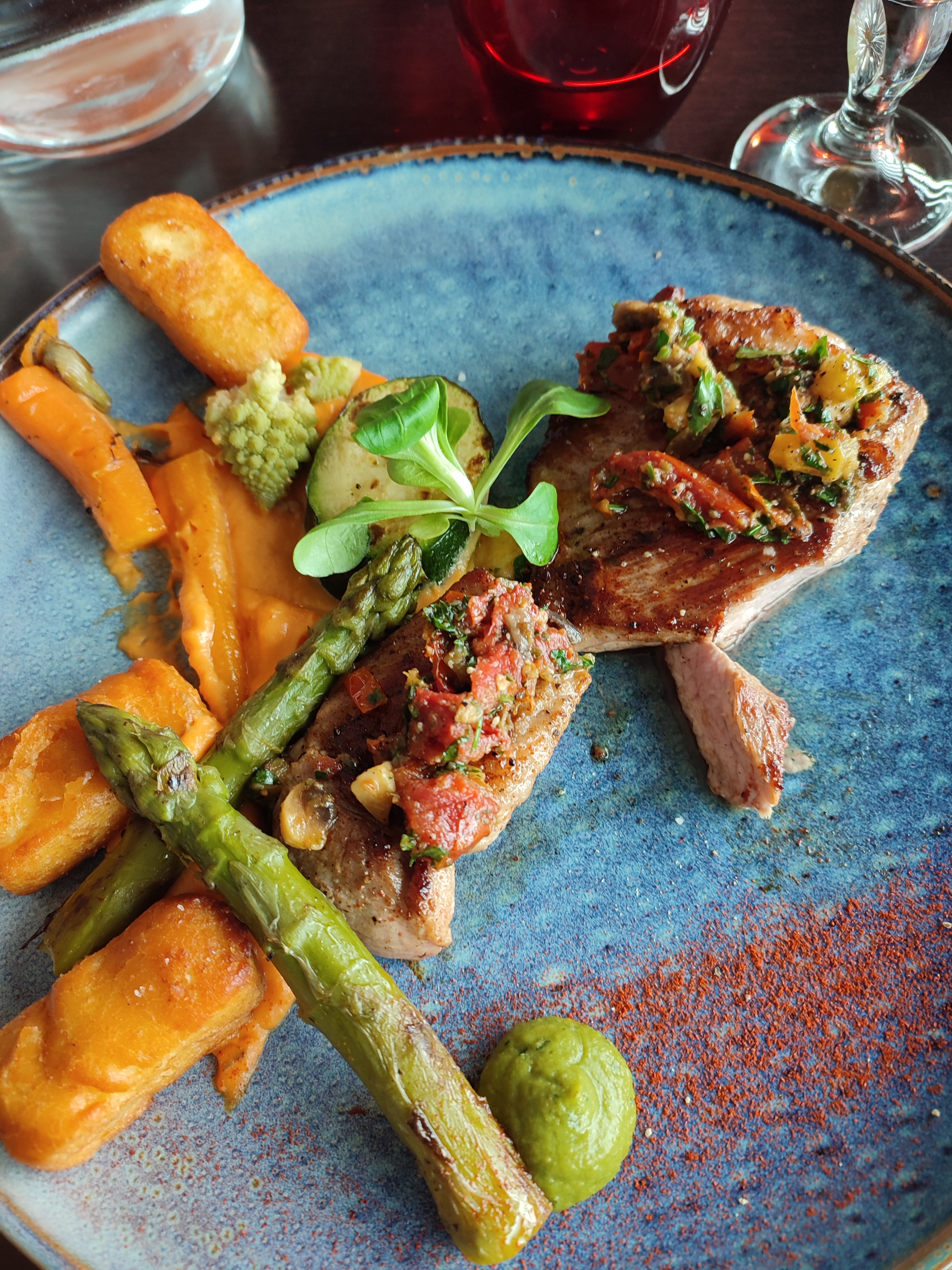 Très bonne adresse , ce restaurant propose une cuisine fine et originale , un repas du midi pas excessif du tout , complet et goûteux. L Amirada renouvelle sa carte fréquemment , les personnel , très agréable assure un service de qualité . En soirée les menus sont accessibles . Les quantités et la qualité sont au rendez vous . Seul petit bémol en hiver et si beaucoup de convives sont présents , le niveau sonore , qui s’élève rapidement.