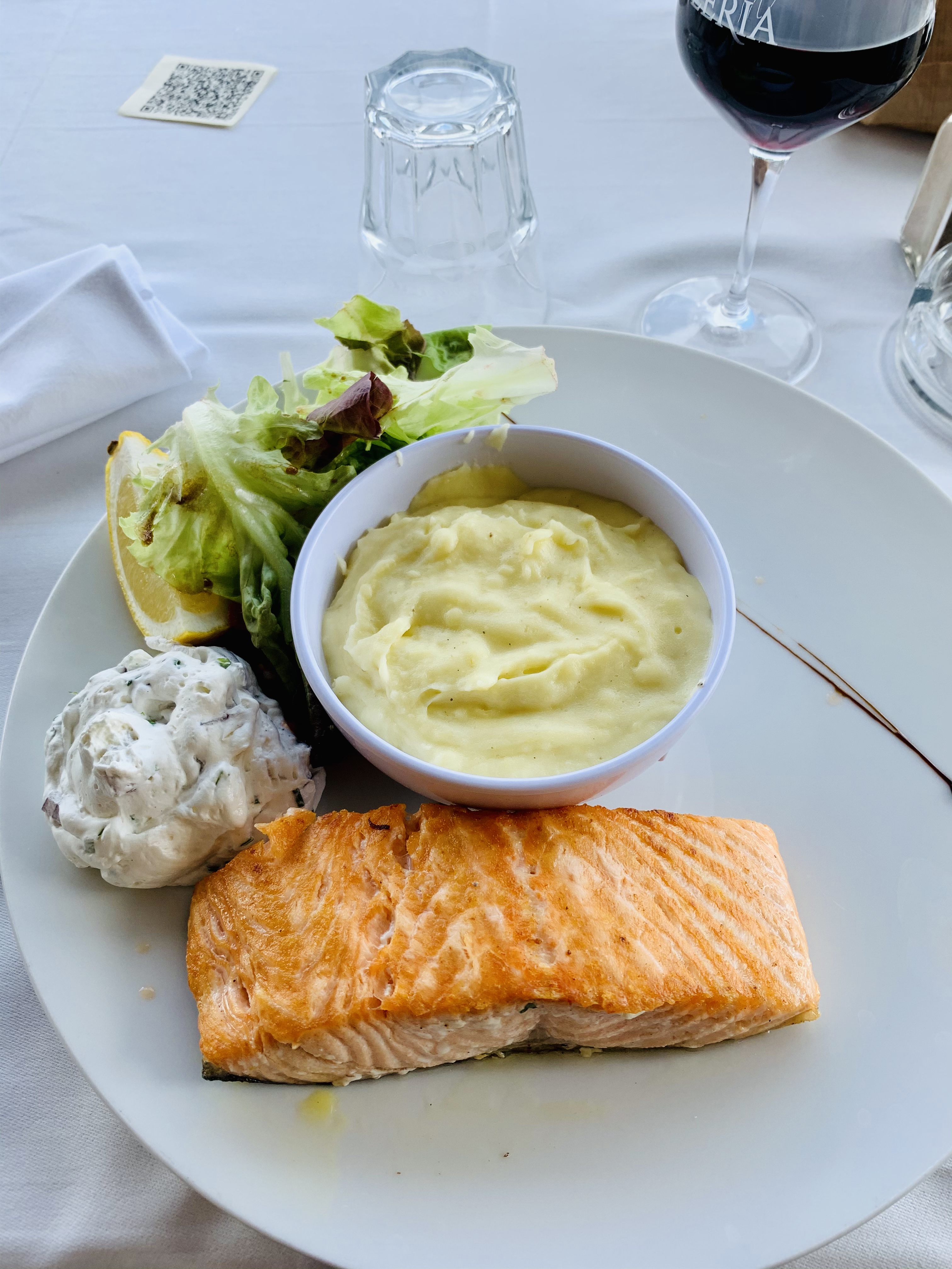 Parfait : les plats sont simples et réconfortants, bien exécutés et les portions sont généreuses. Le service est au niveau et la vue sur le port est incroyable. Mention spéciale pour le dessert et la crème chantilly qui m’ont paru faits maison.