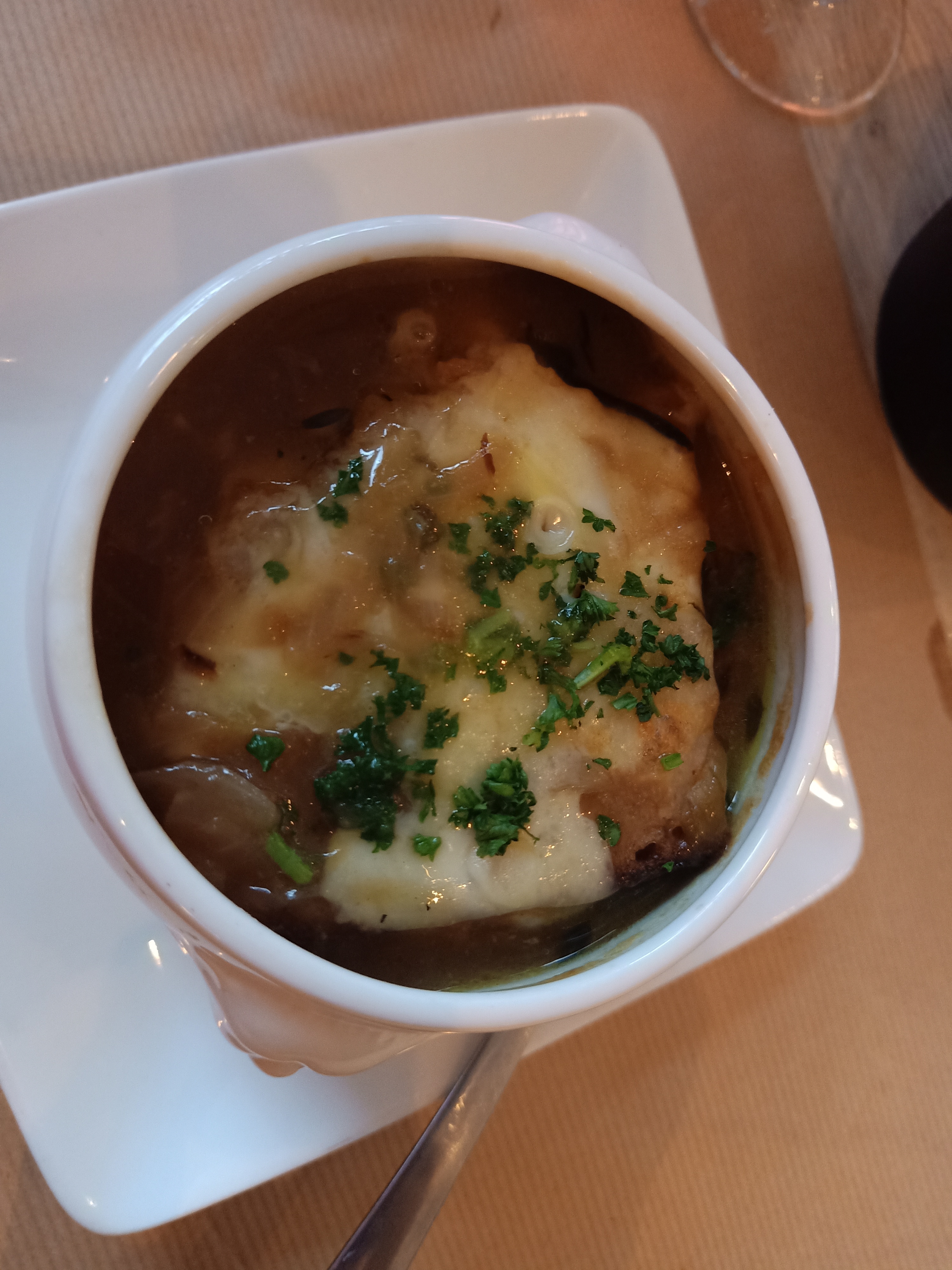 Chef et serveur très accueillants et gentils. Je suis venue accompagner ma mère qui voulait manger ici et étant vegetalienne et n'ayant vraiment pas très faim je ne comptais rien prendre. Ils ont su s'adapter et me proposer un plat sans POA (soupe à l'oignon, ce qui me convenait parfaitement étant donné ma petite faim !). Le poisson cuit à l'étouffée de ma mère était délicieux selon ses dire ! 😊