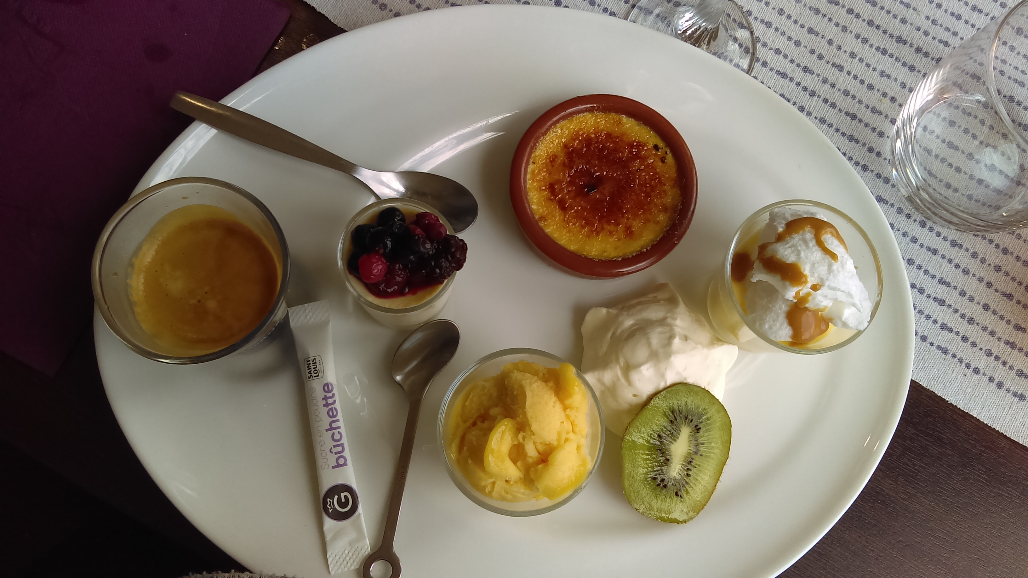Un restaurant super qui mérite le détour. Assiettes copieuses. Cuisine maison. La serveuse ( la patronne je crois ) est tellement gentille et souriante. Un café gourmand sur mesure parce que je ne mange pas de chocolat. Merci encore. Nous reviendrons.