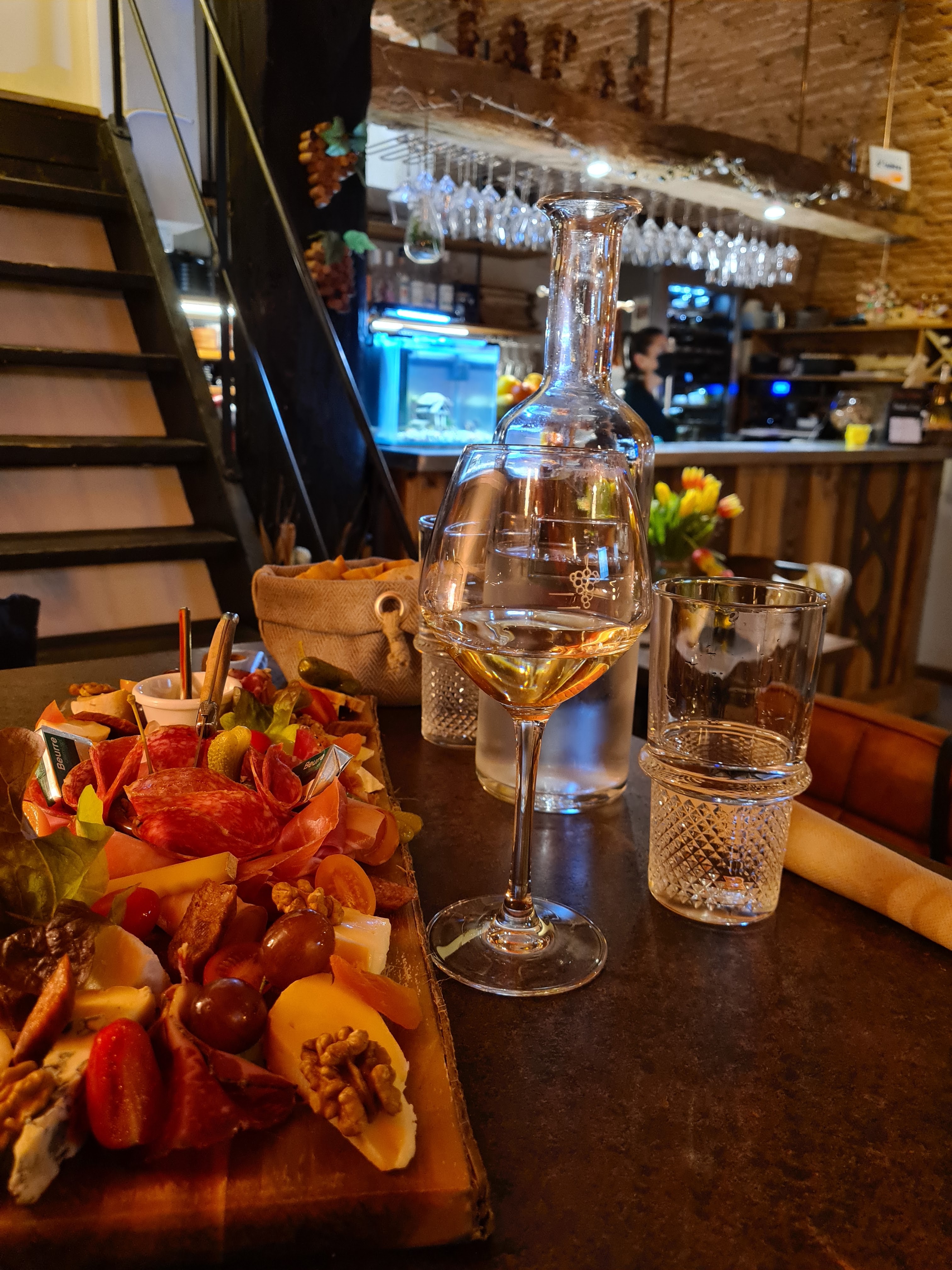 Nous avons été dans ce lieu entre amies. J'ai demandé conseil auprès de la serveuse (qui doit également être la propriétaire), la réponse à été je ne suis pas sommelière. Le cadre est très sympa, c'est vrai, mais la serveuse n'est vraiment pas accueillante. Je n'ai pas trouvé non plus que la planchette mixte était exceptionnel (peu de variétés et peu de quantités), mais le houmous était excellent. Je suis d'ailleurs même étonnée des avis sur ce lieu. Personnellement je n'y retournerai pas, je trouve qu'il s'agit plus d'un bar à vin pour touristes que pour les Selestadiens et alentours.
