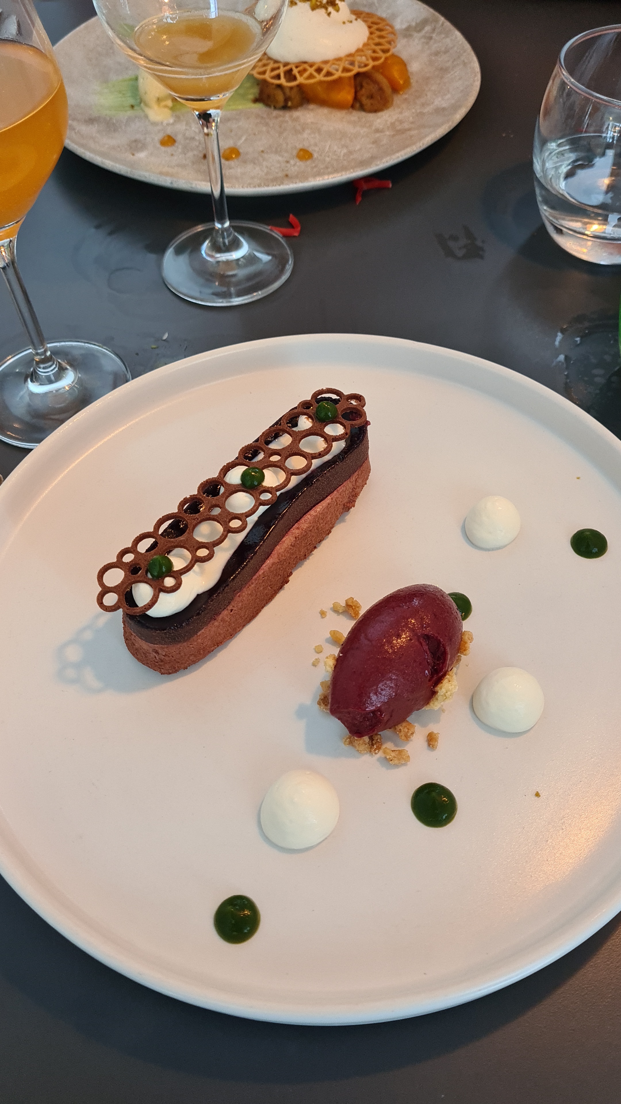 J'ai vraiment passé un bon moment. Cuisine raffinée, gastronomique (le prix est en conséquence, mais cela le vaut largement) avec des produits de saison et locaux. Les quantités sont raisonnables : on ressort rassasié. Malgré cela, l'ambiance est décontractée, pas guindée du tout, les serveurs sont souriants, mettent à l'aise, sympathiques mais très professionnels. La serveuse adorable qui s'est occupée de ma table a pris le temps de me parler en détail des plats, des produits et elle connaissait sur le bout des doigts les préparations, cela devient rare pour le noter. Bref, j'étais venue me faire plaisir, je ne regrette pas et je reviendrai.