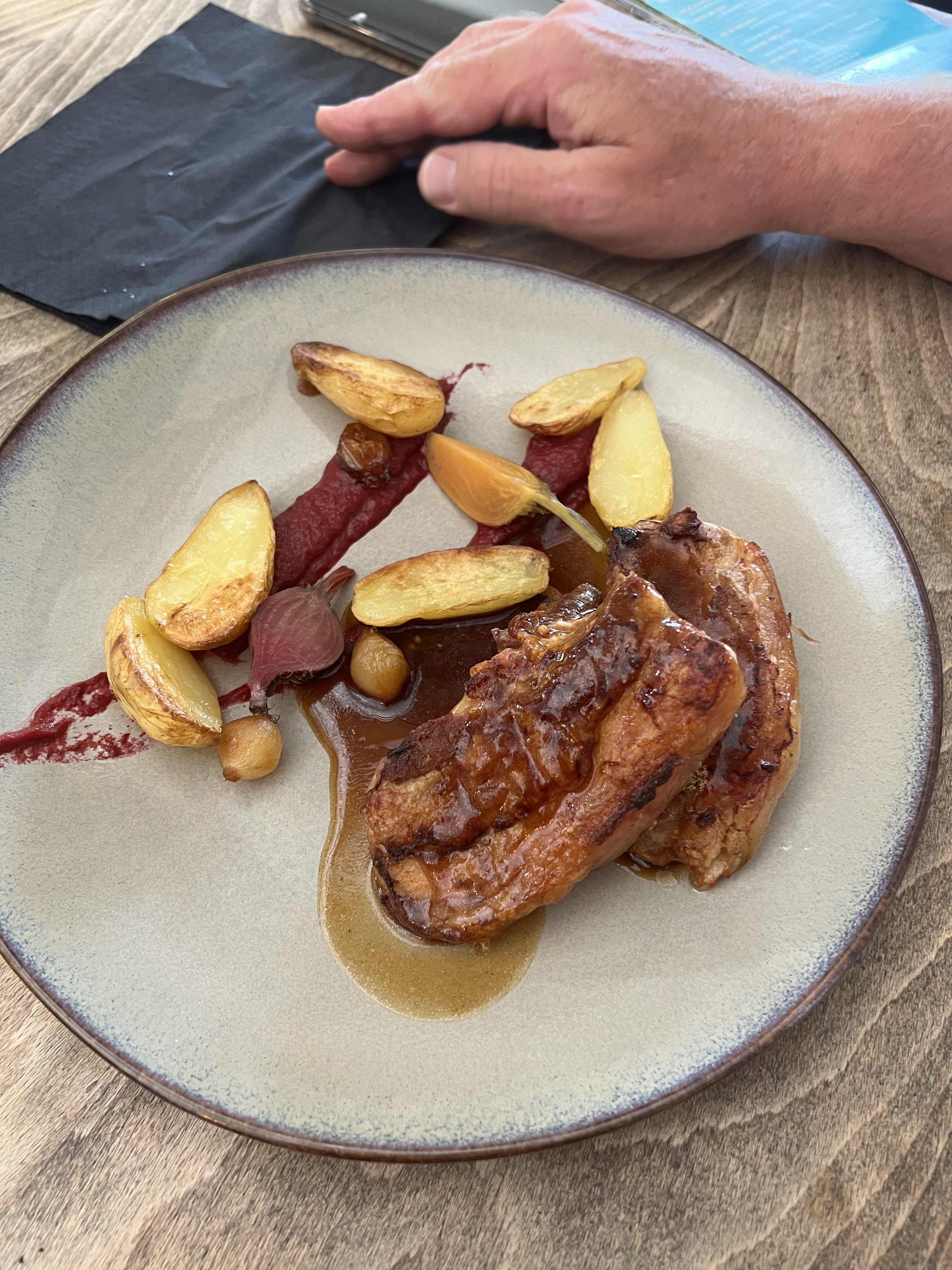 Juste merveilleux. Une carte petite mais avec uniquement des produits frais et très bien cuisinés. N'étant pas tenté par les entrées le chef m'a fait un plat comme entrée, le poulpe accompagné de son mille-feuille il était juste parfait, fondant et croquant à l'extérieur pour le poulpe fondant à souhait. Pour le plat j'ai choisi le cochon cuit 24 heures il fond en bouche avec son petit jus, un délice... Pour le dessert je n'en pouvais plus j'ai donc pris deux sorbets fait maison ananas fraise.. je ne sais plus quoi dire tellement c'était bon. Je vous recommande vivement ce restaurant, l'accueil est aussi formidable que ses plats 🤩