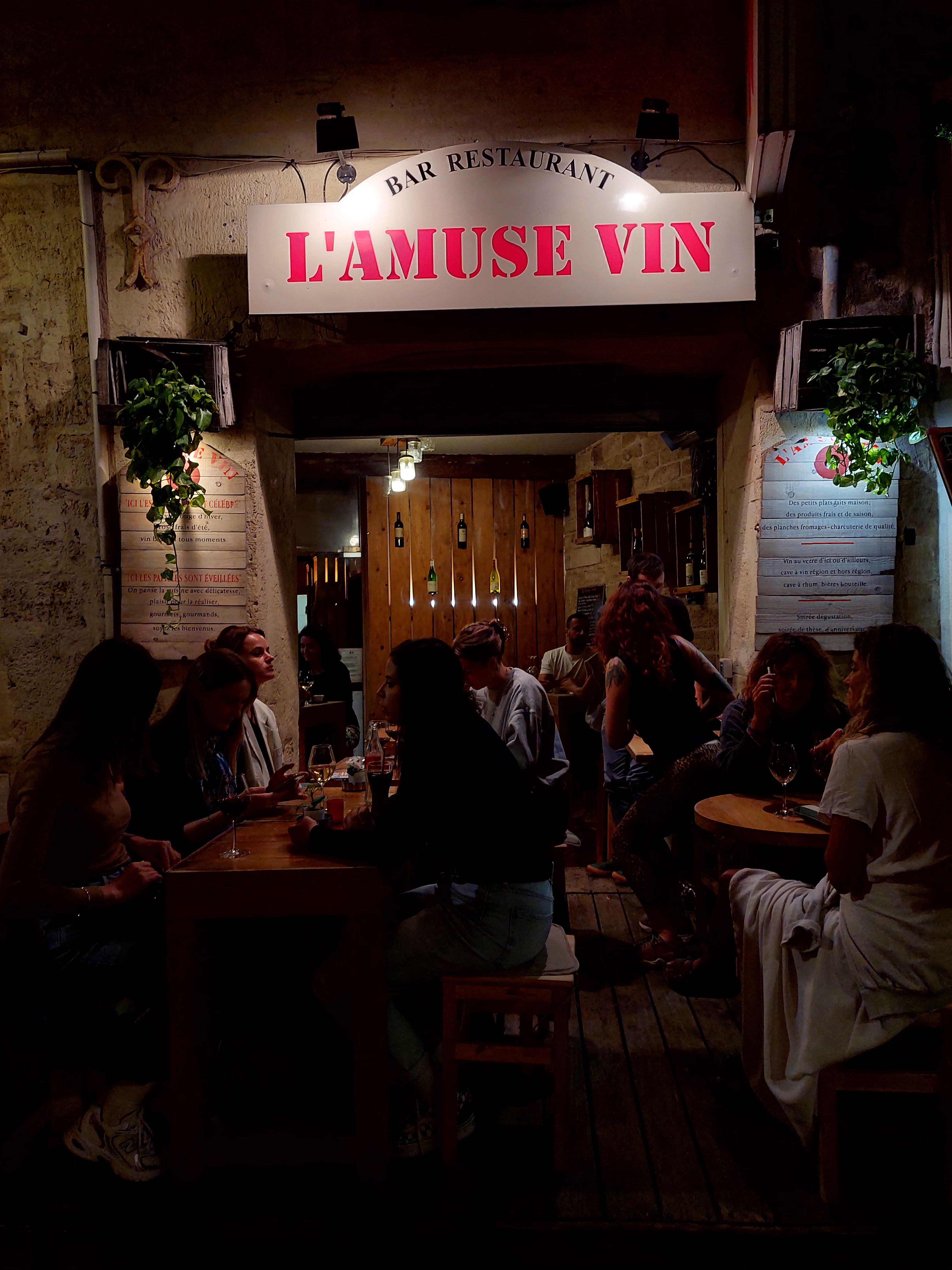 Une excellente expérience à l’Amuse-Vin. Rentrant tardivement, je voulais un coin sympa où déguster un bon vin. Sans mentionner le petit charme de la rue de l’Aiguillerie, j’ai été accueilli par une jeune femme à la voix douce et attentive. Une très très belle découverte ce lieu, car le vin y est excellent et les prix ne flambent pas au premier détour. Il y a la qualité, la gentillesse, et le cadre. Tout cela formant une belle harmonisation donnant le résultat attendu : un très bon moment. Je n’ai pas eu l’occasion de goûter la nourriture, mais paraît-il qu’elle est à l’égal de leur vin ; délicieuse. Endroit à recommander au premier détour cette fois-ci.