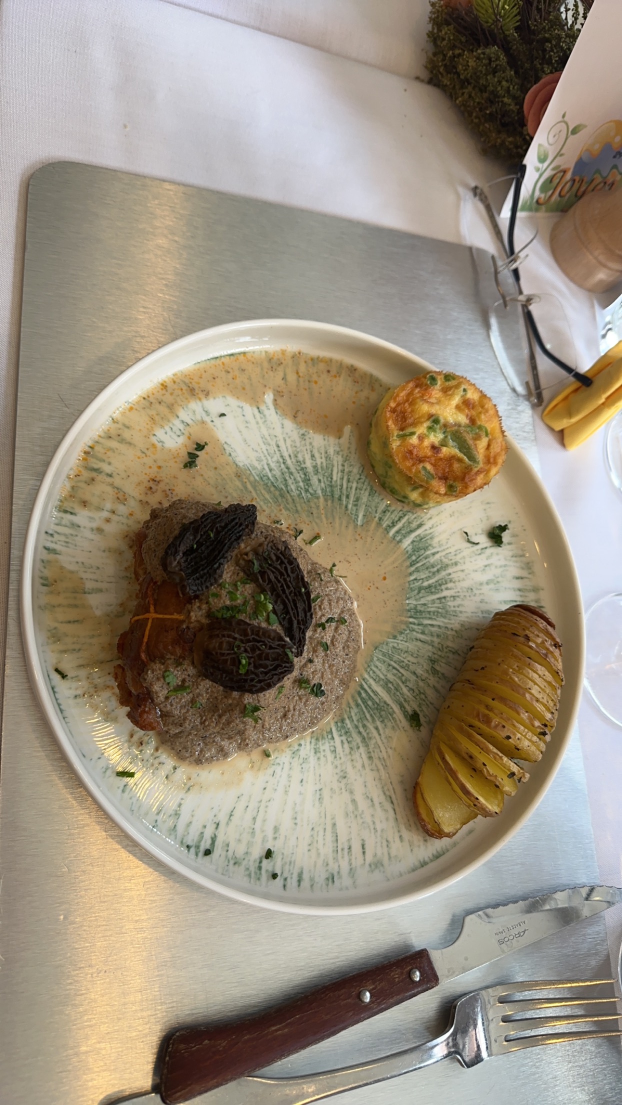 Très belle cuisine maison Les ris de veau aux champignons extra et très bien servis À refaire Je recommande vivement