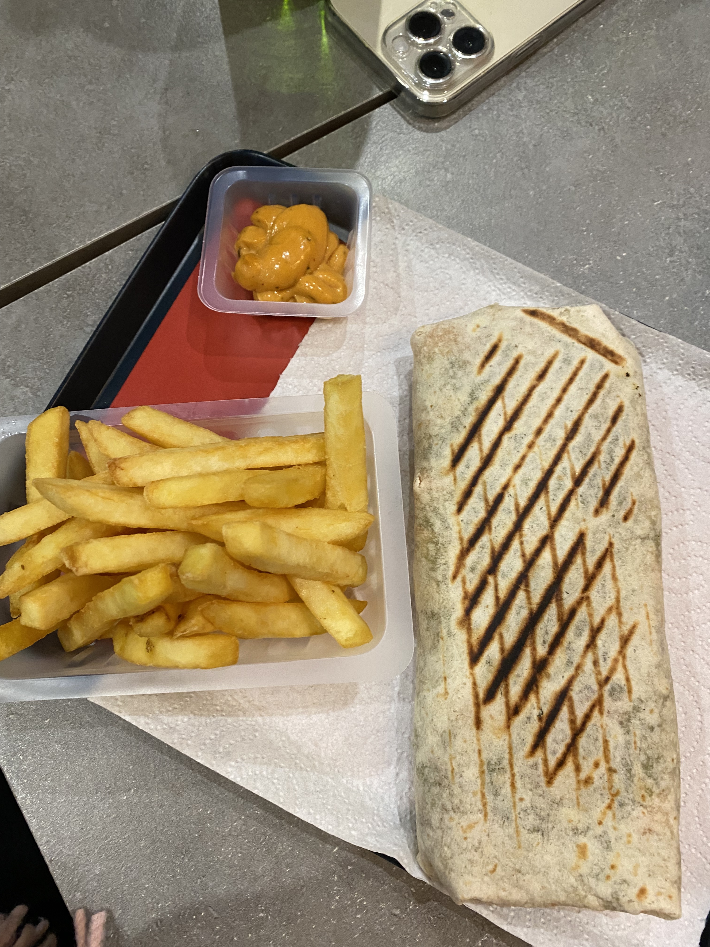 L'installation a table pas facile. Pas pour les grands très compliqué. J'ai pris une assiette kebab poulet personnellement pas fan