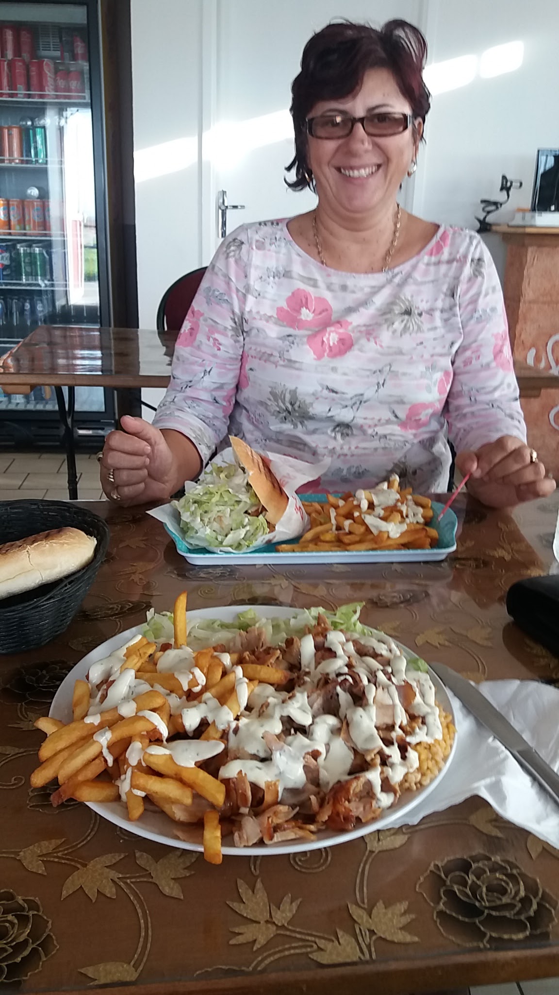Arrivée tard 22h35. J'ai téléphoné avant de y aller pour savoir si je pouvais encore manger. Et donc j'y suis allée. J'ai bien mangé un kebab a l'assiette rien de d'exceptionnel mai sa ma bien dépanner et le cuisinier assez sympathique.