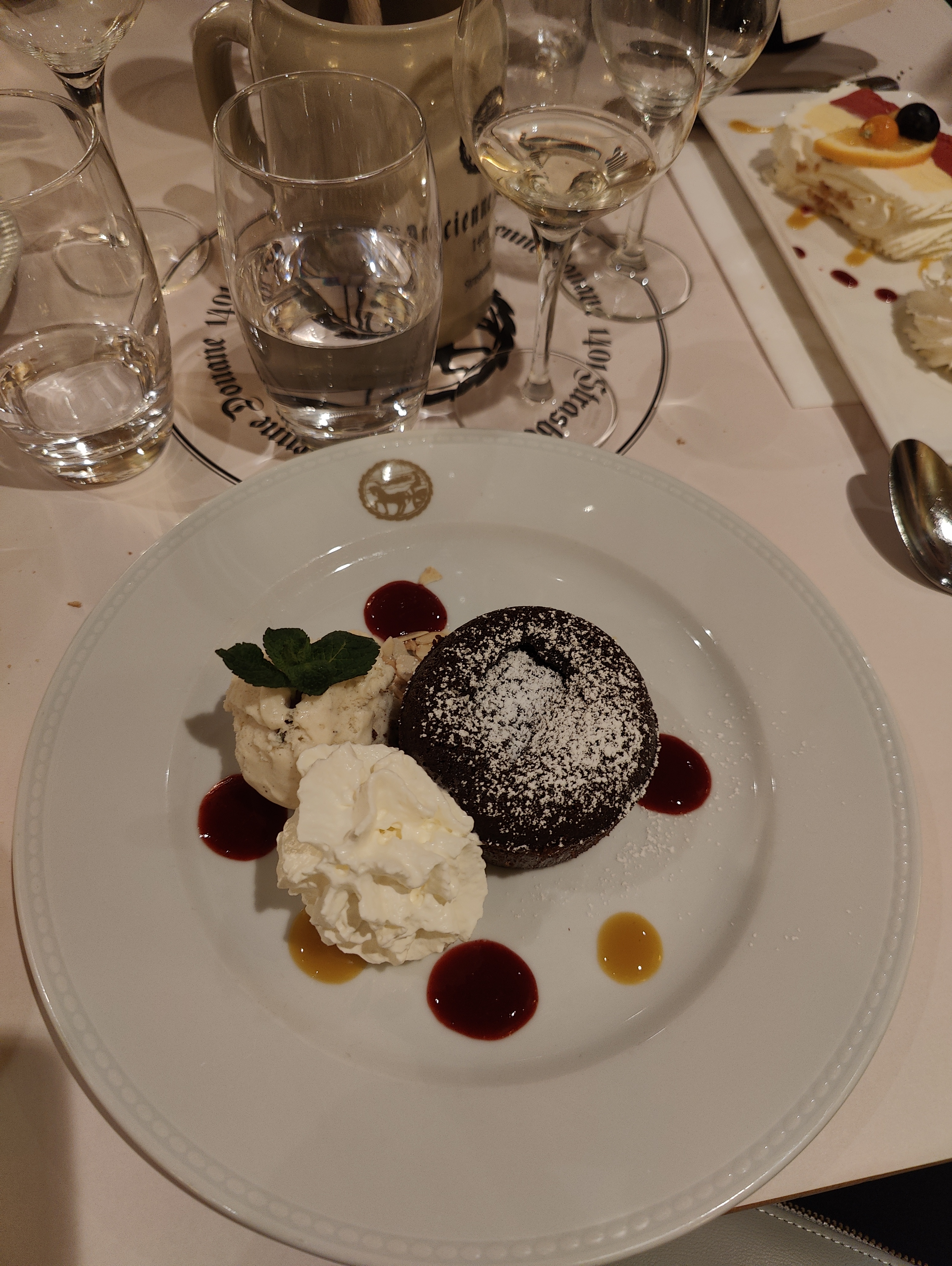 C'est vraiment un très bon restaurant, on a mangé sur la terrasse, c'était très agréable. Les serveurs et serveuses sont vraiment très gentil/le(s) ! Les entrées : foie gras de canard --> c'était vraiment très bon Les plats : - Pavé de Saumon à l’Oseille sur Choucroute : --> c'était très bon, les saveurs se mariaient très bien !! - Suprême de Volaille (env. 200 g) Basse Température, Sauce Crémée au Riesling : --> la volaille était très tendre, la sauce très bonne !! - Bouchée à la Reine, Nouilles Alsaciennes: --> excellent, le feuilleté était vraiment très bon et avec la sauce, les champignons, la viande et les nouilles c'était vraiment très savoureux !! Les desserts : - Kouglof Glacé au Marc de Gewurztraminer: --> très bon, apperemment un petit peu fort au niveau du gewurzt sur la fin, mais ça dépend de la personne ! - Moelleux au Chocolat Maison, Glace Vanille: --> c'est simple; c'était INCROYABLE, le moelleux était coulant, chaud et c'était vraiment très bon ! Je recommande !