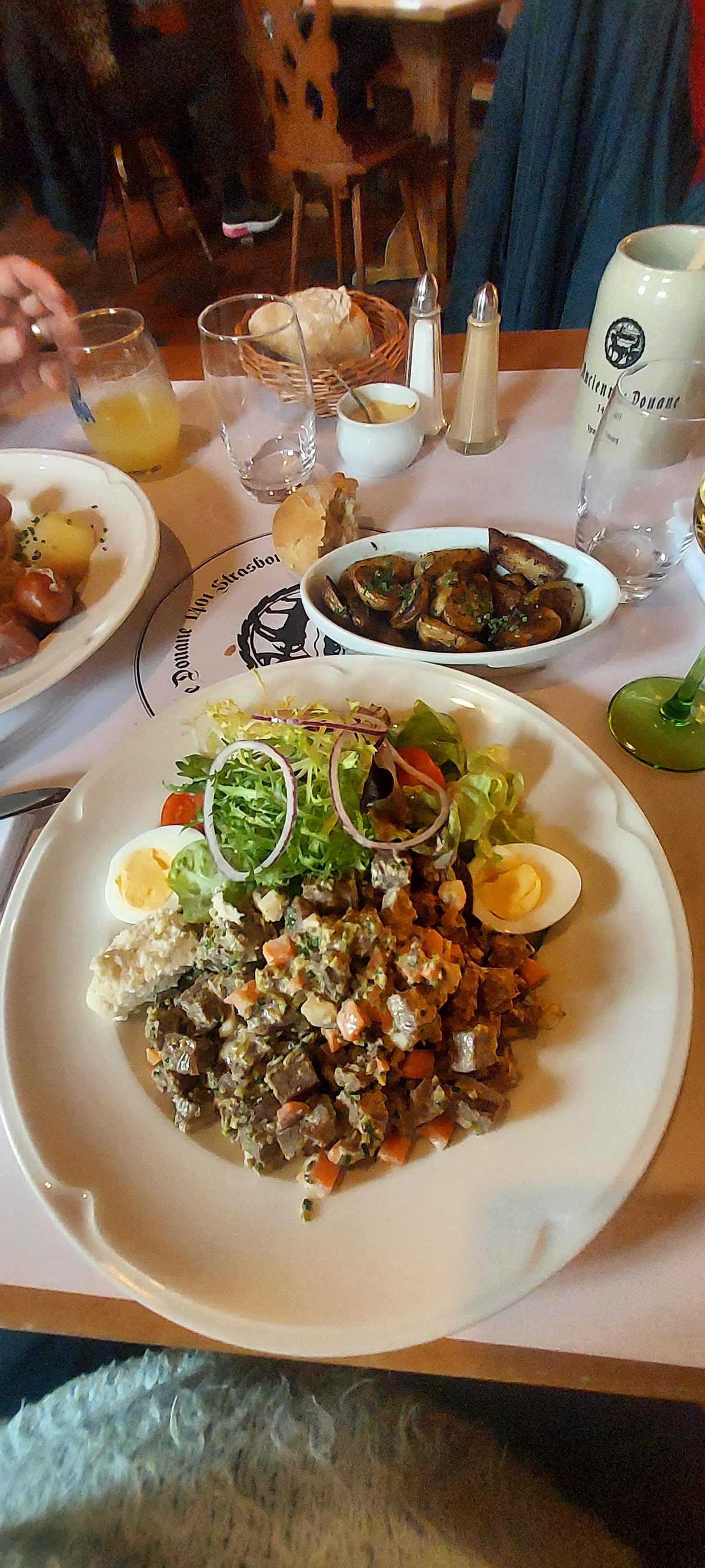 Plusieurs expériences dans différent restaurant Ancienne Douane , de loin le meilleur , bonne tarte flambée , bon repas et dessert donc dans l'ensemble très bonne expérience et merci au serveur pour sa bonne humeur !