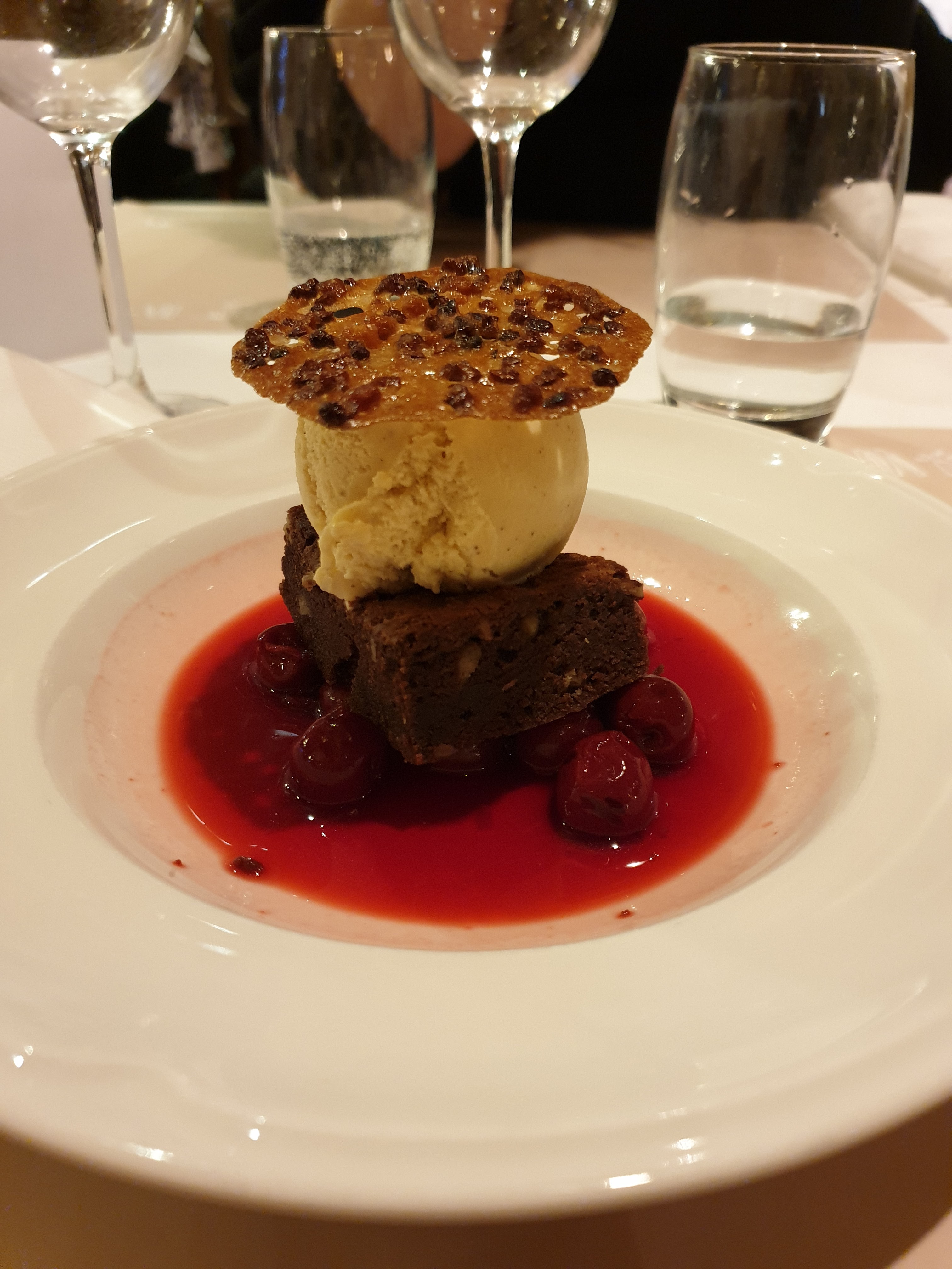 Très mitigé… La cuisine pour le lieu n est pas au niveau, le saumon était vraiment trop cuit. De plus a 21h45, on nous propose des cafes sans dessert… même en demandant la carre nous n’avons pas eu droit au dessert. La raison? plus de cuisinier présent sur place. en plein strasbourg alors que tout les restaurants autour servent et sont pleins… incroyable ! Cela n était pas annoncé au départ, quand ils ont accepté de nous prendre. Au total cadre sympa mais c est tout…