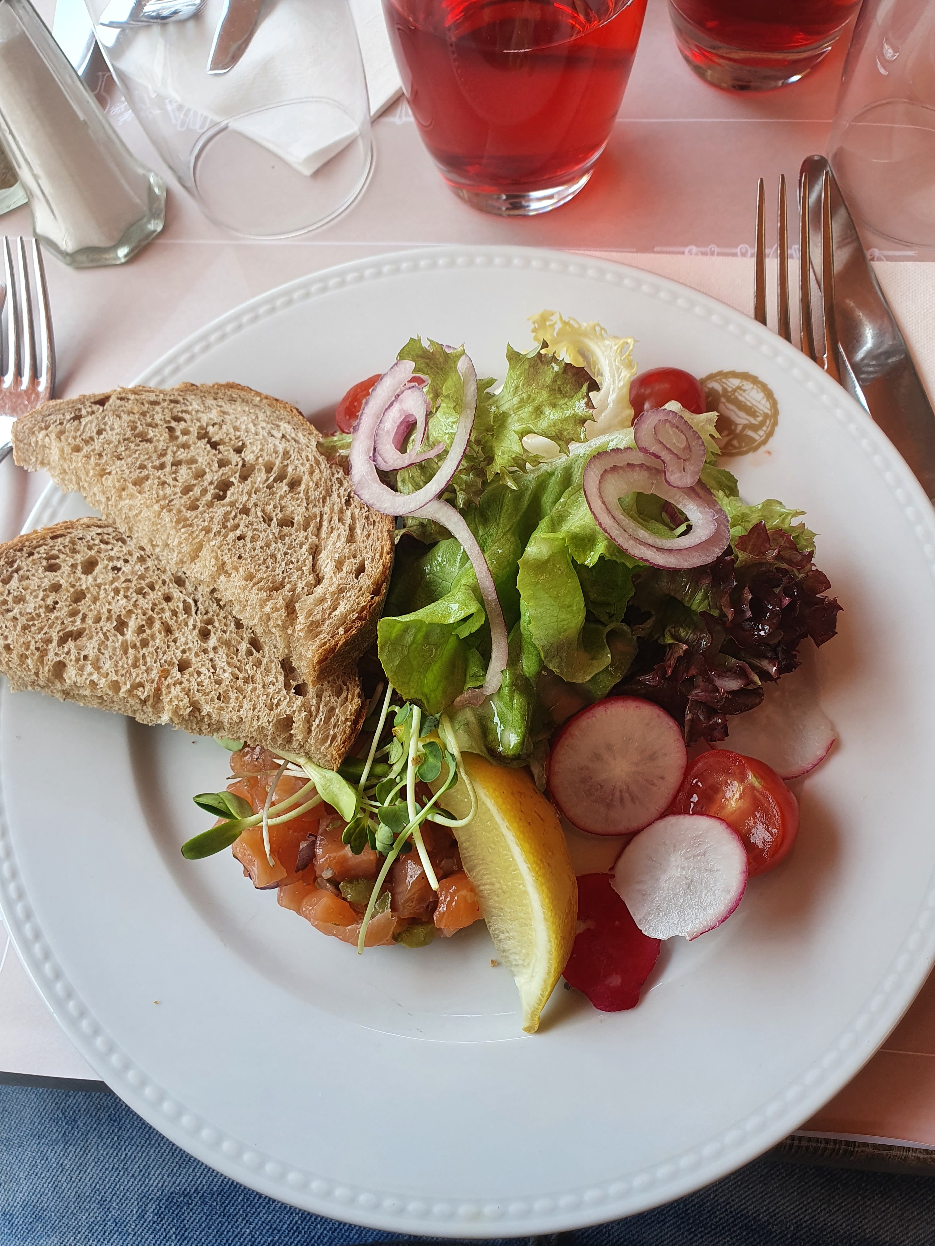 Co figuration du lieu super agréable car nous étions sur la terrasse au soleil au bord de l'eau. Repas bon mais pas exceptionnelle... Quant au personnel on était à la limite de l insolence.... Quel dommage.