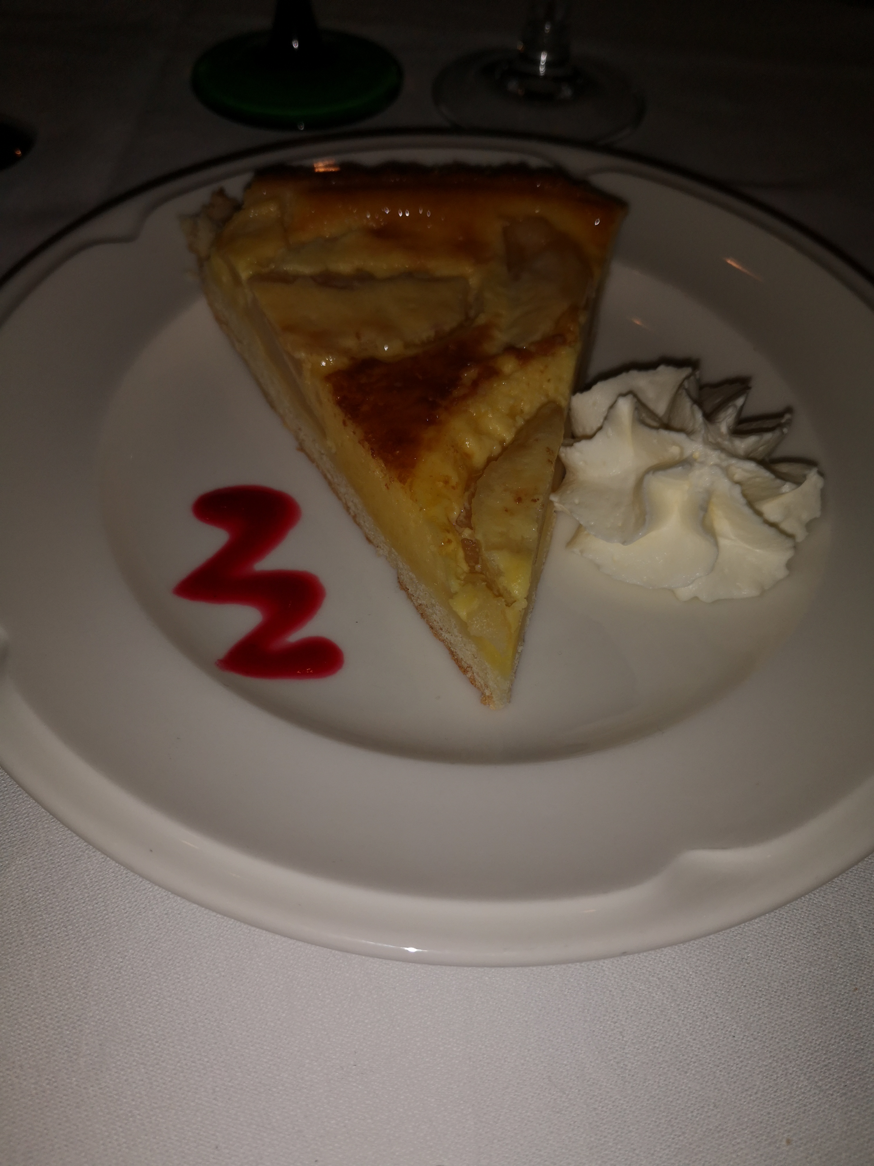 Le cadre est sympathique avec une terrasse grande et idéalement située. Serveuse plus que sympathique avec laquelle nous avons apprécié converser de longues minutes. Les plats, servis rapidement, n’étaient pas mauvais mais pas bons non plus; fades et sans réelle plus-value pour le prix juste énorme. La tarte flambée, très onéreuse, ne vaut pas du tout son prix (trop salée, la pâte laisse à désirer, qualité des ingrédients moyen). Je préfère, et de loin, celle de l’Aigle à Pfulgriesheim (une référence). Le plat principal, un suprême de volaille, était bon mais les spätzles et la sauce manquaient cruellement de goût et d’assaisonnement ainsi que la quantité digne d’un menu enfant. Les desserts étaient bons mais encore une fois il manque ce petit plus qui permettrait de se démarquer et qui nous donnerait envie d’y retourner. Petite mention au strudle qui était très bon. Bonne expérience dans l’ensemble mais 2x plus cher qu’un restaurant en zone rurale où l’on mange 3x mieux, d’où la note de 2/5 car c’est un plat que je pourrais très facilement reproduire à domicile et en mieux. Mes 48€ ne sont donc pas justifiés. Néanmoins, je réitère toutes mes félicitations à la serveuse qui a été un ange.