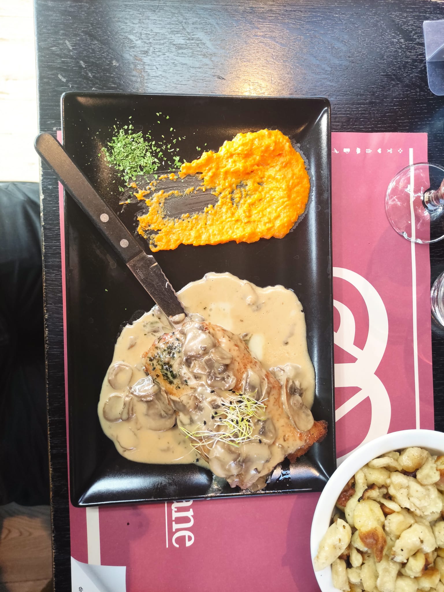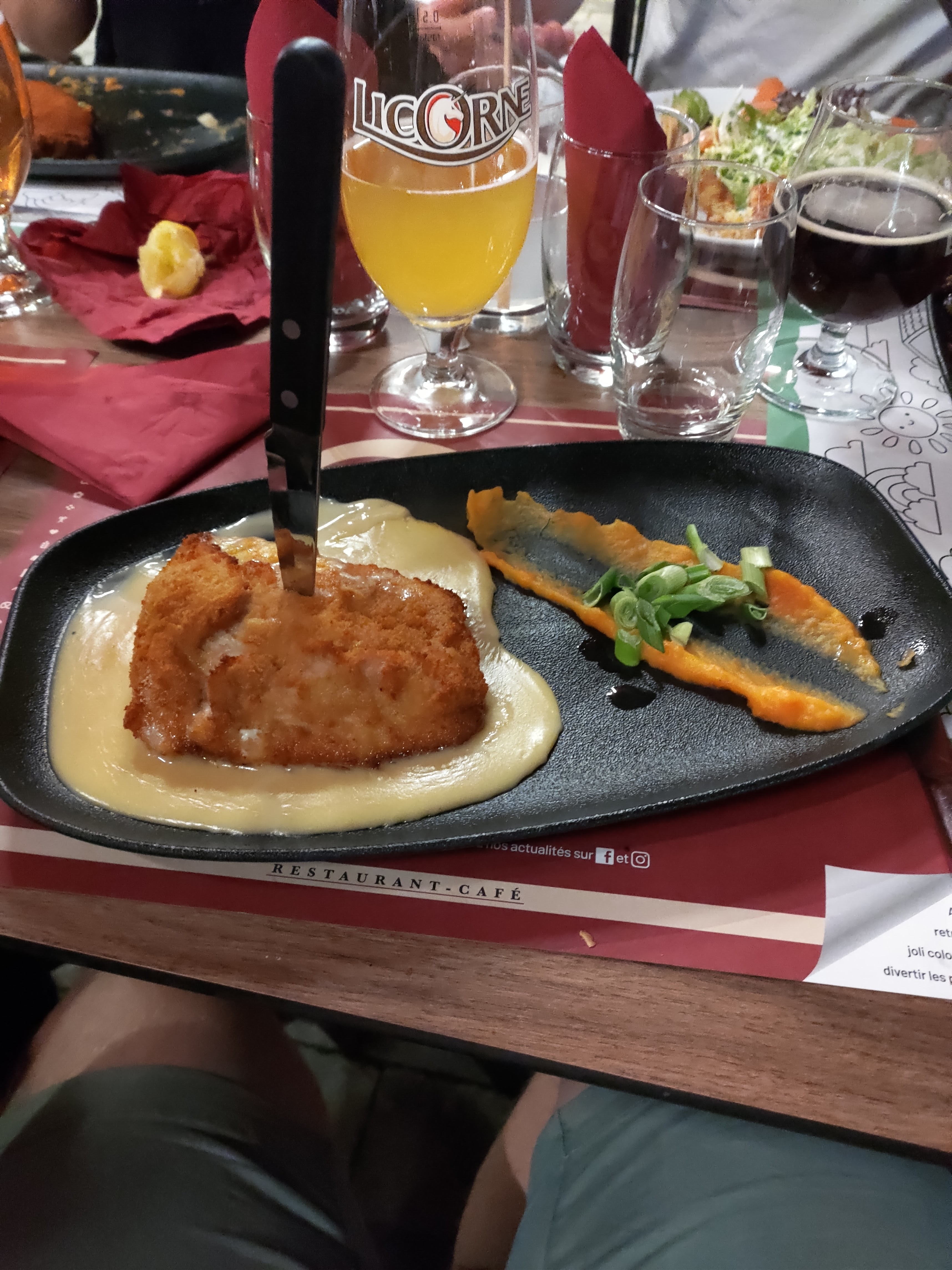 Le cadre est sympathique cependant les serveurs sont assez froid. Cordon bleu à revoir, en y allant déjà plusieurs fois rien à voir, la crème avait un goût de crème fermenté, idem pour la personne qui était présente avec moi alors qu’elle avait un autre plat, dommage ! Un soucis de fraîcheur ? Recette modifié ?