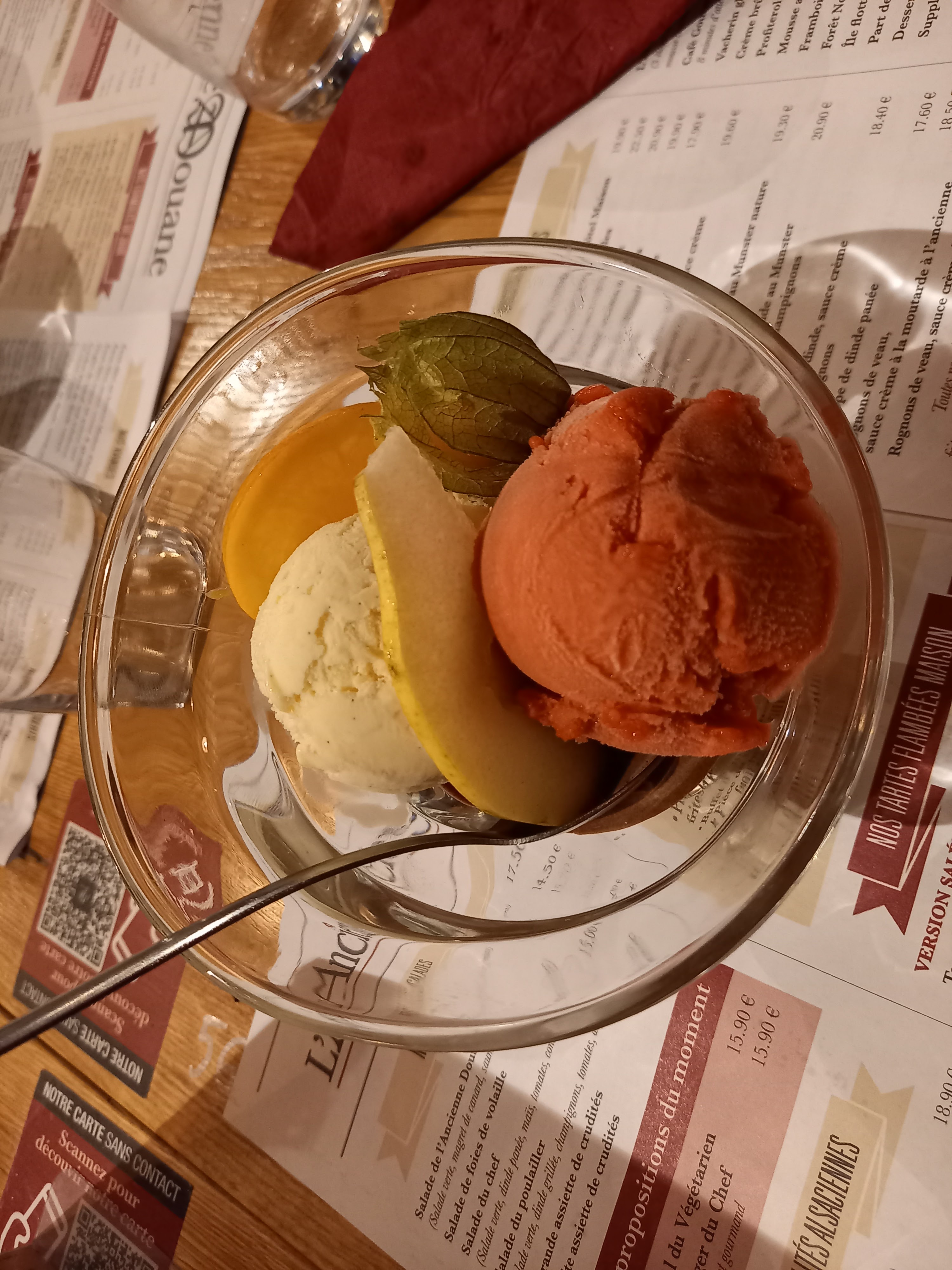 Un restaurant avec un bon rapport qualité-prix. Service rapide et efficace, nous n’avons attendu que pour le dessert et raisonnablement ! Très bonne tarte flambée ail-ciboulette, et le thé gourmand était délicieux, je vous les recommande ! Je reviendrai à l’Ancienne Douane avec plaisir.