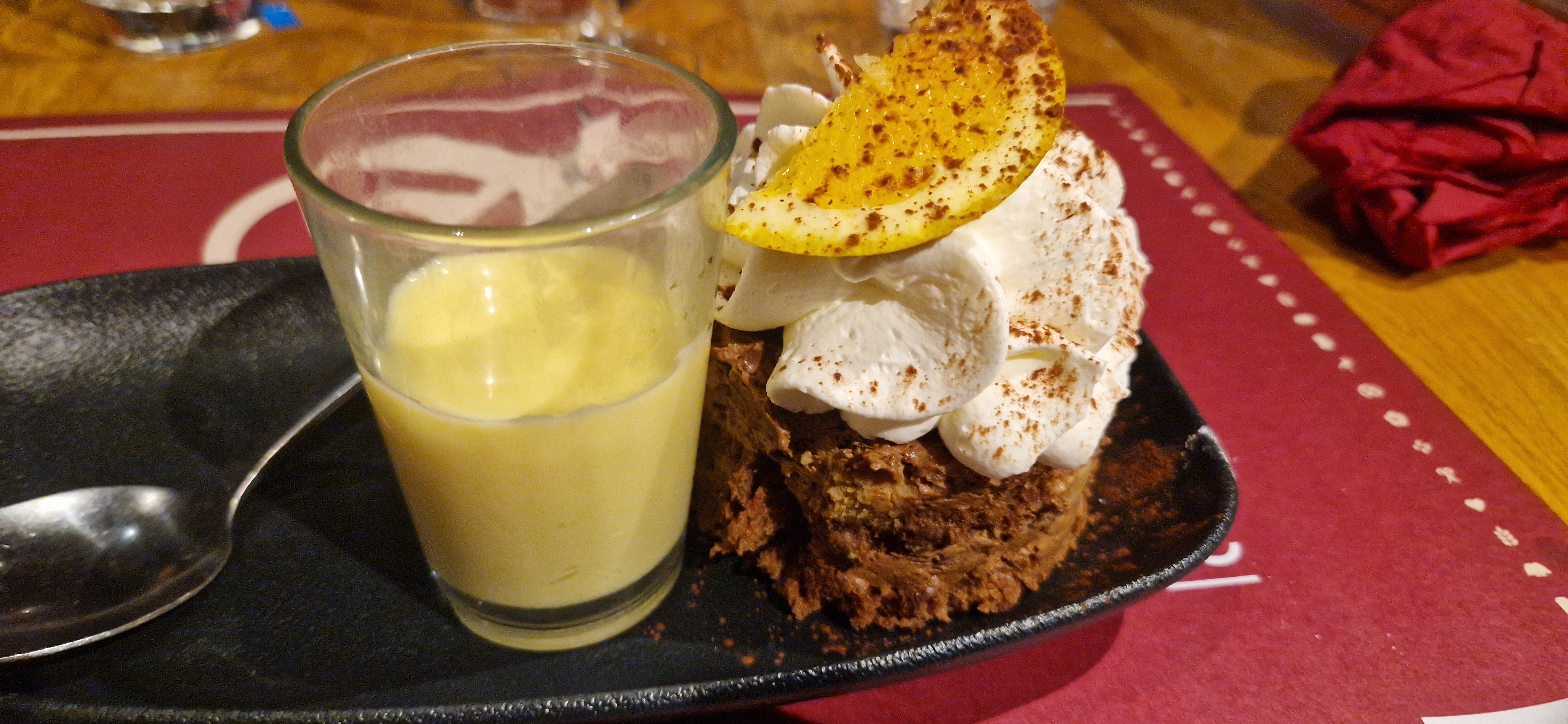 Restaurant sympa, équipé sympa, attente longue entre plat et dessert. On était venue pour notre anniversaire de mariage que j'ai spécifié lors de notre réservation. Il n'y a aucune attention particulière qui a été faite. Plat très bon et bien servi
