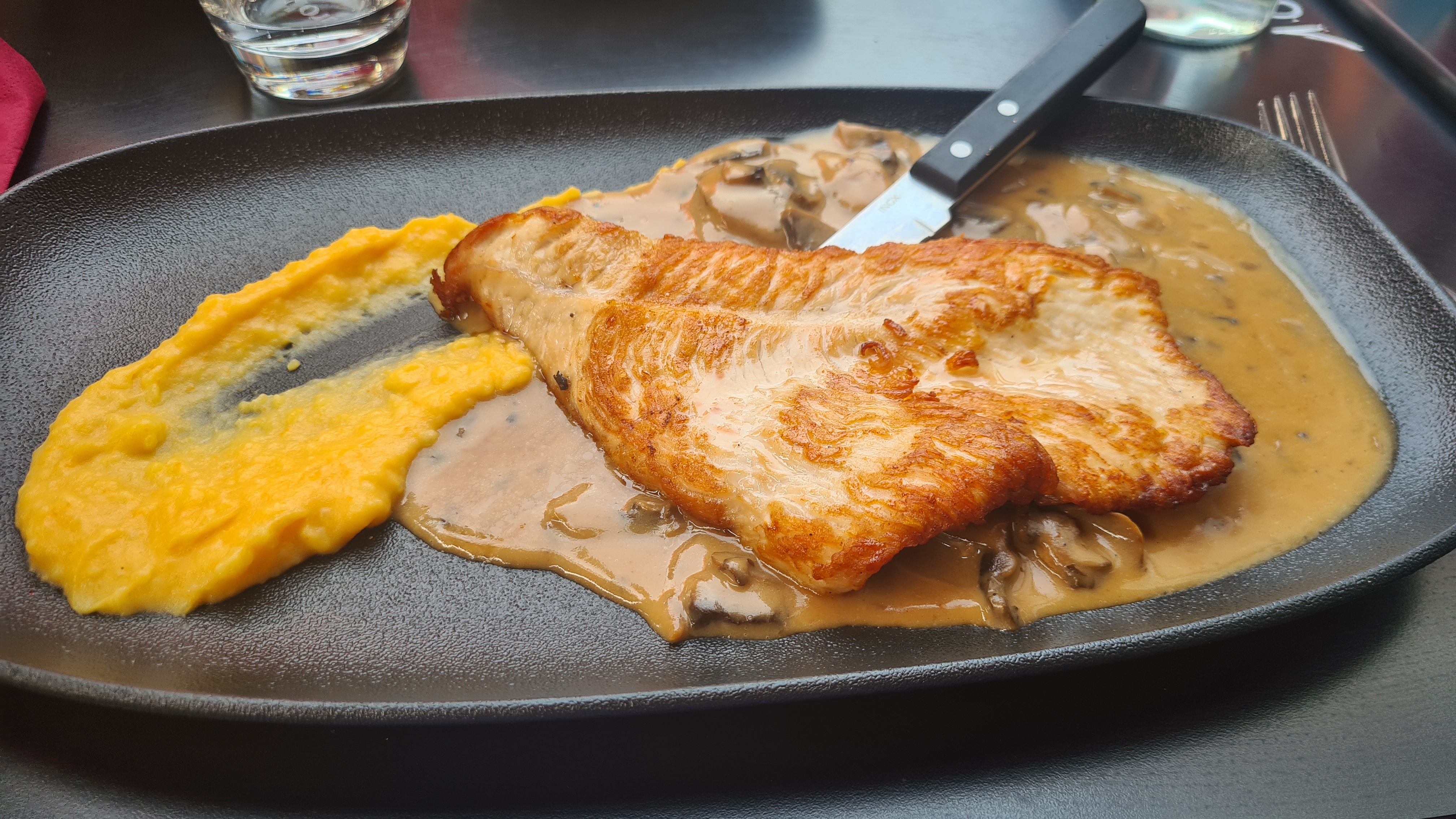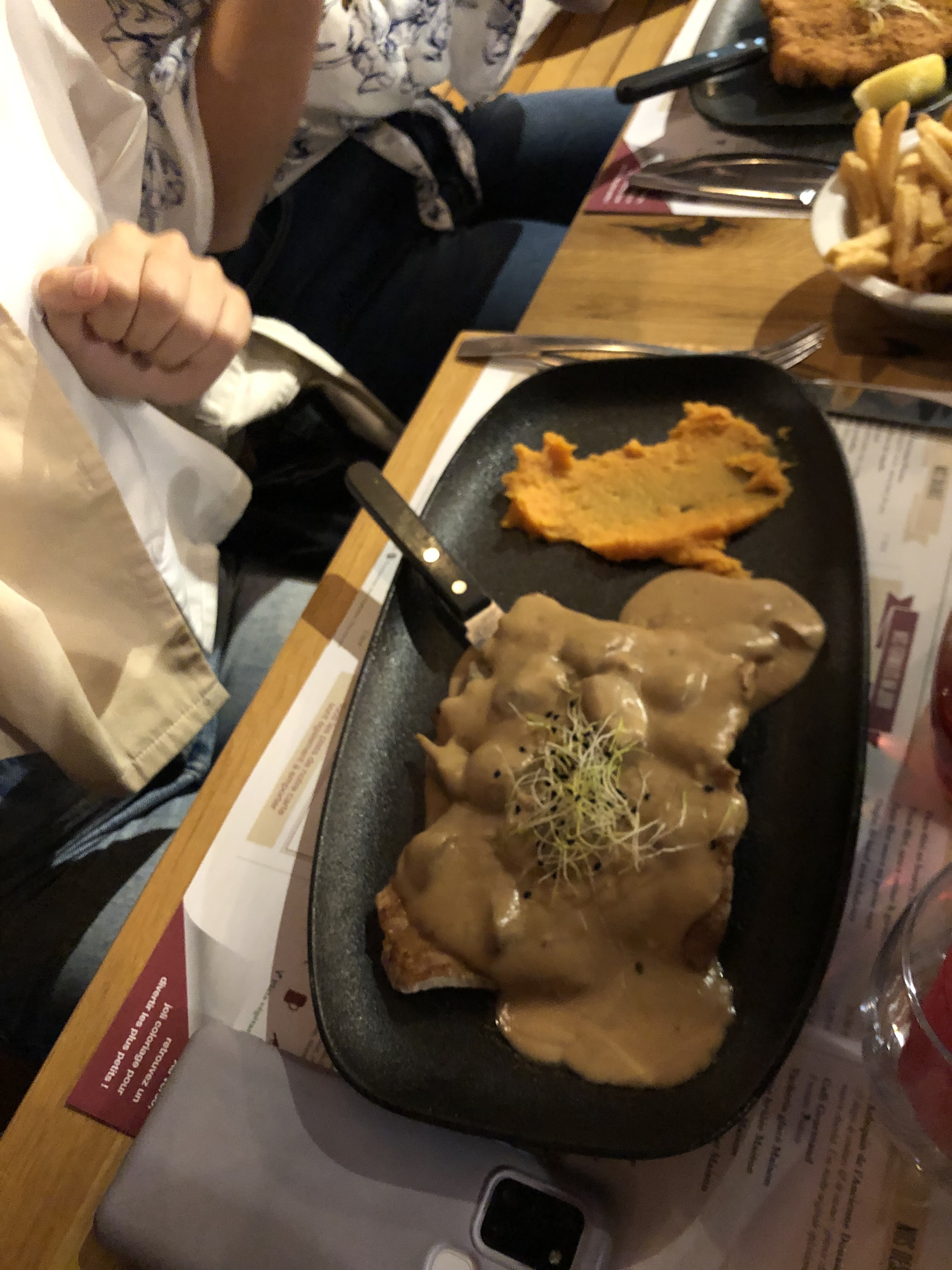 Bon restaurant dans l’ensemble le personnel est vraiment super nous avons été servis très rapidement juste dommage pour l’escalope pané qui était gorger de gras ( voir photo) mais sinon le reste était très bien.