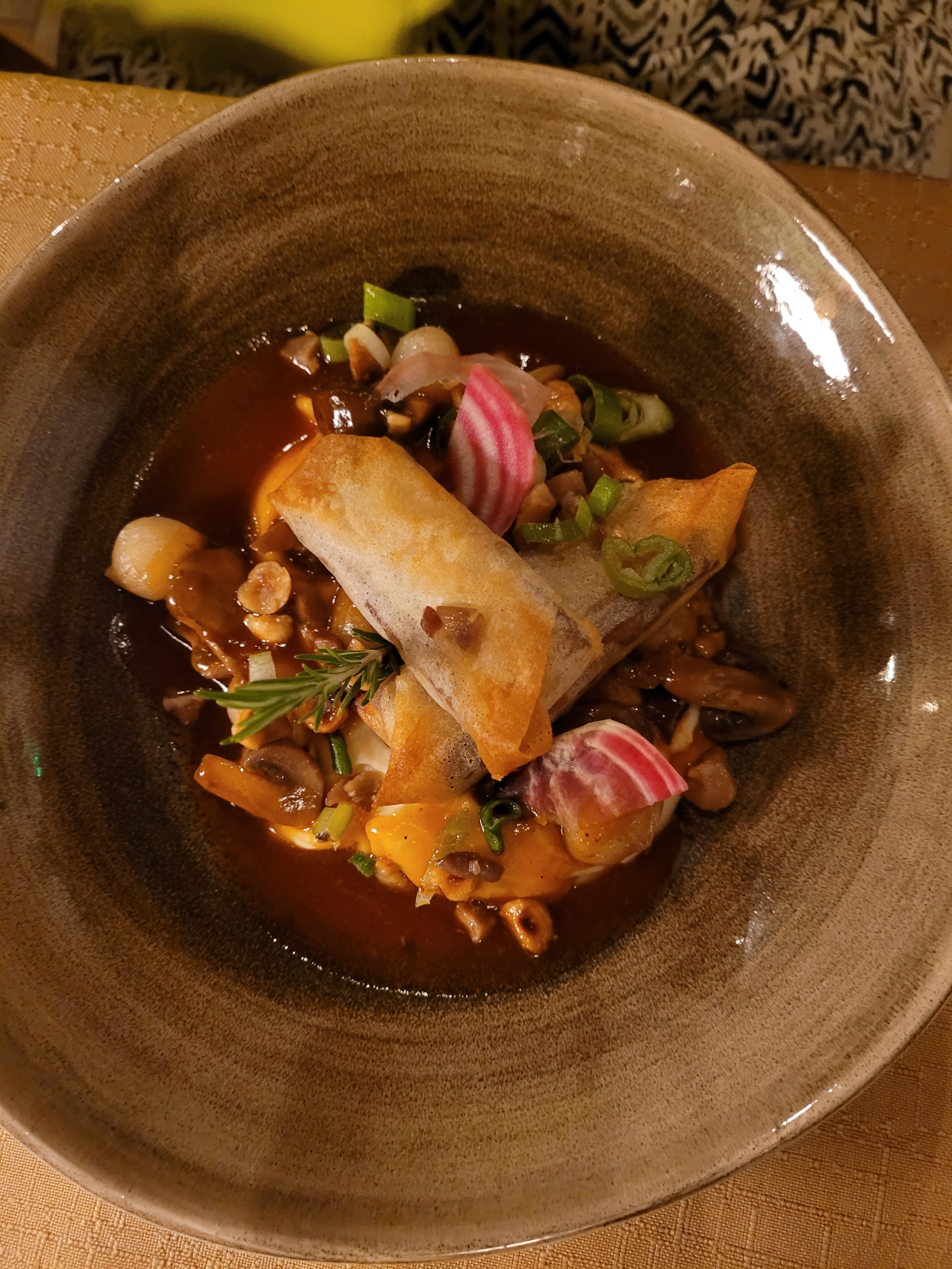Nous avons visité le restaurant pour fêter notre 40 e anniversaire de mariage. C'était un dimanche soir mais malgré tout, le restaurant était assez occupé... mais pas trop. L'atmosphère à l'intérieur du restaurant était extrêmement agréable et les serveurs attentifs, sympathiques et serviables. La nourriture était excellente, fraîche, locale, avec des ingrédients de saison et extrêmement attrayante. présenté. Les prix étaient un peu plus élevés que ce que nous payons habituellement, mais c'était une occasion spéciale et c'était spécial. Pour la qualité de la nourriture, nous avons pensé que cela représentait un bon rapport qualité-prix et serait probablement beaucoup plus si nous étions dans une grande ville. Nous le recommandons donc vivement et ne manquerons pas de revenir.