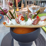 Whaouou Un détour impératif pour un feu d artifice des papilles. Chaque plat ressemble a un tableau où se mélange les couleurs et les saveurs. Un acceuil agréable avec deux serveuses vraiment à l écoute et souriante. Merci pour la petite attention en l honneur des 60 ans de mariage de mes parents . Je recommande vivement.