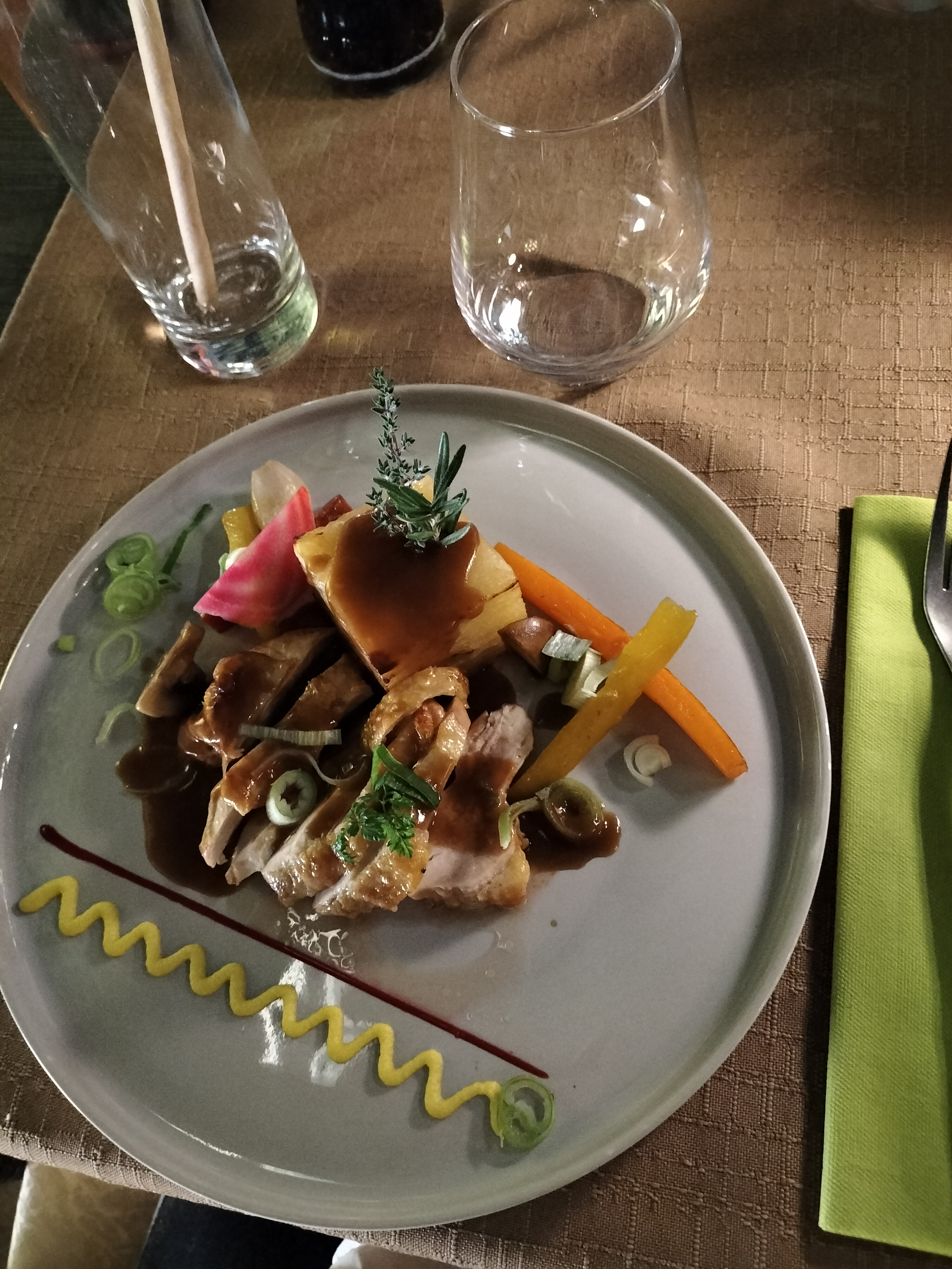 Délicieuse cuisine, le tataki de magret était un régal. Les plats sont très beaux, les prix sont très corrects. A refaire sans hésiter. Merci