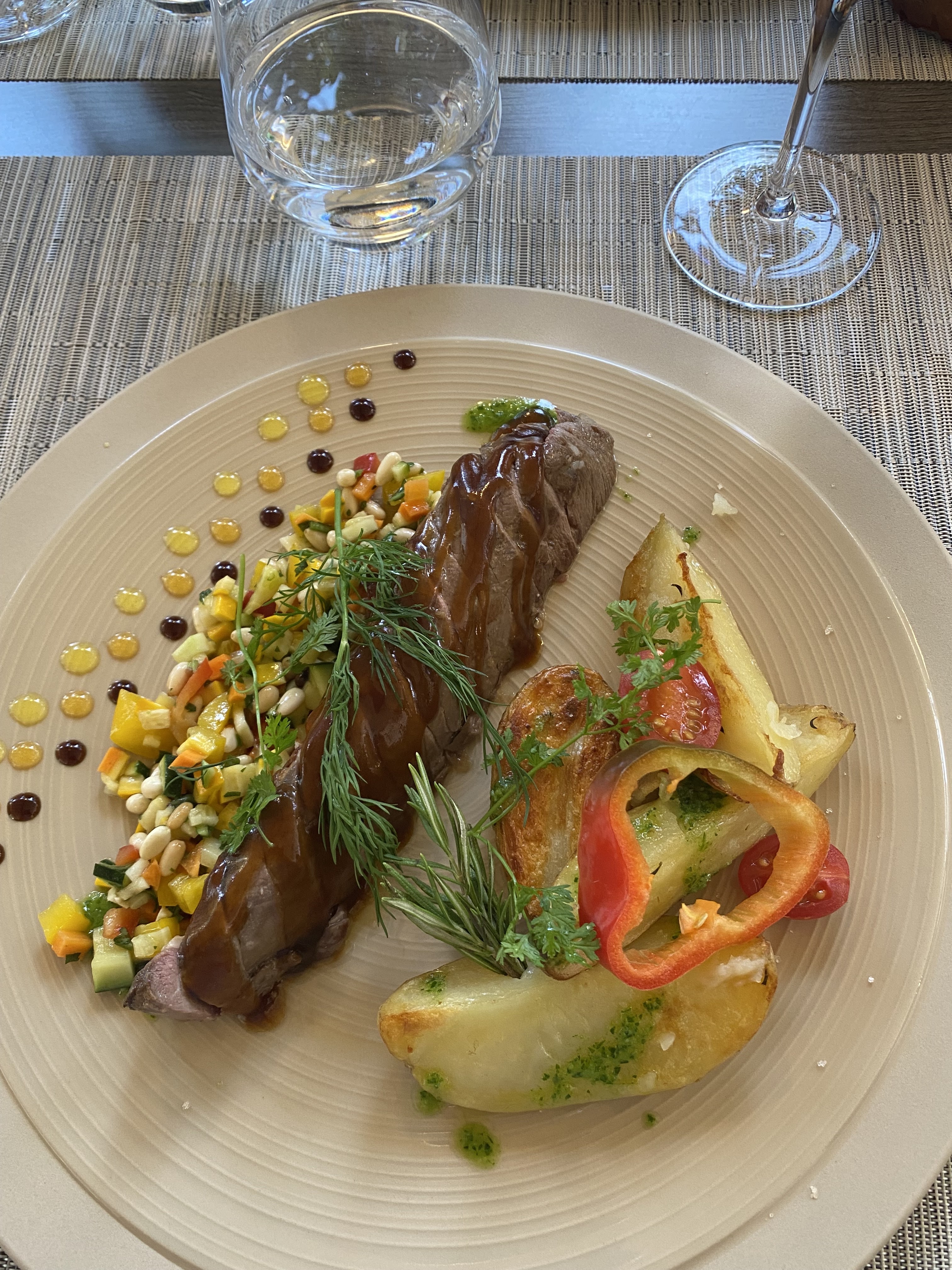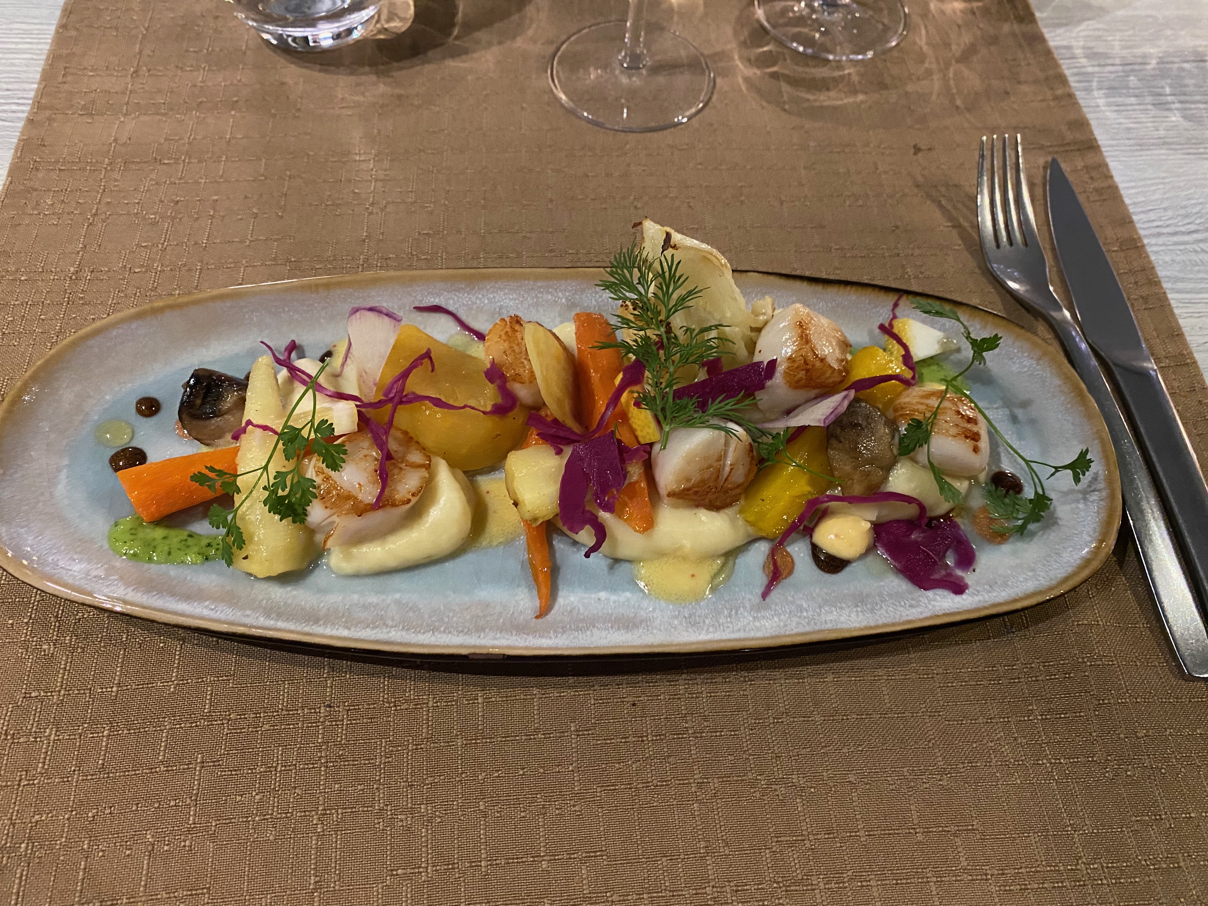 Ce restaurant nous avait été conseillé par des amis qui habitent dans le coin et l'occasion a fait que nous y sommes allés à midi , c'est un régal autant en bouche que pour les yeux ,c'est raffiné ,copieux ,le lieu est magnifique,le personnel discret et aimable ,nous espérons avoir une autre occasion d'y revenir.en tout cas il fera parti de nos chouchous