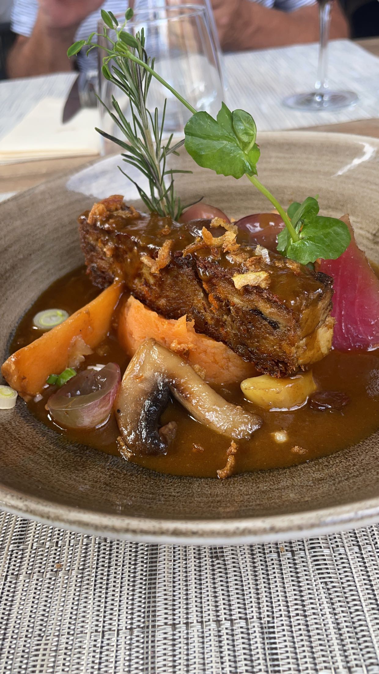 Étant vegan ils ont adaptés un repas pour moi. Merci au cuisinier . Service impeccable
