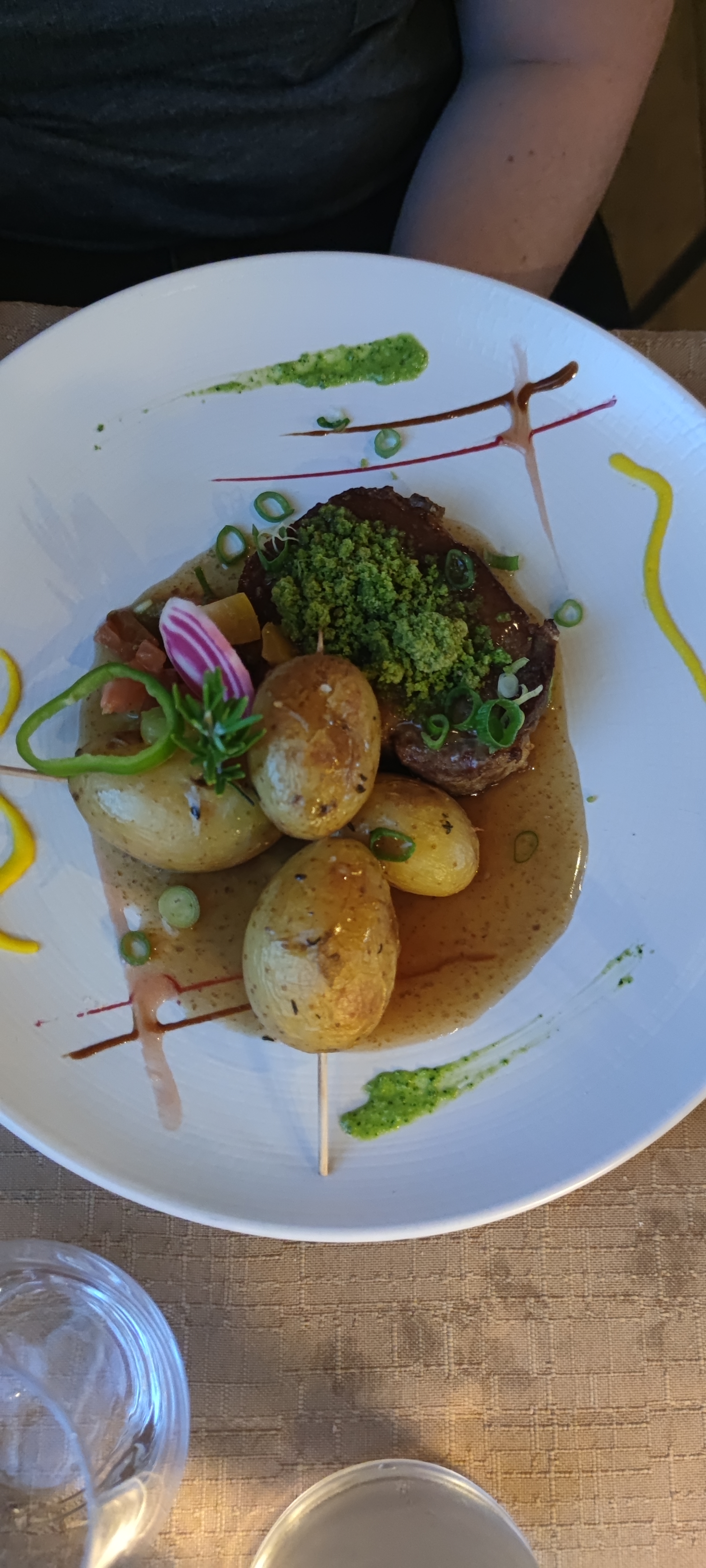 Personnel agréable, restaurant calme, plats bien préparé et une belle présentation, délicieux de l'amuse bouche au dessert, et pour finir un beau contexte.