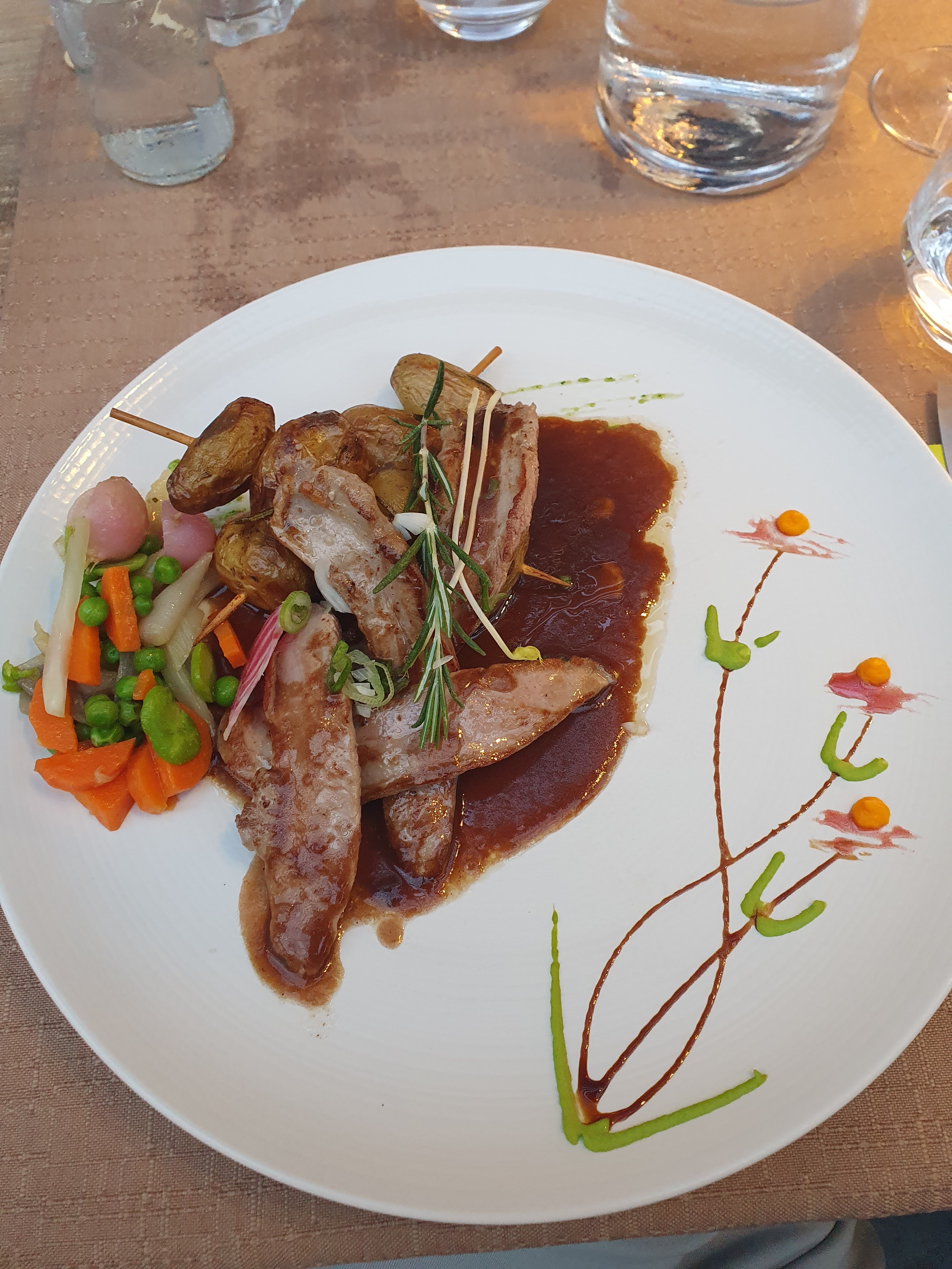 Un joli cadre, un bon service, des plats soignés, bonne note gustative, néanmoins la carte est d'un choix assez restreint - peut être en raison de la période ? Agneau, veau, porc, pavé de thon. Par contre, le prix m'a paru assez disproportionné : un plat principal + un dessert, sans apéritif ni café - une bouteille de rosé pour 8 (29€) - coût par personne 39 €. Nous voulions voir..nous avons vu. Après tout la qualité étant présente ce restaurant peut convenir à ceux qui ne tiennent pas compte du rapport qualité prix de la prestation.