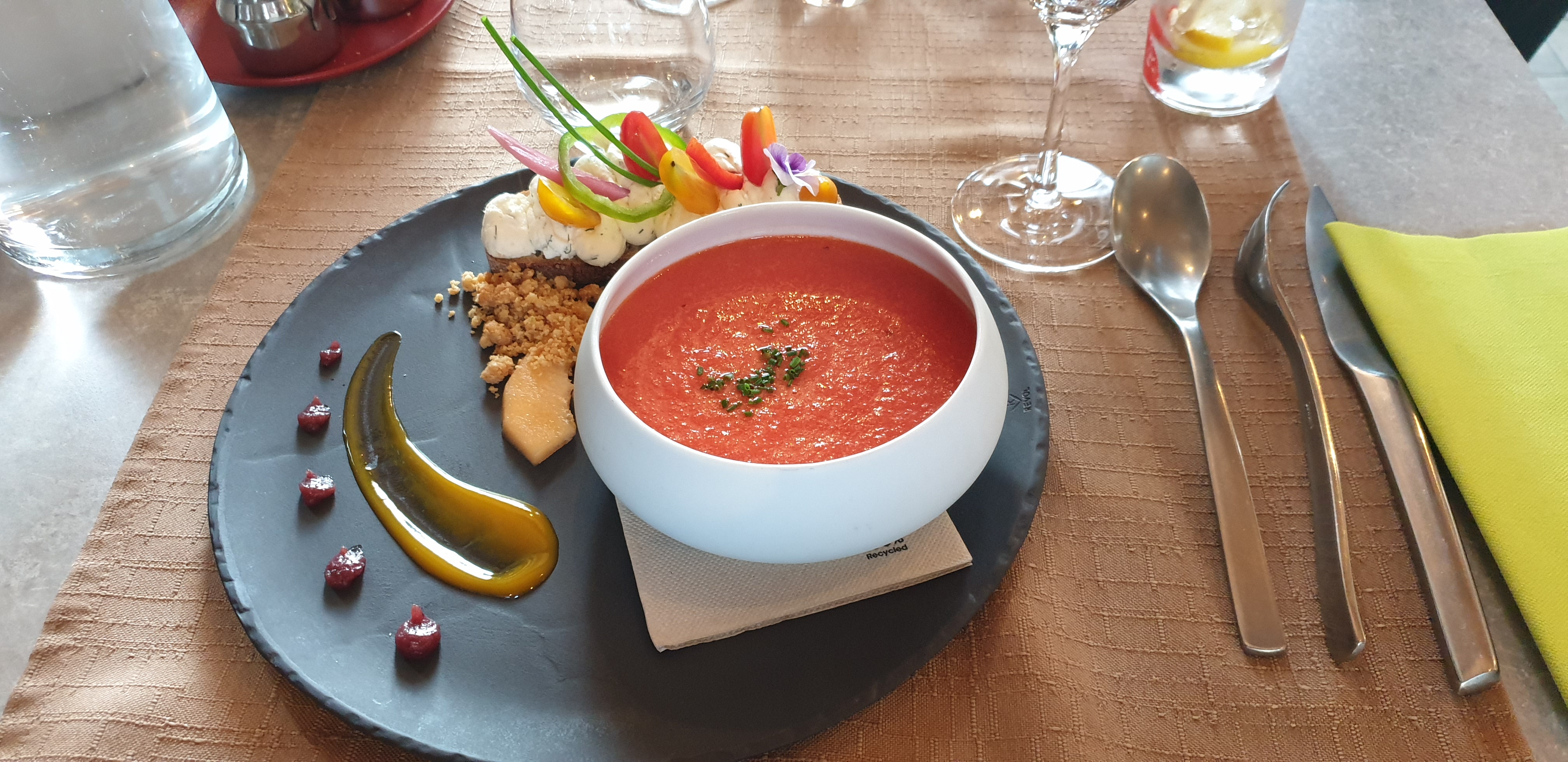 Superbe repas avec respect des produits et du goût. Beau moment pour les papilles. Il serait au top si, les tomates et les fraises trouvent leurs places au moment de l'année adéquat pour les déguster et non en automne. Je recommande quand même et rien de cela ne pénalisera ce bon moment, juste une critique constructive. ;)