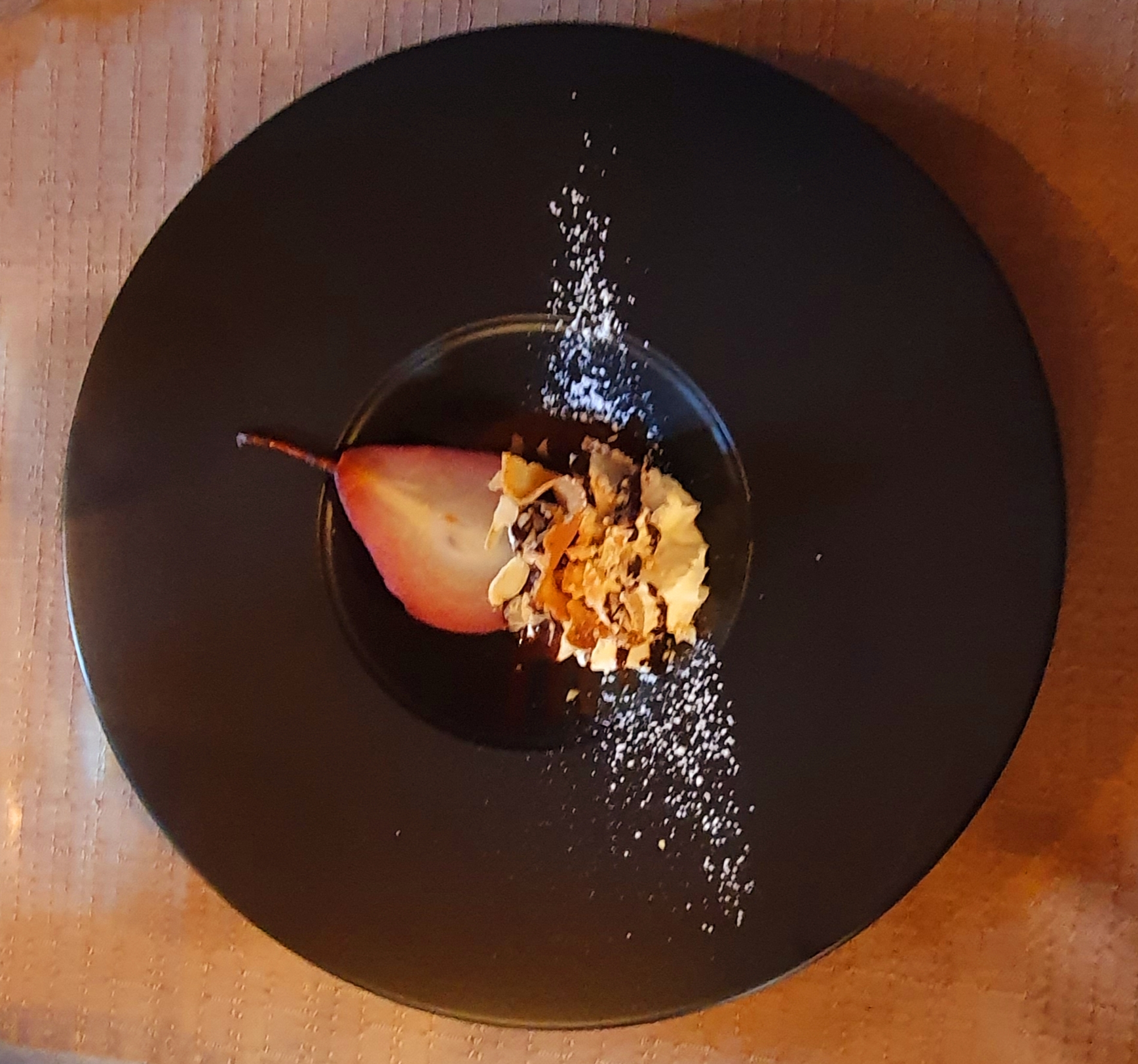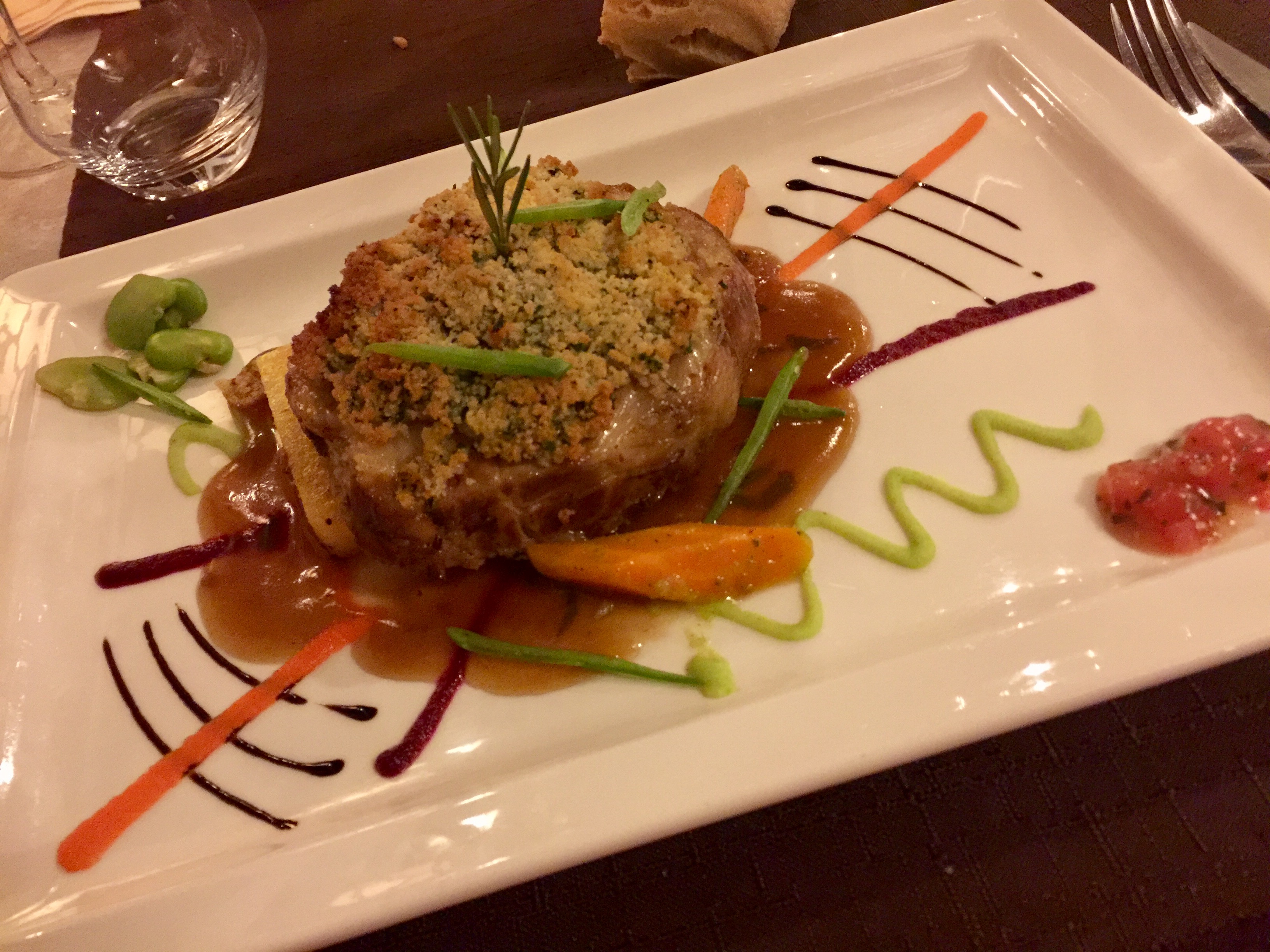 Wow, si vous êtes dans cette région, rendez-vous service et allez manger ici. La nourriture était superbe. Service charmant, ne pouvait pas contenir un dessert chacun. Le Tataki de thon était comme un voyage, le goût, la texture et la saveur étaient incroyables. J'ai pris le porc comme plat principal. Ma femme a pris le petit pain parisien avec Pate pour l'entrée et les crevettes et les pétoncles pour le plat principal. Nous avons partagé le dessert qui était délicieux. Ça vaut vraiment le détour et le prix.