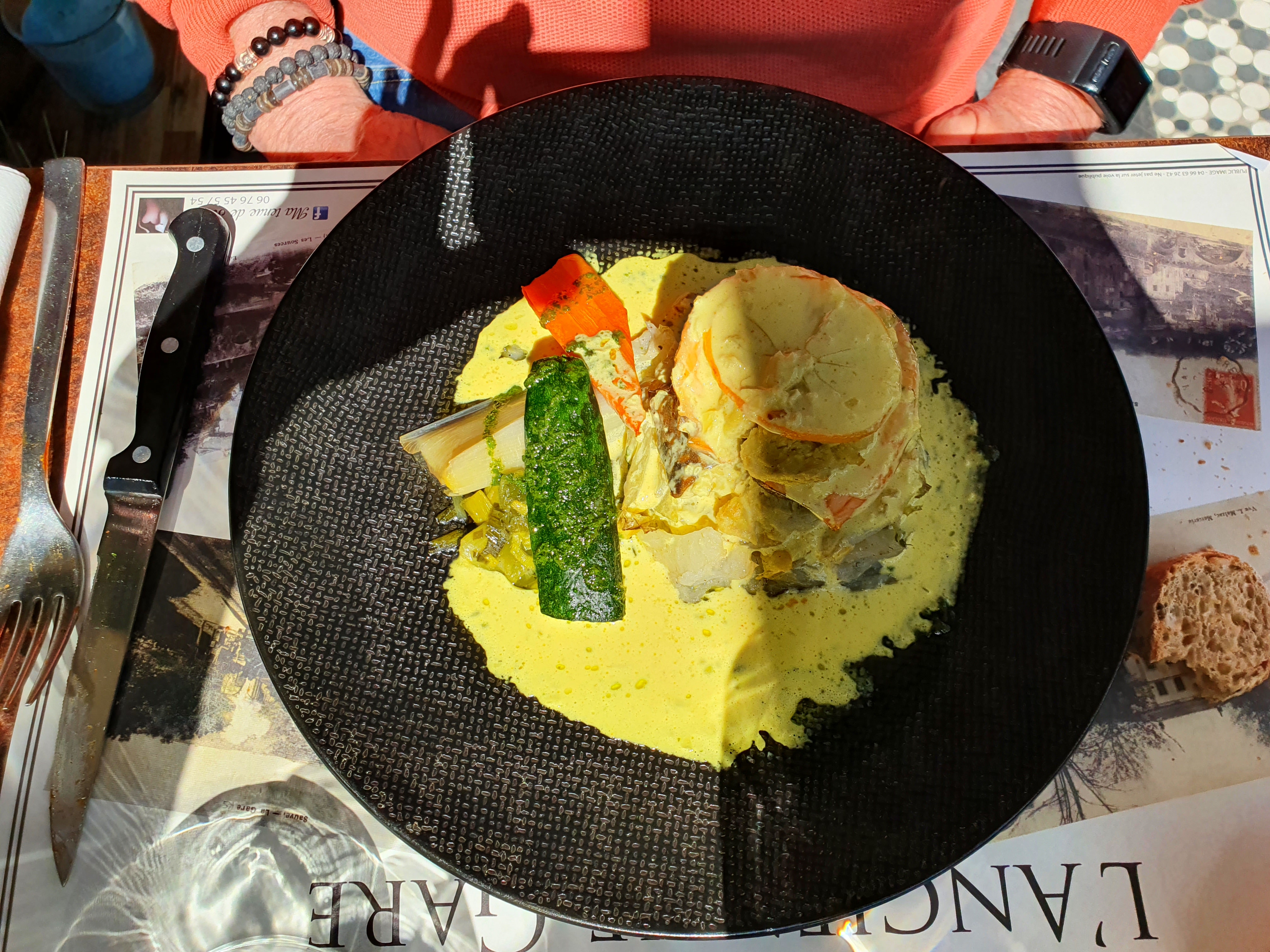 Vraiment très très bien. Patron et serveur très agréable. Très beaux plats. Produits originaux et de qualité. Merci pour votre sympathique accueil avec nos trois chiens.