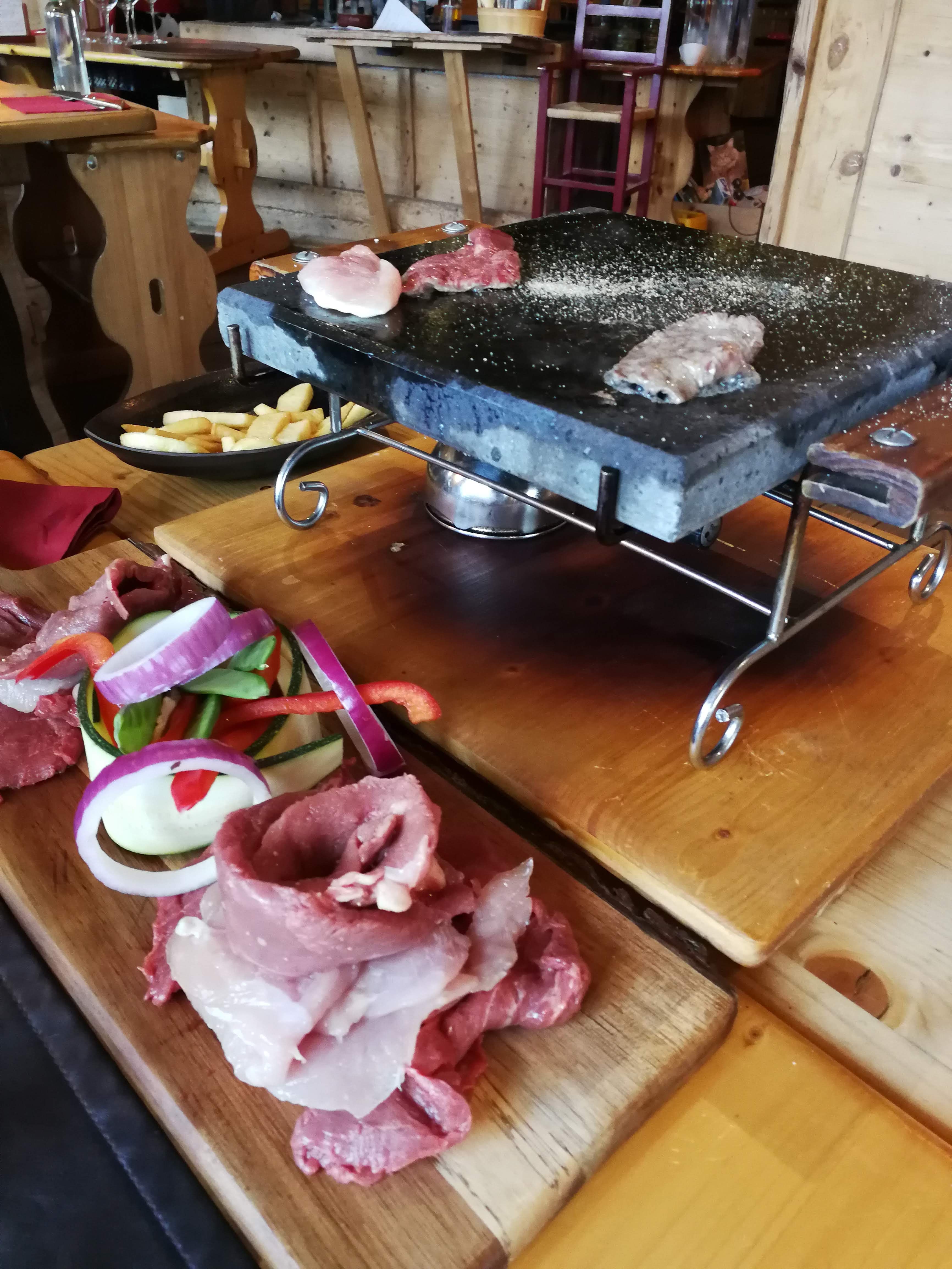 Pierrade . Accompagnée d une confiture d olives à tomber . Belle découverte.