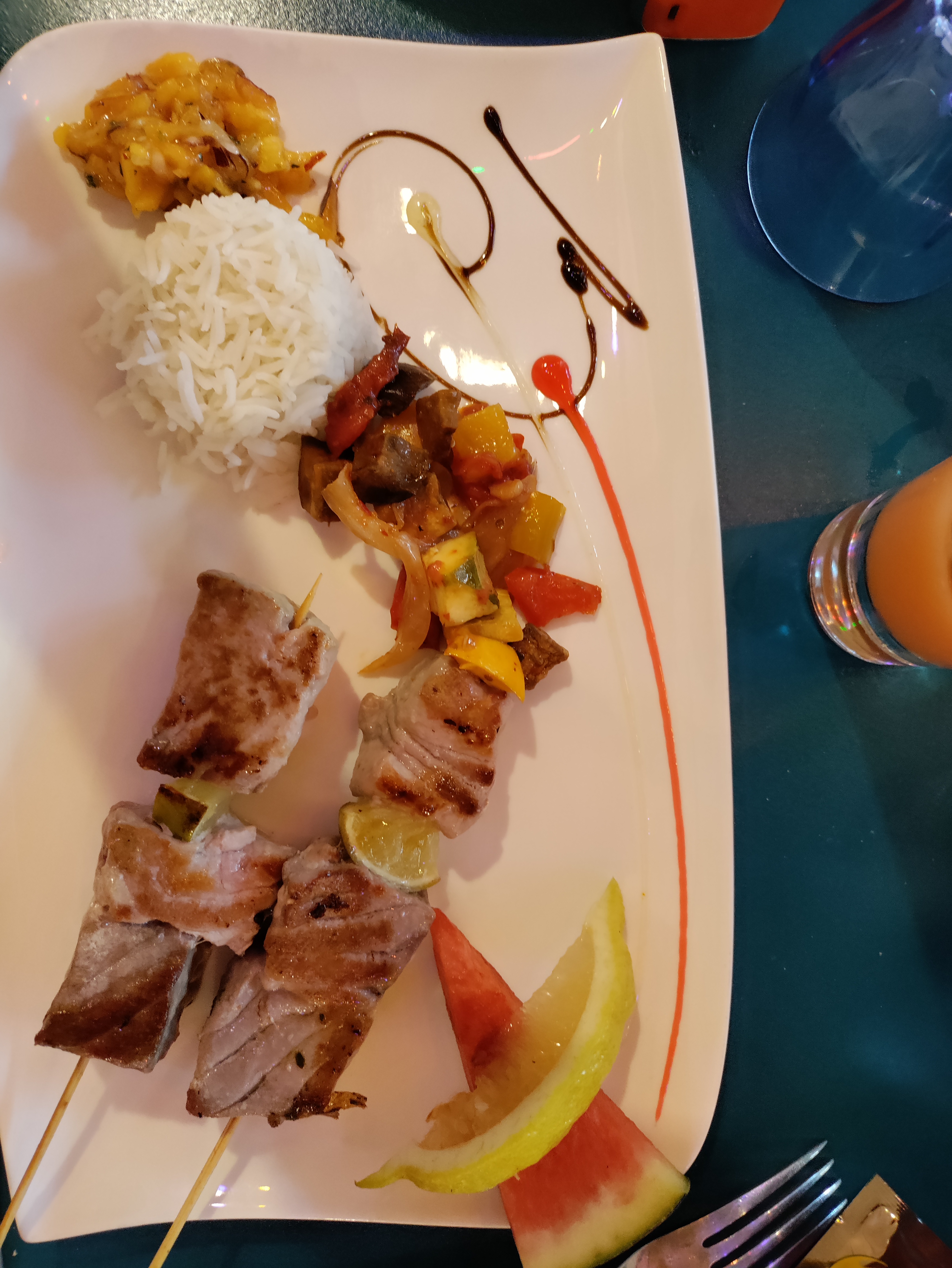 Superbe accueil, plats faits maison avec le chef qui grille les plats devant nous. On se régale autant par les yeux que par le goût.