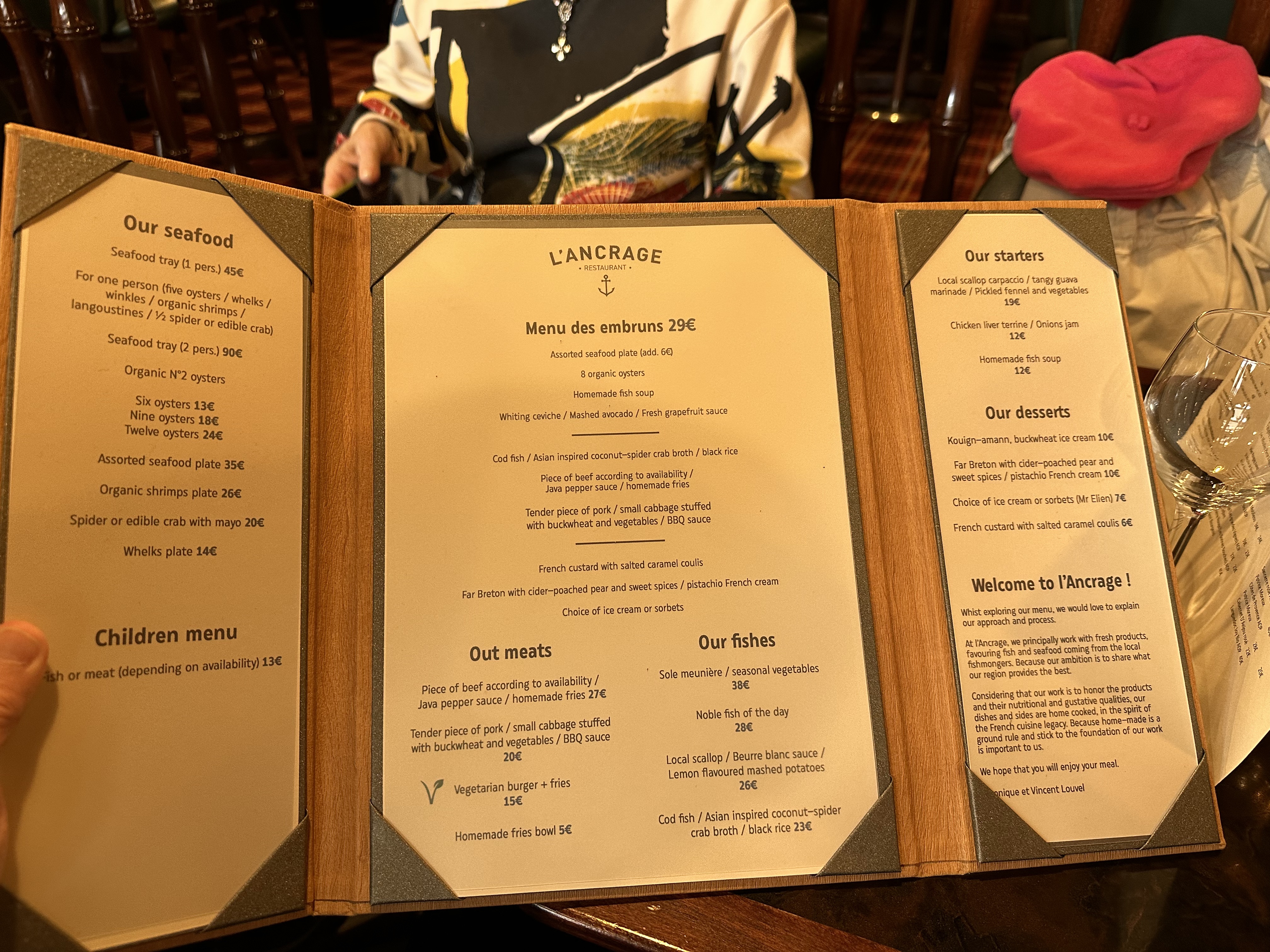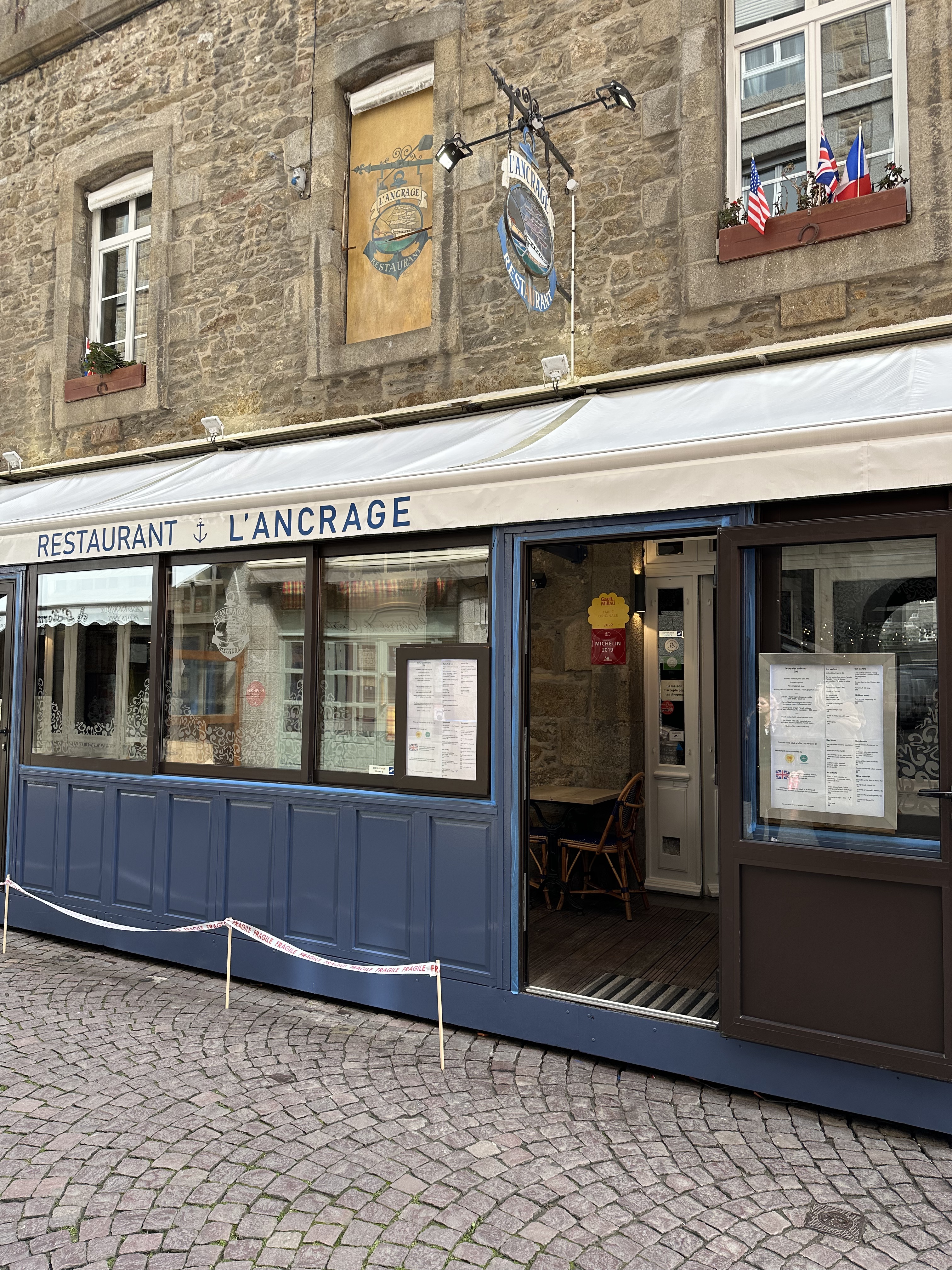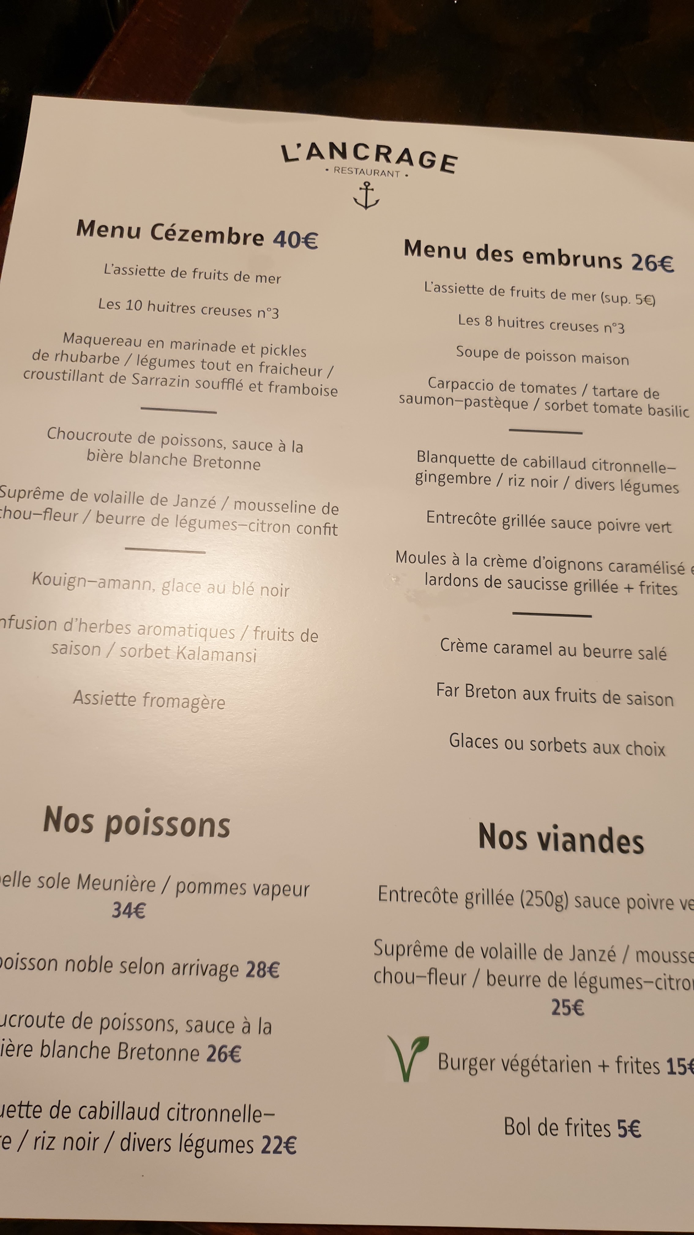 3 séjours à Saint Malo, 3 repas à l’Ancrage. Carte simple et bonne, service efficace et la patronne est sympathique ! On y reviendra pour les huîtres et les vraies frites non surgelées !