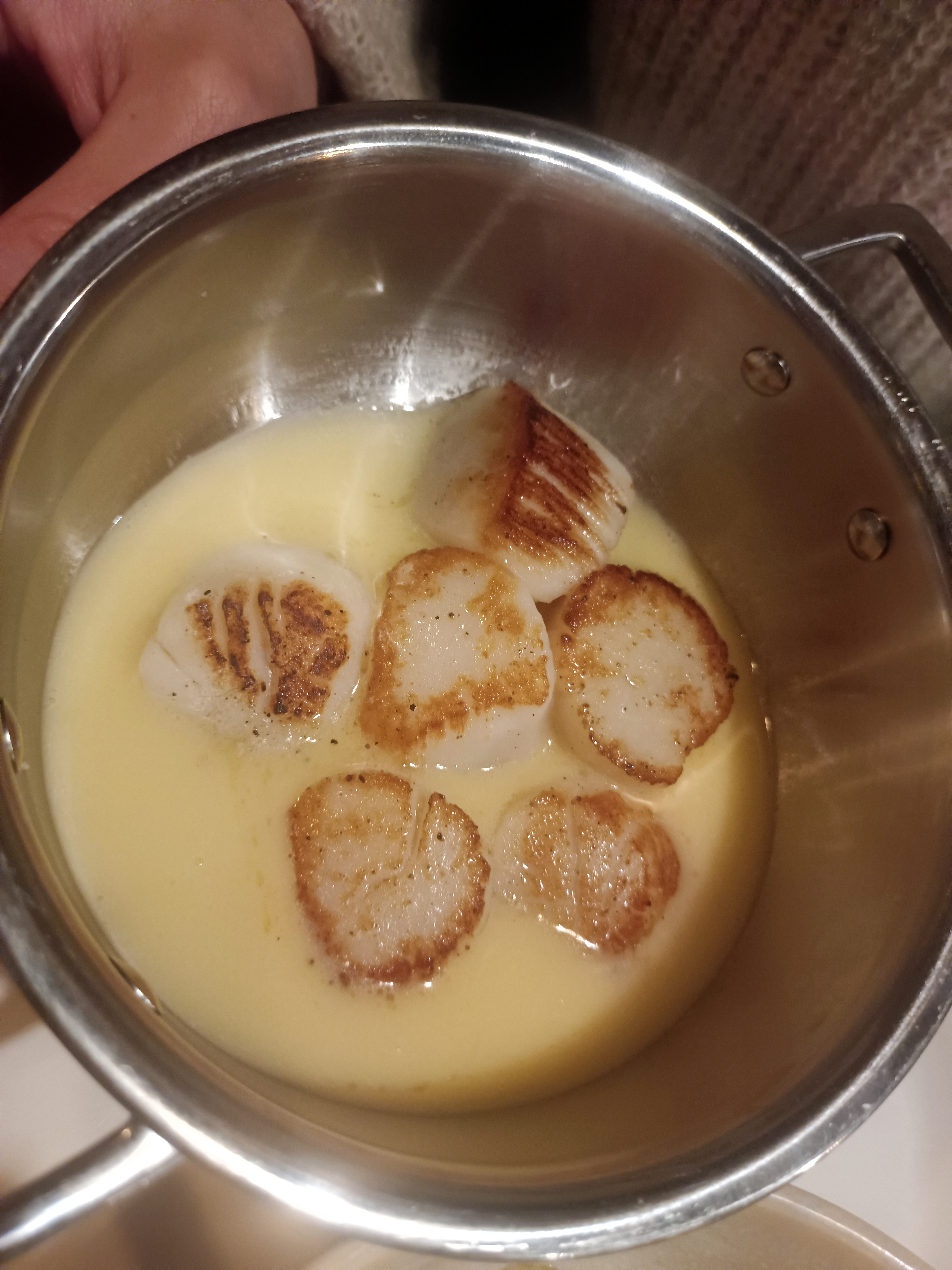 Repas plaisir en profitant du début de la saison des St Jacques. Accompagnement original et délicieux. On a revenu le lendemain ça dit toi !