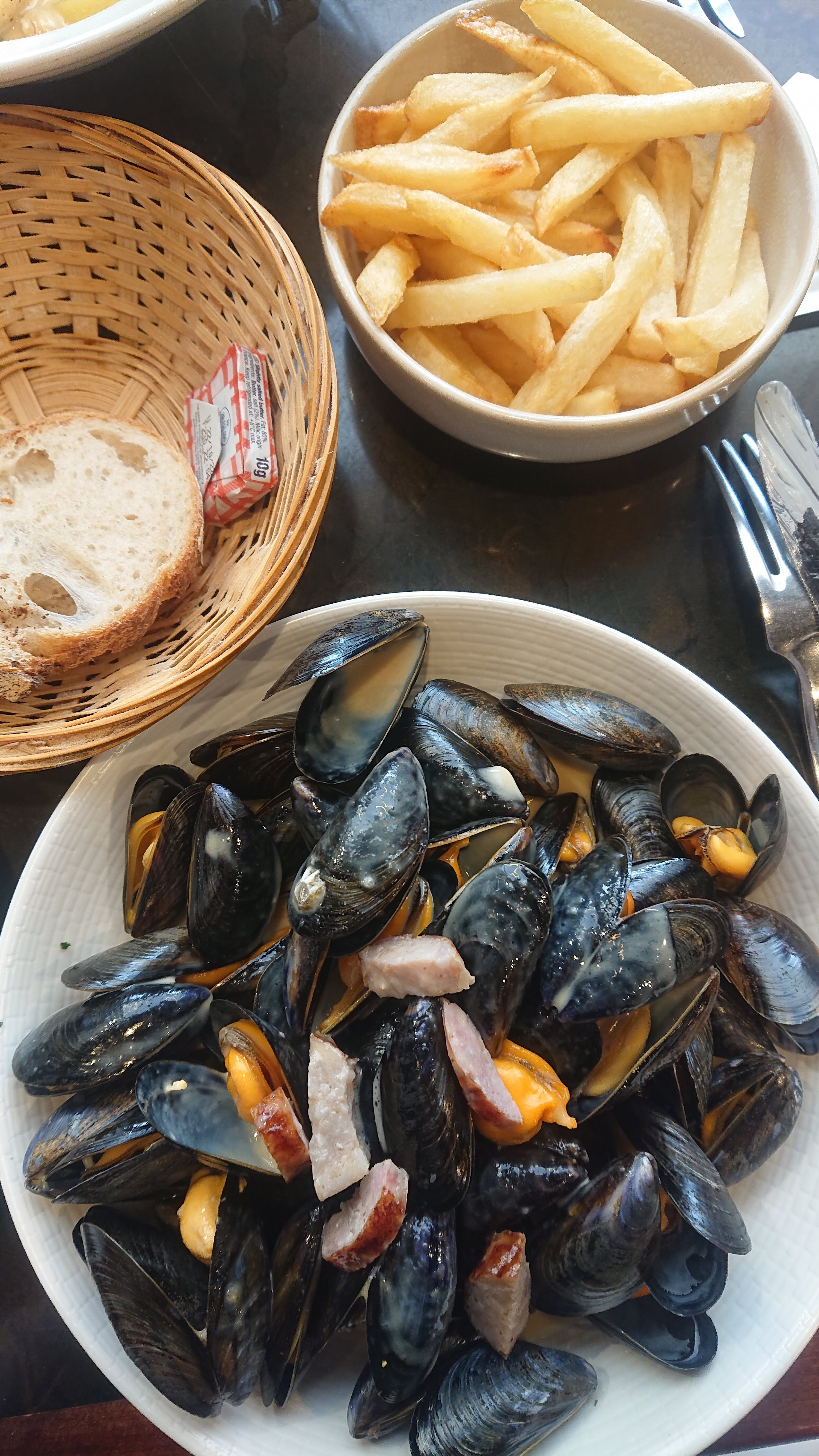Recommandé par notre hôtel, nous nous sommes rendu dans ce restaurant. L accueil est chaleureux mais prevoyé une ptite laine car il n y fait pas très chaud à l intérieur. Le service est efficace. Nous avons optés pour le menu à 30 euros avec entrée plat ,dessert. Étant en vacances, ma compagne et moi avons pris un apéritif, les 2 menus et une bouteille de vins. Les moules ne sont pas les meilleures que nous ayons mangés mais bonnes quand meme. Les panieres de pains sont disposées sur plusieurs gueridon en plein passage des clients et la notre a ete redéposée sur une autre table.Plutot moyen. Le bémol, à été qu après avoir eu fini le dessert , que l on nous pose l'addition sur la table. Le sentiment de merci, il faut libérer la table. Dommage pour le ressenti.