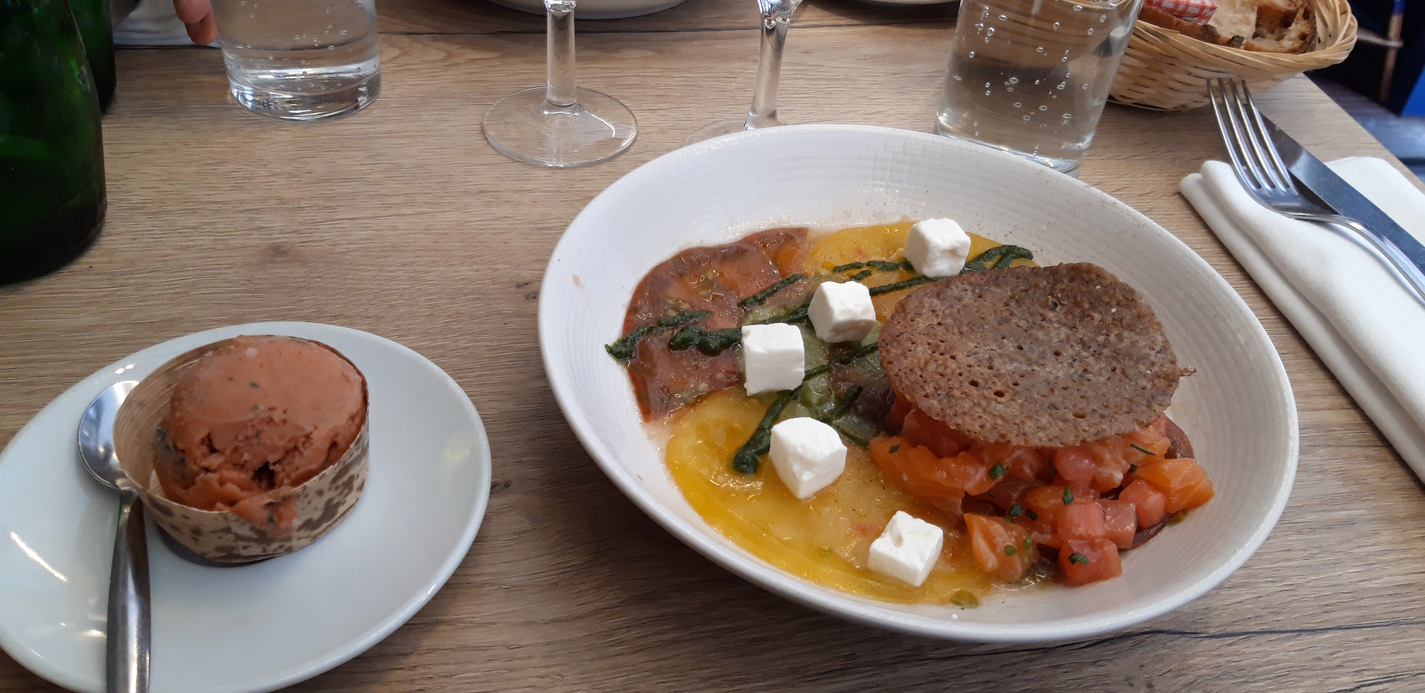 Des l’accueil vous vous sentez bien. Souriant et chaleureux. Nous avons pris deux menus différents avec Entrée (huître et soupe de poisson), plat (lotte et cabillaud) et dessert (crème au caramel et sorbet tomate basilic). Nous avons adoré, sauf peut-être finir sur le sorbet tomate et basilic qui selon moi devrait plutôt être proposé en entrée avec une salade plutôt qu’en dessert, à cause des saveurs plutôt salées qui rappellent la tomate confite. Ceci dit, n’hésitez surtout pas, si vous aimez le poisson et les fruits de mer vous allez adorer !!